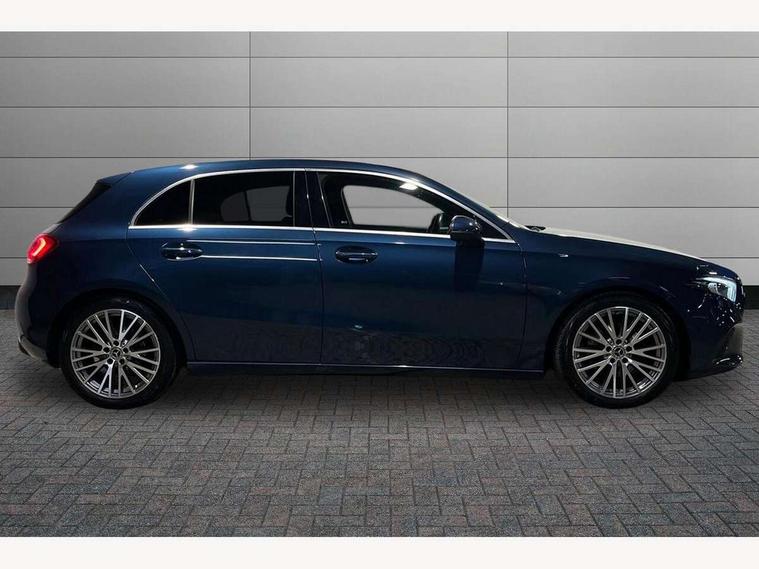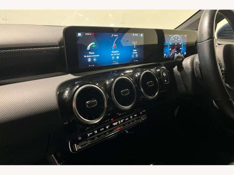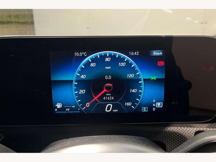 10.25" media display, 180 degree rear view camera with parking guidelines, 7" colour screen in instrument panel, Active parking assist with visual and audible warning of detected obstacles, Attention assist, Brake pad wear indicator warning light, Car wash mode, Cruise control + speed limiter, Direct steering, Dual bluetooth interfaces, DYNAMIC SELECT with a choice of driving modes (ECO, Comfort, Sport and Individual), ECO start/stop function, Fluid level warning indicator for fuel, oil, coolant and washer fluid, Hard-disk navigation, Hey Mercedes Voice activation, Lamp failure indicator, Lane keeping system, Mercedes me connect including emergency call system, accident recovery, breakdown and maintenance management, Mercedes me remote services, Outside temperature gauge, Owners manual in English, Pre-installation for private car sharing, Preinstallation for Mercedes Benz link, Service indicator (ASSYST), Smartphone integration with Apple CarPlay and Android auto, Speed sensitive power steering, Trip computer, Ultrasonic sensors positioned in the front and rear bumpers, Lowered comfort suspension, Rear axle torsion beam, 2 USB ports (type C) in rear stowage compartment and one in front of center console, 6 speakers, DAB Digital radio, MBUX multimedia system with DAB digital radio and touchpad including satellite navigation, Mercedes-Benz sound system - 100W, 4 Electric Front and Rear windows, Adaptive brake lights, Automatic headlights, Black weather strip, Body colour bumpers, Body colour door handles, Body colour side skirt, Body coloured door mirrors, Chrome beltline trim, Diamond radiator grille with black pins with one louvre in silver + chrome insert, Electric adjustable and heated door mirrors with integrated LED side indicators, Exhaust system - Twin visible tailpipes in polished stainless steel, Headlamp assist automatic headlamp activation, Heated glass rear windscreen + timer control, LED High level third brake light, LED high performance headlamps with integrated LED daytime running lights, LED tail lamp, Privacy glass, Radio aerial, Rain sensing windscreen wipers with two sensitivity settings, Rear fog lights, Rear side wing doors, Rear wiper, Window line trim strip in chrome, 3 seat bench in 2nd row, 3 Spoke leather multi function steering wheel, 40:20:40 split folding rear seats, Artico man-made leather upholstery, Auto Mercedes-Benz child seat recognition sensor, Black air vents with surround in silver chrome, Black roof lining, Controller on centre console with chrome surround, Front centre armrest with storage compartment, Front comfort seats with adjustable head restraints, Front door sills with Mercedes Benz lettering, Front seat backs luggage nets, Front seat cushion length adjustment, Gearshift paddles on steering wheel, Heated front seats, Height/reach adjustable steering column, Interior mirror with reading lamps in black and frameless, Manual height adjustable front seats, Rear head restraints, Seat occupancy sensor for front passenger seat, Single front passenger seat, Stowage compartment in centre console with retractable cover, Sunvisors with illuminated vanity mirrors, Touchpad on center console, Twin front cupholders, Two zone thermotronic luxury automatic climate control, Velour floor mats, Light and sight pack - A Class, Mirror package - A Class, Seat comfort pack - A Class, 3 rear 3 point seatbelts, ABS with Brake Assist, Active bonnet, Active brake assist includes forward collision warning system with autonomous braking, Adaptive brake assist with hold function and hill start assist, Black seatbelts, Childproof locks manually operated for rear doors and electrically operated for rear power windows, Crash responsive emergency lighting, Driver and passenger head and side airbags, Drivers knee airbag, Dual stage driver/passenger airbags, Electronic parking brake, ESP curve dynamic assist, ESP with ASR, Front and rear seatbelt reminder, ISOFIX and top tether child seat fixing points in two outer rear seats, Tyre pressure monitoring system, Warning triangle and first aid kit, Window airbags, Alarm system/interior protection/immobiliser, Keyless Go, Remote central locking and crash sensor with emergency opening function, Urban guard vehicle protection system with immobiliser and interior protection, Dark carbon fibre interior trim, 18" multi spoke light alloy wheels painted in himalayas grey with a high sheen finish, Summer tyres, Tirefit sealant kit,