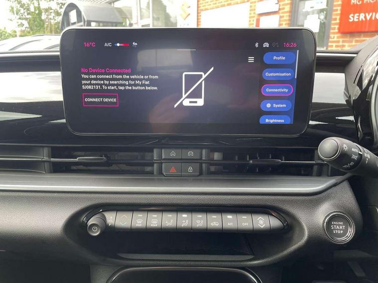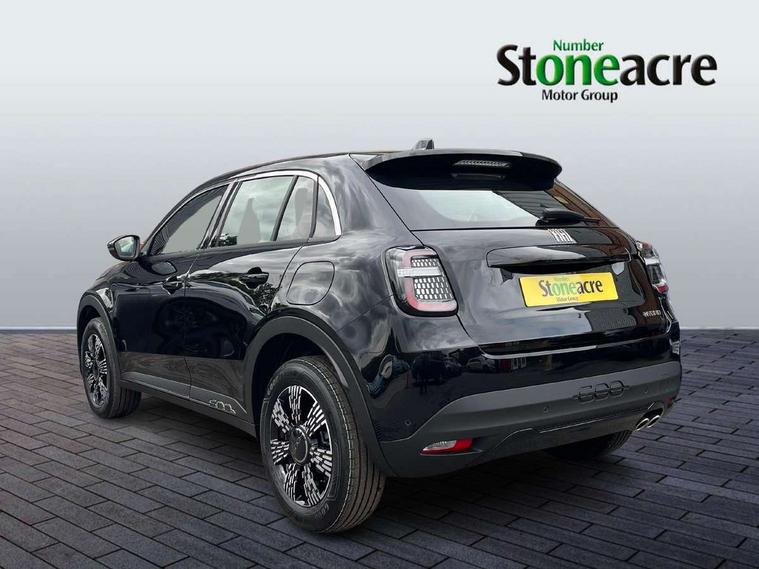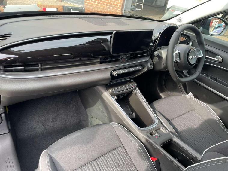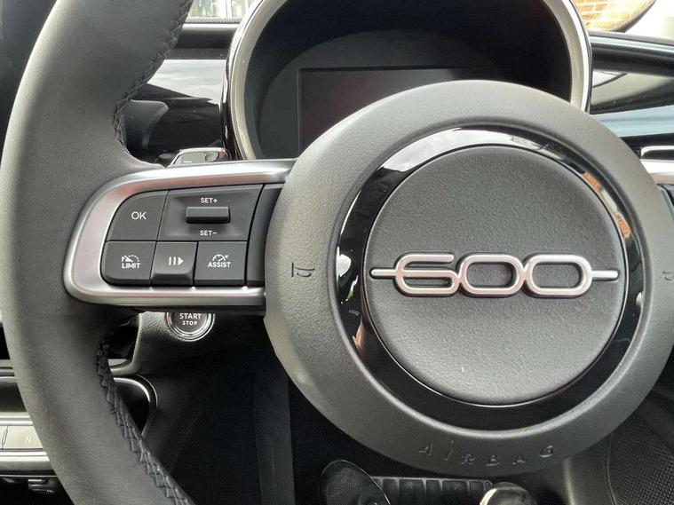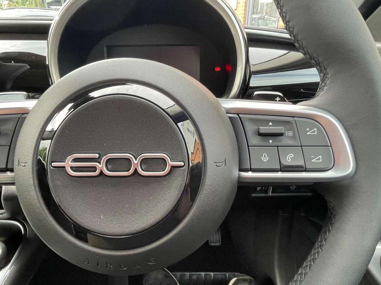 7" TFT digital cluster, Bluetooth connectivity, BSRF connectivity box, Connected services, Cruise control, Drowsy driver detection, Emergency E-call assist, Engine emission level default, GSR II step 1, Intelligent speed assist, Lane keeping assistant (LKA), Odometer, Power assist steering, Rain and dusk sensors, Rear parking sensors, Traffic sign recognition, Wireless apple car play/android Auto, Without drive mode selector, L2-AGM 12V battery, 1st Row USB type-A and USB type-C, 4 speaker audio system, Radio, Uconnect infotainment 10.25" touchscreen with DAB, All power windows express Up/Down, Auto dimming frameless rear view mirror, Automatic headlights, Body coloured door handles, Chrome day light openings, Electric adjustable door mirrors, Exterior chrome accents, Front and rear Chromed 600 logo, Gloss black finish B pillar, Gloss black shark fin antenna, Glossy black door mirrors, Heated windscreen wiper blade area, LED 3rd brake light, LED daytime running lights, LED Fog lamps with cornering function, LED front signature lighting, LED front turn indicators and position lights, LED rear lights, LED rear signature lighting, LED reflector headlamps, Matt black side skirts with 600 chromed logo, Rear bumper embossed 600 logo, Rear roof spoiler, Rear side wing doors, Rear wiper, 2 Spoke synthetic leather steering wheel with audio control, 3 rear headrests, 3 seat bench in 2nd row, 4 way manually adjustable passenger seat, 6 way manually adjustable drivers seat, Auxilliary 12V power socket, Body colour dashboard fascia, Chrome interior door handles, Dark metachrome dashboard ring, English handbook, Front centre armrest, Front headrests, Front passenger grab handle, Front seatback pockets, ISOFIX attachment on front passenger and rear passenger seats, Manual climate control, Metachrome central compartment bezel, Monogram fabric upholstery, Paddle shifts, Partial body cover for shipment, Predisposal for accessory upgrade to default tunnel pad cover (dedicated prnd bezel), Rear seat 40/60 split, Single front passenger seat, Smart 15L storage central tunnel with tunnel pad cover, Sunvisor label ciao Fiat, Sunvisors with vanity mirrors, 3x3 point rear seatbelts, 6 airbags, ABS, Autonomous Emergency Brake (AEB) & Vulnerable Road User (VRU) Protection, Child locks on rear doors, Electronic parking brake with auto hold, ESC (Electronic Stability Control), Front passenger airbag deactivation, Seatbelt reminder and pretensioners for all seats, Anti-theft volumetric alarm, Anti-theft wheel bolts, Keyless Go, 17" Diamond cut alloy wheels, Fix and go puncture repair kit,