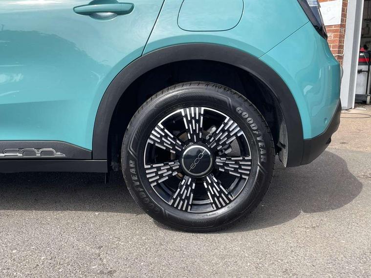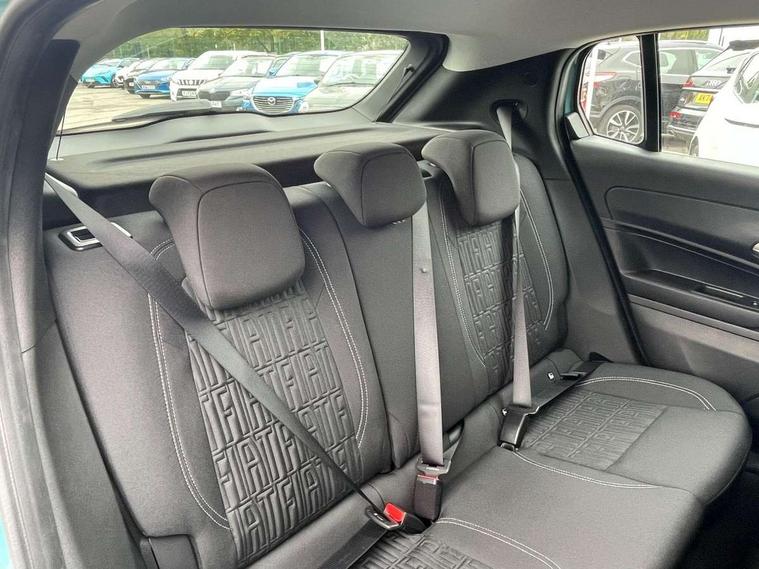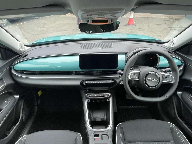 7" TFT digital cluster, Bluetooth connectivity, BSRF connectivity box, Connected services, Cruise control, Drowsy driver detection, Emergency E-call assist, Engine emission level default, GSR II step 1, Intelligent speed assist, Lane keeping assistant (LKA), Odometer, Power assist steering, Rain and dusk sensors, Rear parking sensors, Traffic sign recognition, Wireless apple car play/android Auto, Without drive mode selector, L2-AGM 12V battery, 1st Row USB type-A and USB type-C, 4 speaker audio system, Radio, Uconnect infotainment 10.25" touchscreen with DAB, All power windows express Up/Down, Auto dimming frameless rear view mirror, Automatic headlights, Body coloured door handles, Chrome day light openings, Electric adjustable door mirrors, Exterior chrome accents, Front and rear Chromed 600 logo, Gloss black finish B pillar, Gloss black shark fin antenna, Glossy black door mirrors, Heated windscreen wiper blade area, LED 3rd brake light, LED daytime running lights, LED Fog lamps with cornering function, LED front signature lighting, LED front turn indicators and position lights, LED rear lights, LED rear signature lighting, LED reflector headlamps, Matt black side skirts with 600 chromed logo, Rear bumper embossed 600 logo, Rear roof spoiler, Rear side wing doors, Rear wiper, 2 Spoke synthetic leather steering wheel with audio control, 3 rear headrests, 3 seat bench in 2nd row, 4 way manually adjustable passenger seat, 6 way manually adjustable drivers seat, Auxilliary 12V power socket, Body colour dashboard fascia, Chrome interior door handles, Dark metachrome dashboard ring, English handbook, Front centre armrest, Front headrests, Front passenger grab handle, Front seatback pockets, ISOFIX attachment on front passenger and rear passenger seats, Manual climate control, Metachrome central compartment bezel, Monogram fabric upholstery, Paddle shifts, Partial body cover for shipment, Predisposal for accessory upgrade to default tunnel pad cover (dedicated prnd bezel), Rear seat 40/60 split, Single front passenger seat, Smart 15L storage central tunnel with tunnel pad cover, Sunvisor label ciao Fiat, Sunvisors with vanity mirrors, 3x3 point rear seatbelts, 6 airbags, ABS, Autonomous Emergency Brake (AEB) & Vulnerable Road User (VRU) Protection, Child locks on rear doors, Electronic parking brake with auto hold, ESC (Electronic Stability Control), Front passenger airbag deactivation, Seatbelt reminder and pretensioners for all seats, Anti-theft volumetric alarm, Anti-theft wheel bolts, Keyless Go, 17" Diamond cut alloy wheels, Fix and go puncture repair kit,