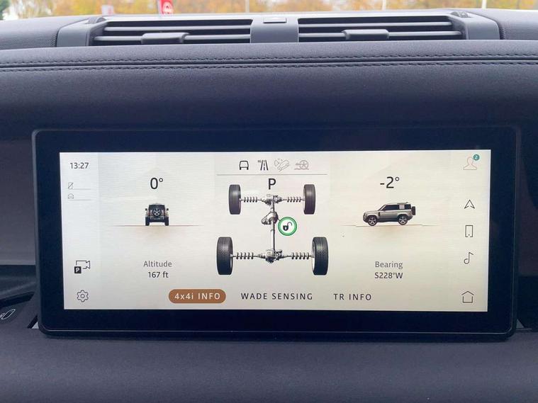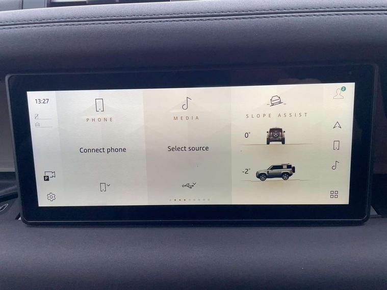 360 degree parking aid, 3D Surround Camera with 360 View, 180 Rear View, Front Traffic Detection, Forward Vehicle Guidance, Tow Hitch Assist and clear sight Ground View, Android Auto, Apple CarPlay, Assisted tailgate with soft close, Blind spot assist, Bluetooth system, Brake pad wear indicator, Clear exit monitor, Connected navigation pro, Driver condition monitor, Electric power assisted steering (EPAS), Lane keep assist, Push button start, Rear traffic monitor, Traffic sign recognition with adaptive speed limiter, Trip computer, Wade Sensing, 8 speed automatic transmission, All wheel drive system, Twin speed transfer box, DAB Radio (Digital Audio Broadcasting), Meridian 400w sound audio system with 11 speakers and subwoofer, Pivi pro connected, Automatic headlight levelling, Automatic headlights, Centre high mounted stop light, Electric heated/power fold door mirrors with approach lights and auto dimming driver side, Electric windows with one touch open/close and anti-trap, Follow me home lighting, Front fog lights, Heated rear window with timer, Heated windscreen, LED tail lights, Panoramic rear side glass, Privacy glass, Puddle lights, Rain sensing windscreen wipers, Rear fog lights, Rear wiper, Side hinged tailgate, Trailer stability assist, X-Dynamic badge, 12V power socket in loadspace, 3 seat bench in 2nd row, Alpine lights, Durable rubber cabin flooring, Durable rubber loadspace flooring, Footwell lights, Loadspace cover, Loadspace Hook, Multifunction steering wheel, Overhead stowage for sunglasses, Premium cabin lighting, Rear headrests, Rear ISOFIX, Rear reading lights, Single front passenger seat, Standard seat configuration, Storage glovebox, Sunvisors with illuminated vanity mirrors, Online pack with data plan - Defender, 5 x 3 point seatbelts, ABS, Brake hold function, Cornering brake control (CBC), Customer configurable autolock, DSC - Dynamic Stability Control, EBD - Electronic brakeforce distribution, Electric parking brake (EPB), Emergency brake assist, Emergency braking, ESP + traction control, Front airbags with passenger seat occupant detector, HDC - Hill descent control, Hill launch assist, Low traction launch, Remote for (e-Call, Optimised assistance call, InControl app, Climate, beep and flash and door), RSC - Roll stability control, Seat belt reminder, TPMS (Tyre pressure monitoring system), Alarm, Immobiliser, Intrusion sensor, Keyless entry, Locking wheel nuts,