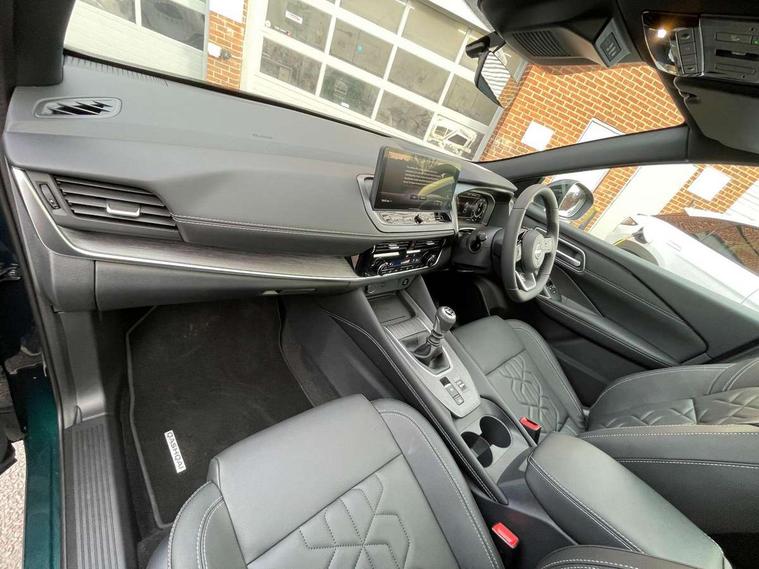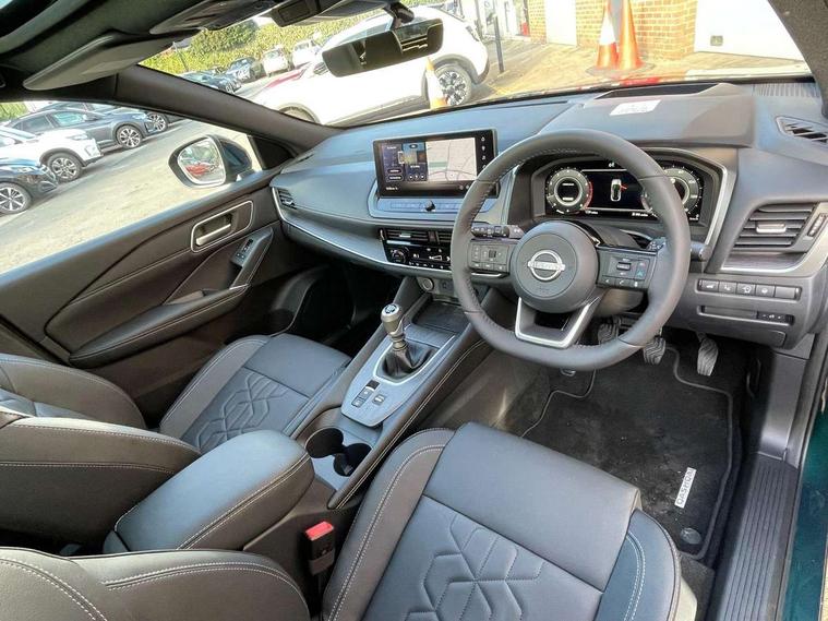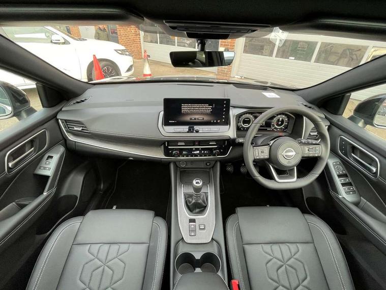2 front USB-C ports, 2 rear USB-C ports, 360 degree Intelligent around view monitor with moving object detection, Blind spot warning, Drive assist custom mode, Drive modes (sport, normal, eco), Driver drowsiness and attention warning, Electric speed sensitive power steering, Emergency and breakdown call, Emergency lane keep assist, Emergency Stop Signal (ESS), Engine start/stop button, Event data recorder, Front and rear parking sensors, Full Digital 12.3" TFT Digital Combimeter, Google virtual personal assistance, Idle stop/start system, In-car WIFI hotspot, Intelligent Cruise control (ICC), Intelligent driver alert system, Intelligent forward collision warning, Intelligent lane intervention, Intelligent speed assist, Lane departure warning system, Maximum speed limiter, Nissan connect 12.3 inch touchscreen infotainment system, Nissan connect navigation with google maps, Nissan connect services 2.0 (Google Automotive System), Outside temperature sensor, Propilot assist with Navi-Link, ProPilot park, Rear cross traffic alert, Remote control services - door locks, lights, horn and car locator, Reversing detection, Traffic jam pilot, Traffic sign recognition with legal speed adjustment, Trip computer, Wireless Apple CarPlay/Android Auto, Wireless charging pad, Limited slip differential, Multi link suspension, 6 speakers, AM/FM audio system with DAB, Bluetooth audio streaming, Auto dimming frameless rear view mirror, Auto rear wiper when reversing, Black roof rails, Body coloured bumpers, Body coloured door handles, Bodyside mouldings, Chrome side window finisher, Electric auto folding door mirrors, Electrically adjustable and heated door mirrors with LED turn indicator, Follow me home headlights, Gloss black mirror caps, High beam assist, Intelligent auto headlights, LED 3rd brake light, LED daytime running lights, LED headlights with adaptive driving beam, LED rear lights, LED sequential turn lights, One touch front and rear electric windows with remote opening and closing, One touch passenger window, Rain sensing wipers, Rear privacy glass, Rear roof spoiler, Rear side wing doors, Rear styling plate, Shark fin antenna, Splash free rain sensing wipers, Super RED rear LED lights, Super UV and infrared cut glass, 12v power socket in dashboard and luggage, 3 bench rear seats in 2nd row, 3 rear headrests, 60/40 split folding rear seat bench, Chrome interior door handles, Dark headlining, Driver and passenger sunvisors with illuminated vanity mirrors, Driver seat back pocket, Dual zone automatic climate control with pollen filter, Electrically adjustable lumbar support for driver, Fixed Glass roof with electric sunshade, Front centre console and armrest, Front cupholders, Front door with bottle holders, Height adjustable driver seat, Height adjustable front headrests, Height adjustable passenger seat, Luggage board system, Luggage space lighting, Multifunction steering wheel, Passenger seat back pocket, Quilted PVC alcantara upholstery, Rear door bottle holders, Rear seat armrest with 2 cupholders, RGB ambient light (Extended area coverage), Single front passenger seat, Smooth leather steering wheel, Steering wheel gearshift paddles, Tilt/telescopic adjustable steering wheel, Two rear isofix child seat anchorage points with top tether, 3x3 point rear seatbelt pretensioners + load limiters, ABS with EBD and brake assist, Autonomous emergency braking, Child locks on rear doors, Curtain and front side, far side airbags, Driver and passenger airbags, Driver, passenger and 2nd row rear seat belt reminder, Electric handbrake with auto hold function, Front seatbelt pretensioners + load limiters, Height adjustable front seatbelts, Hill start assist, Intelligent blind spot intervention, intelligent front emergency braking, Intelligent rear automatic braking, Tyre pressure monitoring system, Vehicle dynamic control, Engine immobiliser, Intelligent key with walk away lock and approach unlock functions, Remote central door locking with deadlocking, Thatcham alarm, 20" N-Design diamond cut alloy wheels, Tyre puncture repair kit,