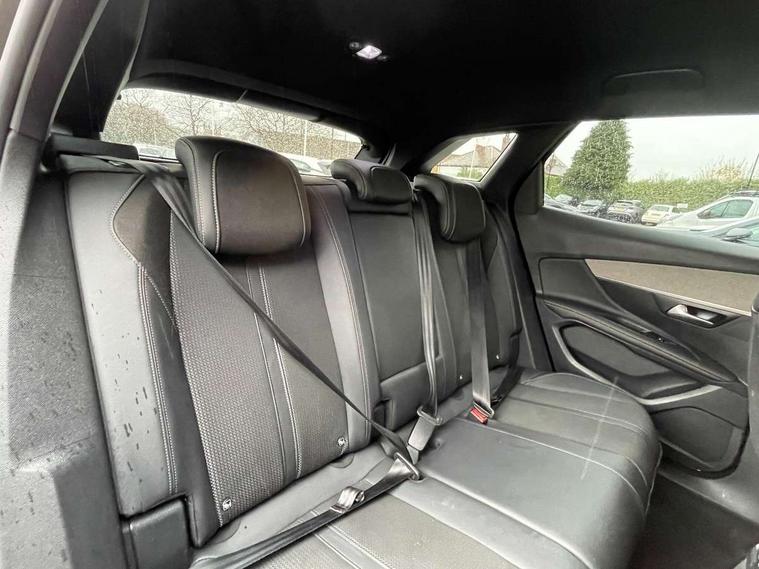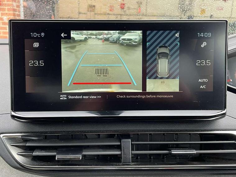 3D connected navigation with 10" HD touchscreen + voice recognition system, Apple car play and Android auto, Blind spot detection system, Bluetooth telephone facility, Drive modes select (Eco, normal and sport), Driver Attention Alert level 3, Driving Time Warning (DAA1), Emergency services call system, Extended traffic sign recognition, Exterior temperature indicator with ice warning, Front and rear parking sensors, Lane departure warning system, Lane Keeping Assistance (LKA) with road edge detection, Mirror screen with mirror link, apple carplay and android auto, Multi function trip computer, Peugeot i-cockpit with compact multi-function sports steering wheel, PEUGEOT i-Cockpit with configurable 12.3" Head-up digital instrument panel, PEUGEOT SOS and assistance, Rear passenger USB charging sockets (x2) (type A), Speed limit recognition and recommendation, Dynamic stability control and electronic anti-skid system, Stop/start function, DAB Digital radio, USB socket, Auto self levelling headlights, Automatic hazard light activation upon heavy brake application, Automatic triggered rear windscreen wiper in reverse gear, Black with chrome detailed front wing trim, Body colour door handles, Body colour rear roof spoiler with stainless steel edging trim, Body protectors (bottom of front and rear bumpers + wheel arches + protection at bottom of doors) in black, Dark tinted rear side windows + tailgate window, Diamond Black door mirror shells, Door mirror mounted LED courtesy floor lighting, Electric folding door mirrors with exterior courtesy LED lighting, Electric operated/heated door mirrors, Fog Mode, Front windscreen wiper with magic wash cleaning system, Full LED headlights with LED fog lights with static cornering function, Gloss black B and C pillar and aerodynamic deflector trim, Gloss black front bumper air scoops, Gloss black rear cluster connecting strip, Gloss black windscreen trim, GT emblem in satin copper (front wings and tailgate), Headlights left on audible warning, Heated rear windscreen with integrated antenna, High beam assist, LED daytime running lights, LED front indicator, LED rear number plate lighting, LED side indicator lights integrated into door mirrors, LED third brake light, One touch electric front/rear windows with pinch protection, Rear LED Peugeot signature 'Claw Effect' lights with clear lens and scrolling LED direction indicators, Rear side wing doors, Twin exhaust tailpipe, 1/3 to 2/3 split folding rear seats, 12V Sockets in dashboard, rear cabin and load area, 2 cupholders in front centre console, 2 cupholders in rear armrest, 2 x Rear reading spotlights, 2x Rear coat hooks, 3x Isofix child seat fittings in the front passenger and outer rear seats, 4 Grab handles retractable and damped, Aikinite stitching in armrest, gear lever and dashboard facia, Aluminium pedals, Blue ambient lighting for connecting zone, Blue ambient lighting to front door panels, central storage and cupholders, Blue ambient lighting to headup instrument panel, Centre front armrest with butterfly wing opening and illuminated storage compartment, Driver seat manual adjustment (longitudinal and back rest angle), Dual zone automatic climate control, e-Toggle compact gear selector, Electric power steering with reach and rake adjustable steering column, Flocked front door pocket interior with blue ambient lighting, Flocked glovebox interior, Foldable front passenger seat with picnic table, Footwell illumination, Front interior light with 2 reading spotlights and rear interior light with timer, Front passenger seat manual adjustment (longitudinal and back rest angle), Front seat back map pockets, Gear shift indicator, Illuminated glovebox, Individual left and right controls in boot for seat folding, LED interior lighting in storage spaces and load area, LED roof interior lighting, Mistral floor mats with Aikinite contrast stitching, Mistral full grain perforated leather steering wheel with aikinite stitch detail and satin chrome 'GT' emblem, Rear bench seat with central armrest and ski hatch, Rear centre console ventilation system, Roof lining - Mistral black, Satin chrome dashboard trim, Satin chrome digital instrument panel and touchscreen trim, Satin chrome front door panel recess trim, Satin chrome interior door handles, Satin chrome scorpion's tail and toggle switch trim, Seatbelt not fastened audible and visual alert for front seats, Seatbelt unfastened on the move audible and visual alert for front and rear seats, Sunvisors with illuminated vanity mirrors, Two position boot floor, Drive assist plus pack - 3008, Visibility pack - 3008 GT, 3x Rear three-point retractable seatbelts with force limiters in the outer rear seats, ABS (Anti-lock Braking System) with EBD (Electronic Brakeforce Distribution) and EBA (Emergency Braking Assistance), Adaptive driver and front passenger airbags with passenger airbag deactivation function, Driver and front passenger side airbags, Electric child locking functionality on rear windows and doors, Electric parking brake, Front and rear curtain airbags, Front optimised safety headrests and 3 x rear retractable headrests with height adjustable, Front three point retractable seatbelts with pre tensioners and force limiters, Front ventilated disc brakes and rear disc brakes, Hill start assist, Two tone horn, Automatic door locking when moving off, Electronic immobiliser, key operated exterior door lock from the left hand door, Perimetric and volumetric alarm with lift and tilt sensor, Peugeot Open and Go System, Remote control central locking with two plip keys, Puncture repair kit including compressor, sealant cartridge and towing eye,