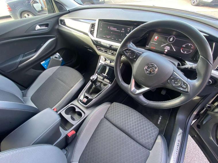 12" colour digital cluster, 180 degree rear view camera, Central facia display with digital clock, outside air temperature and audio information, Cruise control with speed limiter, Digital fuel gauge with low fuel level warning light, Digital rev counter, Digital speedometer, Digital water temperature gauge with warning light, Driver drowsiness alert system, Driver information - Total mileage, service indicator, oil life, Gearshift up/down indication light, Lane departure warning system, Lane keep assist, Lights on audible warning, Multi function trip computer - Trip odometer, vehicle range, average speed and fuel economy, instantaneous fuel economy and driving time, Multimedia navi pro with 10" colour touch+ sat nav+AM/FM/DAB radio, bluetooth audio streaming/mobile phone portal, Apple carplay/Android auto, USB, Speed sensitive electric power assisted steering, Speed sign recognition, Vauxhall connect including Ecall and connected services, Six speaker - four front + two rear, Steering wheel mounted audio/phone/cruise controls, 3rd brake light, Automatic lighting control, Automatically dimming anti dazzle rear view mirror, Black door mirrors, Black side window trim, Body colour door handles, Carbon black door claddings, Collapsible windscreen wipers, Dark tinted rear side and tailgate windows, Door mirror puddle light, Door to door illumination, Electrically adjustable and heated power door mirrors (wide-angle on drivers side) with automatic timed cut-off, Electrically operated front and rear windows with safety auto reverse and one touch up/down facility, Front/rear bumper and wheel arches in carbon black exterior color, GRANDLAND Carline name badge in - High gloss black, Hazard warning lights, Heated rear screen with timed cut off, High beam assist, High gloss black protective front and rear skid plates with C shape bumper inserts, High gloss black roof rails, High level centre rear brake light, Intermittent rear window wash/wipe, LED daytime running lights, LED Headlights, LED tail lights, Manual headlight beam levelling, Rain sensor windscreen wipers, Rear side wing doors, Rear spoiler, Reversing light, Shark fin aerial, Side protection mouldings, Side window demist vents, Soundproof insulated windscreen, Tinted windows, Upper and lower bumper design, Vauxhall brand griffin badge in front and rear in high gloss black, Vauxhall plate door sill cover, Vizor front grille, Welcome lighting, Windscreen demist vents, 12V electrical accessory socket in front, 3 bench rear seats in 2nd row, 3 spoke flat bottom leather steering wheel with satin chrome effect bezel, 4 way electric driver lumbar support, 4 way manual adjustable driver seats with height, reach and backrest, 60/40 split folding rear seat, Advanced predictive logic control system using a sun sensor, Ambient centre console downlighter, Anti submarining ramps in front seats, Automatic air direction and fan speed with manual override, Black premium leather-effect side bolsters, Charcoal filter, Chrome effect interior door handles, Cosmo 1 Harlekin curitiba seats, Covered storage compartment in centre console and in driver armrest, Driver ergonomic active front seat, Driver's centre armrest, Dual zone electronic climate control, Four adjustable facia vents, Front door pockets with 2.6 litre capacity, Front passenger seat, Front passenger seat cushion extension, Front passenger sport style seat, Grey headliner, Height adjustable headrests, Illuminated controls, Illuminated driver/passenger sunvisors, Illuminated luggage area + Ambient lighting in front doors, Interior courtesy light operated by door switches, ISOFIX on front passenger and rear outer seats, Luggage compartment cover, Reach + rake adjustable steering column, Rear centre seat head restraint, Rear door pockets with 1.8 litre capacity, Rear passenger compartment heating ducts, Rear reading lights, Two drinks holders in centre console, Ventilated glovebox with lid, 6 Airbags - Driver and passengers front airbag, two front side impact airbag, full size curtain airbags for driver, Anti-lock braking system (ABS), Automatic emergency braking system, Child proof locks on rear doors, CSC - Cornering stability control, Deactivation switch for front passenger front and side impact airbags, Deflation detection system, Deformation zones front and rear, Dual seatbelt pretensioners on front seats, EBD - Electronic brakeforce distribution, Electronic parking brake, Electronic stability program (ESP) including traction control, Energy absorbing steering column, Engine drag torque control, Hill start assist, Hydraulic Brake Assist (HBA), Inertia reel lap and diagonal seatbelts for all seats, Load limiters on outer rear seatbelt retractors, Rear restraint seat belt pretensioner, Reinforced passenger safety cell, Side impact protection beam, Smart seatbelt reminder for front and rear seats, Tyre pressure monitoring system, Deadlocking system, Electronically protected audio equipment, Engine deadlock immobiliser, Freewheeling door locks, Key left in ignition audible warning, Locking wheel nuts, One rigid one flap-key coloured, Remote control central locking activation switch on driver door, Remote control primary foldable and additional foldable key, Remote security alarm system, Self powered alarm horn, Single horn, Theft deterent body security content and electircal child lock system, Theft deterent electrical, Visible vehicle identification number, Black door panels with black premium leather effect inserts, Dax decor facia panel with palladium medium finish, 18" 5 twin spoke high gloss black alloy wheels, Tyre inflation kit,
