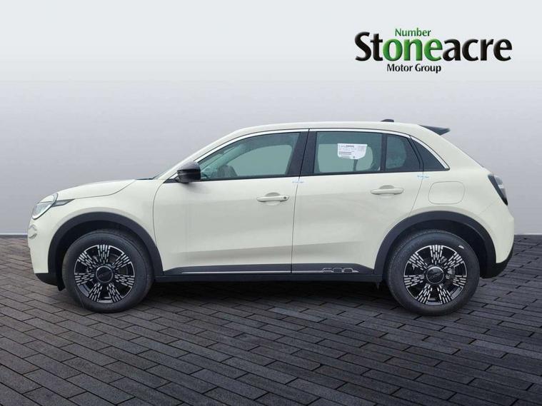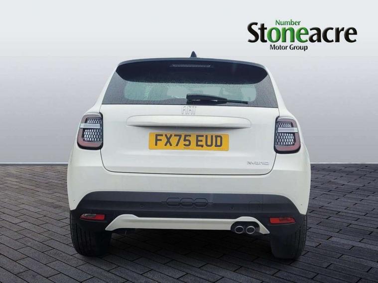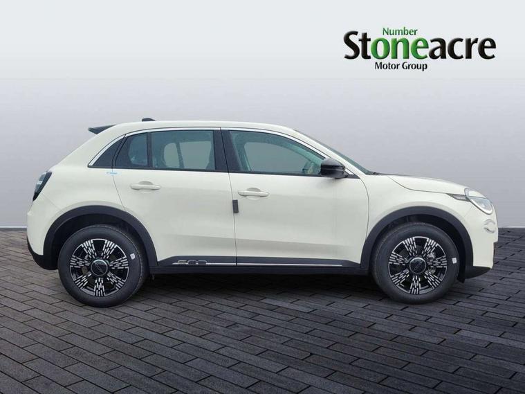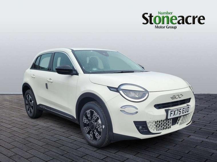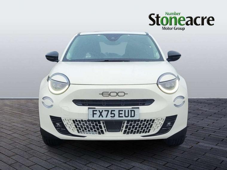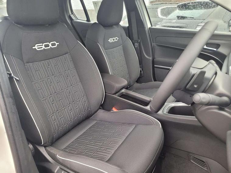 7" TFT digital cluster, Bluetooth connectivity, BSRF connectivity box, Connected services, Cruise control, Drowsy driver detection, Emergency E-call assist, Engine emission level default, GSR II step 1, Intelligent speed assist, Lane keeping assistant (LKA), Odometer, Power assist steering, Rain and dusk sensors, Rear parking sensors, Traffic sign recognition, Wireless apple car play/android Auto, Without drive mode selector, L2-AGM 12V battery, 1st Row USB type-A and USB type-C, 4 speaker audio system, Radio, Uconnect infotainment 10.25" touchscreen with DAB, All power windows express Up/Down, Auto dimming frameless rear view mirror, Automatic headlights, Body coloured door handles, Chrome day light openings, Electric adjustable door mirrors, Exterior chrome accents, Front and rear Chromed 600 logo, Gloss black finish B pillar, Gloss black shark fin antenna, Glossy black door mirrors, Heated windscreen wiper blade area, LED 3rd brake light, LED daytime running lights, LED Fog lamps with cornering function, LED front signature lighting, LED front turn indicators and position lights, LED rear lights, LED rear signature lighting, LED reflector headlamps, Matt black side skirts with 600 chromed logo, Rear bumper embossed 600 logo, Rear roof spoiler, Rear side wing doors, Rear wiper, 2 Spoke synthetic leather steering wheel with audio control, 3 rear headrests, 3 seat bench in 2nd row, 4 way manually adjustable passenger seat, 6 way manually adjustable drivers seat, Auxilliary 12V power socket, Body colour dashboard fascia, Chrome interior door handles, Dark metachrome dashboard ring, English handbook, Front centre armrest, Front headrests, Front passenger grab handle, Front seatback pockets, ISOFIX attachment on front passenger and rear passenger seats, Manual climate control, Metachrome central compartment bezel, Monogram fabric upholstery, Paddle shifts, Partial body cover for shipment, Predisposal for accessory upgrade to default tunnel pad cover (dedicated prnd bezel), Rear seat 40/60 split, Single front passenger seat, Smart 15L storage central tunnel with tunnel pad cover, Sunvisor label ciao Fiat, Sunvisors with vanity mirrors, 3x3 point rear seatbelts, 6 airbags, ABS, Autonomous Emergency Brake (AEB) & Vulnerable Road User (VRU) Protection, Child locks on rear doors, Electronic parking brake with auto hold, ESC (Electronic Stability Control), Front passenger airbag deactivation, Seatbelt reminder and pretensioners for all seats, Anti-theft volumetric alarm, Anti-theft wheel bolts, Keyless Go, 17" Diamond cut alloy wheels, Fix and go puncture repair kit,