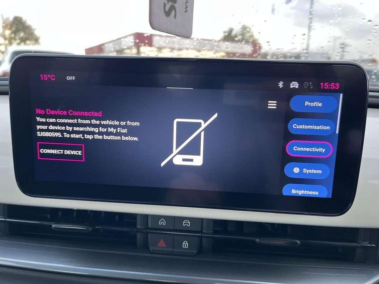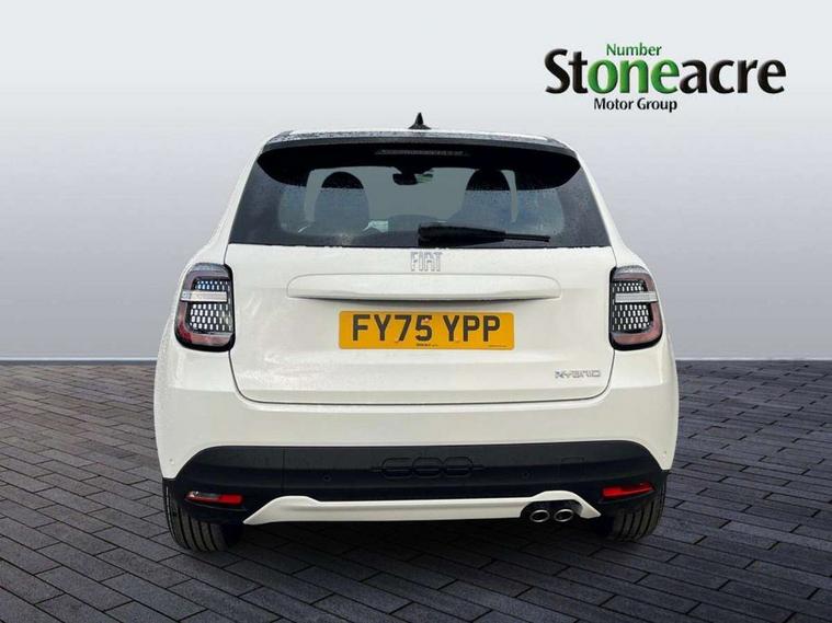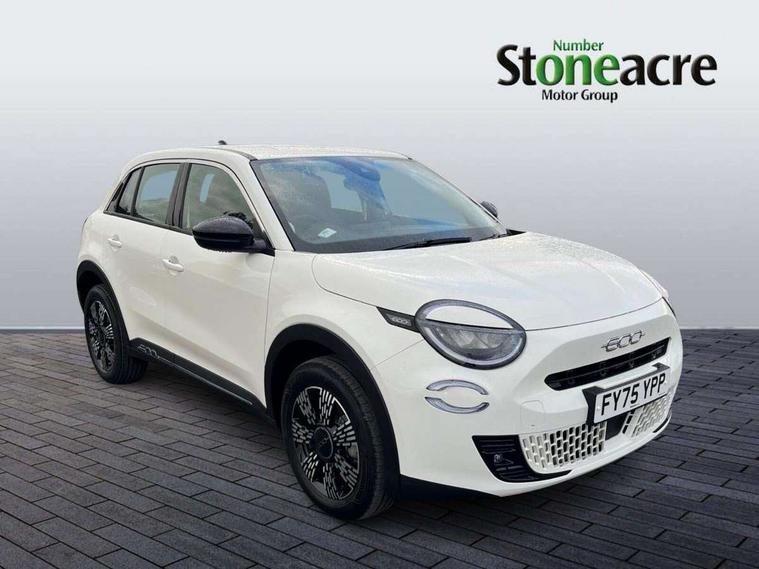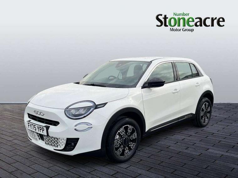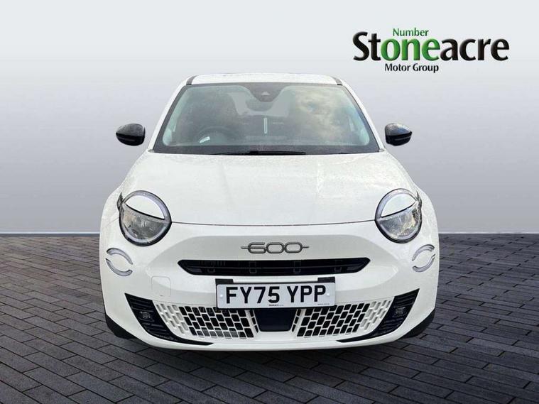 7" TFT digital cluster, Bluetooth connectivity, BSRF connectivity box, Connected services, Cruise control, Drowsy driver detection, Emergency E-call assist, Engine emission level default, GSR II step 1, Intelligent speed assist, Lane keeping assistant (LKA), Odometer, Power assist steering, Rain and dusk sensors, Rear parking sensors, Traffic sign recognition, Wireless apple car play/android Auto, Without drive mode selector, L2-AGM 12V battery, 1st Row USB type-A and USB type-C, 4 speaker audio system, Radio, Uconnect infotainment 10.25" touchscreen with DAB, All power windows express Up/Down, Auto dimming frameless rear view mirror, Automatic headlights, Body coloured door handles, Chrome day light openings, Electric adjustable door mirrors, Exterior chrome accents, Front and rear Chromed 600 logo, Gloss black finish B pillar, Gloss black shark fin antenna, Glossy black door mirrors, Heated windscreen wiper blade area, LED 3rd brake light, LED daytime running lights, LED Fog lamps with cornering function, LED front signature lighting, LED front turn indicators and position lights, LED rear lights, LED rear signature lighting, LED reflector headlamps, Matt black side skirts with 600 chromed logo, Rear bumper embossed 600 logo, Rear roof spoiler, Rear side wing doors, Rear wiper, 2 Spoke synthetic leather steering wheel with audio control, 3 rear headrests, 3 seat bench in 2nd row, 4 way manually adjustable passenger seat, 6 way manually adjustable drivers seat, Auxilliary 12V power socket, Body colour dashboard fascia, Chrome interior door handles, Dark metachrome dashboard ring, English handbook, Front centre armrest, Front headrests, Front passenger grab handle, Front seatback pockets, ISOFIX attachment on front passenger and rear passenger seats, Manual climate control, Metachrome central compartment bezel, Monogram fabric upholstery, Paddle shifts, Partial body cover for shipment, Predisposal for accessory upgrade to default tunnel pad cover (dedicated prnd bezel), Rear seat 40/60 split, Single front passenger seat, Smart 15L storage central tunnel with tunnel pad cover, Sunvisor label ciao Fiat, Sunvisors with vanity mirrors, 3x3 point rear seatbelts, 6 airbags, ABS, Autonomous Emergency Brake (AEB) & Vulnerable Road User (VRU) Protection, Child locks on rear doors, Electronic parking brake with auto hold, ESC (Electronic Stability Control), Front passenger airbag deactivation, Seatbelt reminder and pretensioners for all seats, Anti-theft volumetric alarm, Anti-theft wheel bolts, Keyless Go, 17" Diamond cut alloy wheels, Fix and go puncture repair kit,