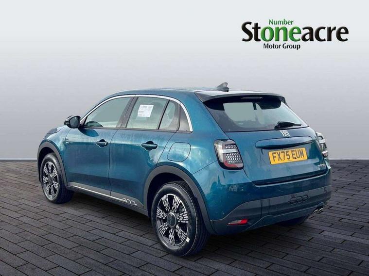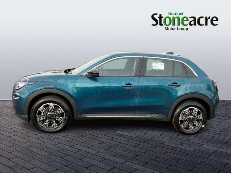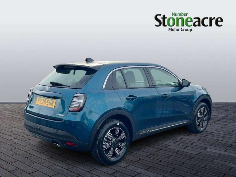 7" TFT digital cluster, Bluetooth connectivity, BSRF connectivity box, Connected services, Cruise control, Drowsy driver detection, Emergency E-call assist, Engine emission level default, GSR II step 1, Intelligent speed assist, Lane keeping assistant (LKA), Odometer, Power assist steering, Rain and dusk sensors, Rear parking sensors, Traffic sign recognition, Wireless apple car play/android Auto, Without drive mode selector, L2-AGM 12V battery, 1st Row USB type-A and USB type-C, 4 speaker audio system, Radio, Uconnect infotainment 10.25" touchscreen with DAB, All power windows express Up/Down, Auto dimming frameless rear view mirror, Automatic headlights, Body coloured door handles, Chrome day light openings, Electric adjustable door mirrors, Exterior chrome accents, Front and rear Chromed 600 logo, Gloss black finish B pillar, Gloss black shark fin antenna, Glossy black door mirrors, Heated windscreen wiper blade area, LED 3rd brake light, LED daytime running lights, LED Fog lamps with cornering function, LED front signature lighting, LED front turn indicators and position lights, LED rear lights, LED rear signature lighting, LED reflector headlamps, Matt black side skirts with 600 chromed logo, Rear bumper embossed 600 logo, Rear roof spoiler, Rear side wing doors, Rear wiper, 2 Spoke synthetic leather steering wheel with audio control, 3 rear headrests, 3 seat bench in 2nd row, 4 way manually adjustable passenger seat, 6 way manually adjustable drivers seat, Auxilliary 12V power socket, Body colour dashboard fascia, Chrome interior door handles, Dark metachrome dashboard ring, English handbook, Front centre armrest, Front headrests, Front passenger grab handle, Front seatback pockets, ISOFIX attachment on front passenger and rear passenger seats, Manual climate control, Metachrome central compartment bezel, Monogram fabric upholstery, Paddle shifts, Partial body cover for shipment, Predisposal for accessory upgrade to default tunnel pad cover (dedicated prnd bezel), Rear seat 40/60 split, Single front passenger seat, Smart 15L storage central tunnel with tunnel pad cover, Sunvisor label ciao Fiat, Sunvisors with vanity mirrors, 3x3 point rear seatbelts, 6 airbags, ABS, Autonomous Emergency Brake (AEB) & Vulnerable Road User (VRU) Protection, Child locks on rear doors, Electronic parking brake with auto hold, ESC (Electronic Stability Control), Front passenger airbag deactivation, Seatbelt reminder and pretensioners for all seats, Anti-theft volumetric alarm, Anti-theft wheel bolts, Keyless Go, 17" Diamond cut alloy wheels, Fix and go puncture repair kit,