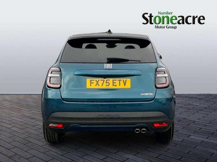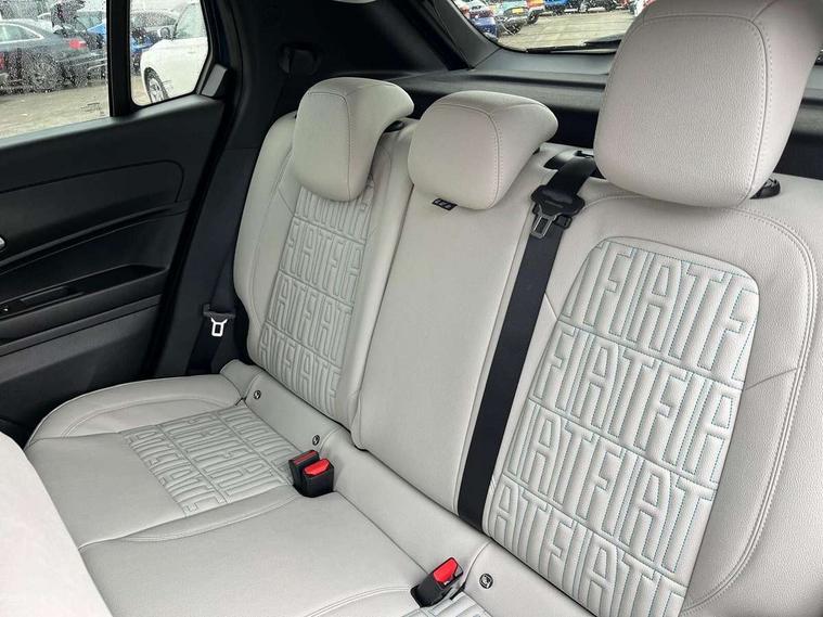 360 degree parking sensors with 180 degree rear view camera, 7" TFT digital cluster, Autonomous driving level 2: Adaptive cruise control with stop & go and lane centering, Blind spot detection, Bluetooth connectivity, BSRF connectivity box, Connected services, Drowsy driver detection, Emergency E-call assist, Engine emission level default, GSR II step 1, Hands free power liftgate, Intelligent speed assist, Lane keeping assistant (LKA), Odometer, Power assist steering, Rain and dusk sensors, Semi-automatic parking with Visiopark 1 system, Traffic sign recognition, Wireless apple car play/android Auto, Wireless charging pad for smartphones, Without drive mode selector, L2-AGM 12V battery, 1st Row USB type-A and USB type-C, 2nd Row USB type-C, 6 speaker audio system, Radio, Uconnect infotainment 10.25" touchscreen with integrated navigation system and DAB, All power windows express Up/Down, Auto dimming frameless rear view mirror, Automatic headlights, Automatic high/low beam, Body coloured door handles, Chrome day light openings, Chromed exhaust tip, Electric adjustable/heated/folding door mirrors, Exterior chrome accents, Front and rear Chromed 600 logo, Gloss black finish B pillar, Gloss black shark fin antenna, Glossy black door mirrors, Heated windscreen wiper blade area, LED 3rd brake light, LED daytime running lights, LED Fog lamps with cornering function, LED front signature lighting, LED front turn indicators and position lights, LED rear lights, LED rear signature lighting, LED reflector headlamps, Matt black side skirts with 600 chromed logo, Privacy glass, Puddle lights, Rear bumper embossed 600 logo, Rear roof spoiler, Rear side wing doors, Rear wiper, 2 Spoke synthetic leather steering wheel with audio control, 3 rear headrests, 3 seat bench in 2nd row, 6 way manually adjustable front passenger seat, 6 way power adjustable driver seat with lumbar support and massage function, Adjustable trunk floor, Automatic climate control, Auxilliary 12V power socket, Cargo flex fit, Chrome interior door handles, Dark metachrome dashboard ring, English handbook, Front centre armrest, Front headrests, Front passenger grab handle, Front seatback pockets, Heated front seats, ISOFIX attachment on front passenger and rear passenger seats, Matt Ivory painted dashboard fascia, Metachrome central compartment bezel, Monogram Synthetic leather upholstery, Paddle shifts, Partial body cover for shipment, Predisposal for accessory upgrade to default tunnel pad cover (dedicated prnd bezel), Rear seat 40/60 split, Single front passenger seat, Smart 15L storage central tunnel with La prima tunnel pad cover, Sunvisor label ciao Fiat, Sunvisors with vanity mirrors, Velour floor mats, 3x3 point rear seatbelts, 6 airbags, ABS, Autonomous Emergency Brake (AEB) & Vulnerable Road User (VRU) Protection, Child locks on rear doors, Electronic parking brake with auto hold, ESC (Electronic Stability Control), Front passenger airbag deactivation, Seatbelt reminder and pretensioners for all seats, Anti-theft volumetric alarm, Anti-theft wheel bolts, Passive entry and keyless go, 18" Diamond cut alloy wheels, Fix and go puncture repair kit,