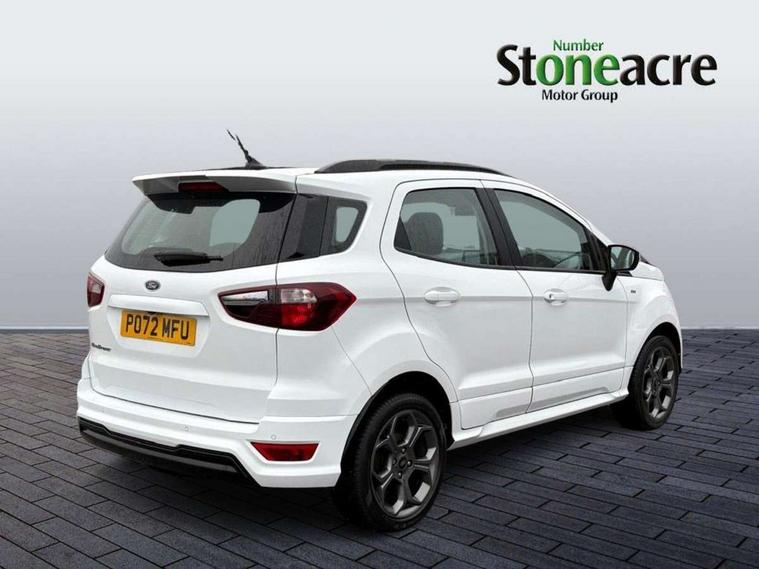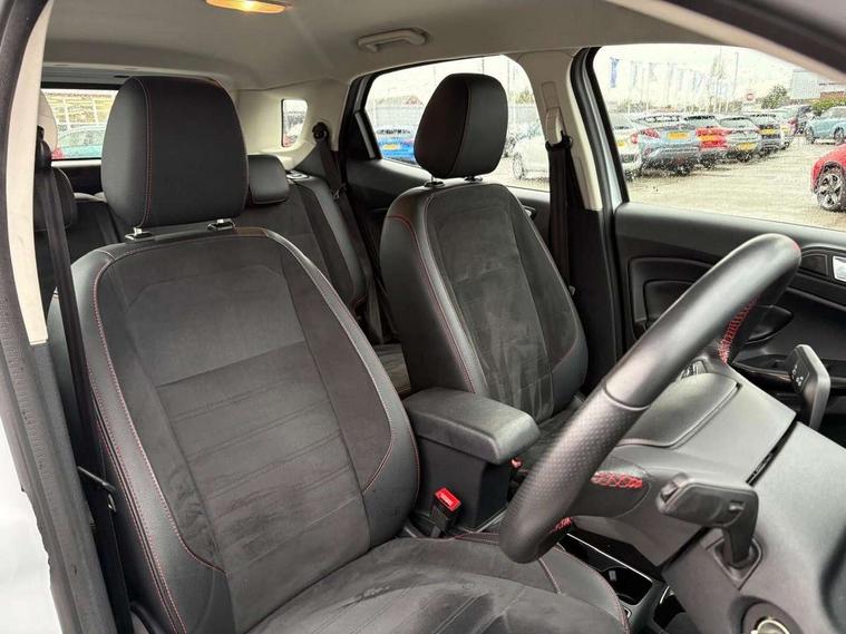 Cruise control, e-Call (emergency call), Easy fuel capless refuelling system, Ford SYNC 3 nav system with DAB radio, 8" screen, emergency assistance, Apple car play/Android auto, 2x USB, 6 speakers, Ford pass connect, Intelligent speed limiter, PAS, Rear parking sensors, Rear view camera, Traffic sign recognition, Trip computer, Sports suspension, Steering wheel mounted audio controls, Auto dimming rear view mirror, Automatic front wipers, Automatic headlights, Black roof rails, Body colour door handles, Body coloured bumpers, Chrome lower window surround, Electrically adjustable and heated door mirrors, Front fog lights, Front grille bars and surround in black, Headlight levelling control, Large rear roof spoiler, LED day running lights, LED third brake light, Power front and rear windows, Puddle lights, Quick-clear heated windscreen, Rear side wing doors, Rear wiper, ST Line body styling kit - Black headlamp bezel, front and rear sport bumpers, body colour lower door claddings, 12V socket in front and rear, 3 seat bench in 2nd row, 60/40 split rear seats, Ambient lighting, Centre console with sliding front armrest, Cooled glovebox, Courtesy lights with map reading light, Driver seat height/lumbar adjust, Driver's side glovebox, Driver/passenger sunvisors and lidded vanity mirrors, EATC - Electronic Auto Temperature control, Folding grab handles, Front head restraints, Front seat back map pockets, Illuminated glovebox, Illuminated luggage compartment, Isofix system on outer rear seats, Luggage compartment carpet, Neosuede/Partial sensico leather upholstery, Overhead console with sunglasses holder, Rake adjustable rear seats, Reach + rake adjustable steering column, Rear headrests, Sensico trimmed steering wheel, handbrake and gearshift gaiter with red stitching, Single front passenger seat, ST-Line Front floor mats with red stitching, Stainless steel sports pedals, Storage drawers under front seats, Tie down hooks, Variable boot floor, 3x3 point rear seatbelts, ABS, Autonomous emergency braking, Child locks on rear doors, Curtain airbags, Driver airbag, Drivers knee airbag, Electronic Stability Programme with hill launch assist, Front passenger airbag deactivation, Front side airbags, Passenger airbag, Pre collision assist system with AEB, Seatbelt reminder for driver and front passenger, Traction control, Tyre pressure monitoring system, Immobiliser, MyKey system, Remote central locking, Thatcham 1 volume sensing alarm, Low rolling resistance tyres, Tyre inflation kit,