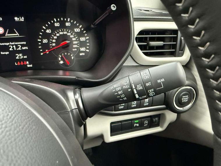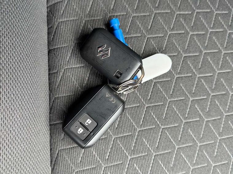 Adaptive cruise control, Automatic start/stop system, Blind spot monitoring, Colour LCD information display, Digital clock, Driver monitoring system, eCall, Fuel consumption display (average/instantaneous) and range display, Intelligent speed control support, Lane departure prevention, Lane departure warning system, Lane keeping assist (LKA), Low fuel level warning light, Navigation system, Outside temperature display, PAS, Rear cross traffic alert, Rear parking camera, Rear parking sensors, Remote fuel cap release, Smartphone integration with Apple CarPlay and Android auto, Suzuki connect, Tailgate, Traffic sign recognition, Weaving alert, 4 speakers + 2 tweeters, 9-inch infotainment display, Auxiliary input socket, Bluetooth audio streaming, DAB Digital radio, Steering wheel audio controls, USB Type A and C, 'Guide me home' headlamps, 1 speed with intermittent rear wiper + washer, 2 speeds front wiper with intermittent + washer, Automatic headlights, Black coloured A & B pillars, Black Upper and lower front grille, Body colour door mirrors and handles, C pillar trim moulding, Electric door mirrors, Electric front windows, Electric rear windows, Green tinted glass, Heated door mirrors, High beam assist, LED daytime running lights, LED High mounted stop light, LED position lamps, LED projector headlamps, LED rear combination lamp, Manual headlamp level control, Rain sensor, Rear fog lights, Rear privacy glass, Rear side wing doors, Rear spoiler, Side spoiler, 1 cup holder in rear, 12V Accessory socket in front console, 2 cup holders in front, 2 Isofix seat anchors, 3 bench rear seats in 2nd row, 3 rear head restraints, 3 spoke leather covered steering wheel, 60/40 split rear seats, Accessory socket, Centre console storage, Centre lower box, Child seat tether anchorages x 2, Chrome handbrake release button, Chrome interior door handles, Cloth upholstery, Door pockets with bottle holder, Driver/passenger sunvisors with ticket holders + vanity mirrors, Front cabin lights, Front headrests, Front map light, Front passenger side assist grip, Glovebox, Heated front seats, Heater, Height adjustable driver's seat, Luggage area lamp, Manual air conditioning with digital control panel, Material door trim ornament, Parcel shelf, Passenger seat back pocket, Pollen filter, Single front passenger seat, Tilt adjustable steering wheel, Tilt/telescopic adjustable steering wheel, 3 point ELR seatbelts for centre seat, 3 point ELR seatbelts front and rear, ABS+EBD+Brake assist, Curtain airbags, Driver airbag, Dual sensor brake support, ESP + traction control, Front and rear seatbelt reminder, Front passenger airbag, Front passenger airbag deactivation, Front seatbelt pretensioners with force limiters, Hill hold control, Rear child proof door locks, Rear seatbelts with pre-tensioners and load limiters, Side airbags with incorporated into front seats, Tyre pressure indicator, Deadlocks, Freewheeling key cylinders, Immobiliser, Keyless entry and start, Light - on and Key in reminder, Locking wheel nuts, Remote central locking, Painted instrument panel ornament, 16" Painted alloy wheels, Emergency flat tyre repair kit,
