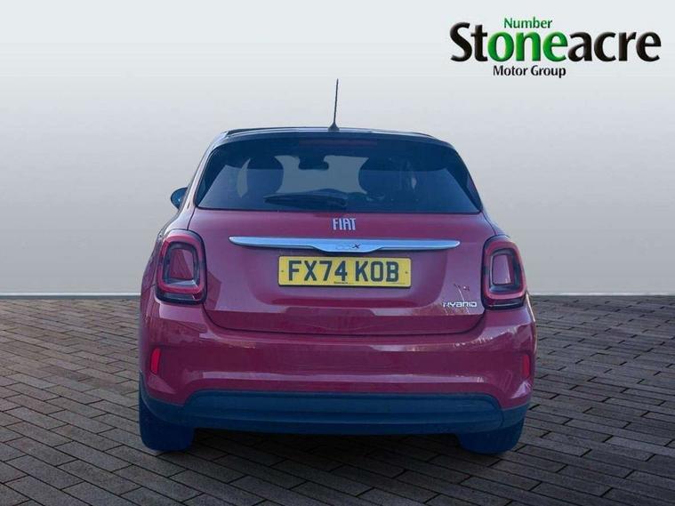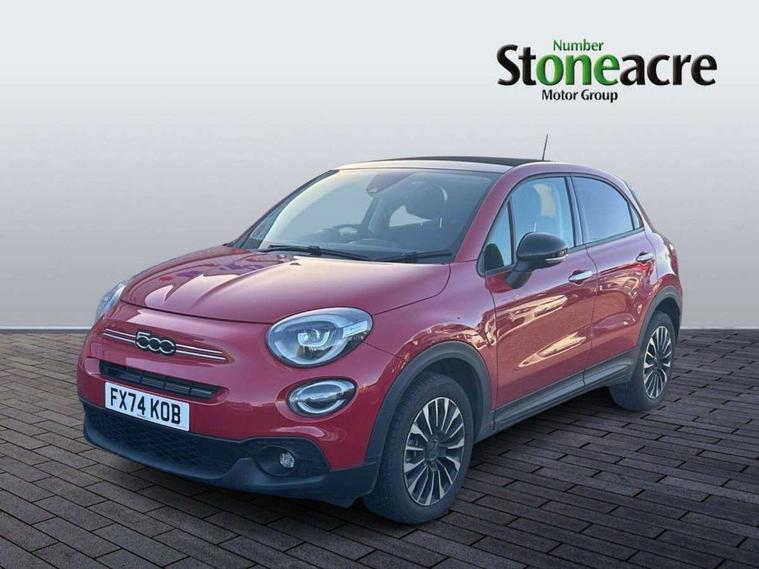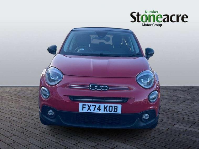 3.5" Colour TFT, 7" HD touchscreen DAB radio with bluetooth, 3D navigation, Aux-in and USB in central tunnel, Apple car play/Android Auto, Cruise control, Drowsy driver detection, E-call, Front parking sensor, Lane assist with intelligent speed assist and traffic sign recognition, Parkview rear parking camera, Power assist steering, Rear parking sensor, Stop/start system, Active roll mitigation, 6 speakers, USB port, 3rd brake light, Black bumpers and side skirting, Black electrically adjustable door mirrors, Dark tinted rear windows, Dusk sensor, Electric front and rear windows, Foldable soft top roof, Heated front windshield, Heated rear windows with wash wipe, LED tail lights, Rain sensor, Rear side wing doors, Rear spoiler, Rear wiper, Satin chrome inserts tailgate, door handles, front moulding, Urban body look, 3 seat bench in 2nd row, 60/40 split folding rear seat, Automatic dual zone climate control, Auxilliary 12V power socket, Cloth upholstery, Cooled glovebox, Courtesy light on sunvisor, Fiat monogram seats, Front armrest, Front head restraints, Front sliding armrest, Heated front seats, Height adjustable drivers seat, Light grey headliner and pillars, Seat back pockets, Single front passenger seat, Techno leather steering wheel with audio controls, Third rear headrest, Two rear head restraints, LED lights pack - 500X, LED Pack - 500X, 3x3 point rear seatbelts, 6 airbags - Front, side and window, Brake assistance system, Child locks on rear doors, Electronic parking brake, ESC including ASR, MSR, Hill Holder, ABS, EBD, ERM, DST, BAS, Front and rear seatbelt reminder, Height adjustable seatbelts, Manual passenger airbag deactivation function, Tyre pressure monitoring system, Deadlocks, Immobiliser, Remote central locking, Chromed silver dashboard logo, Cold grey dashboard, 17" Alloy wheels,