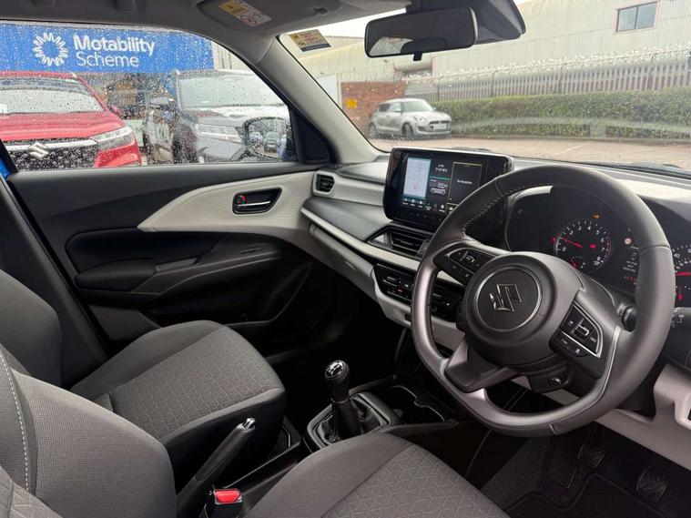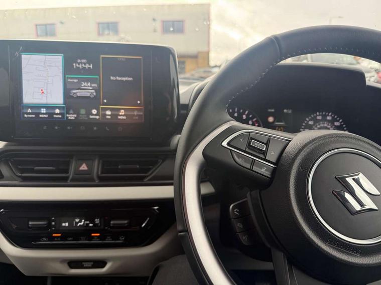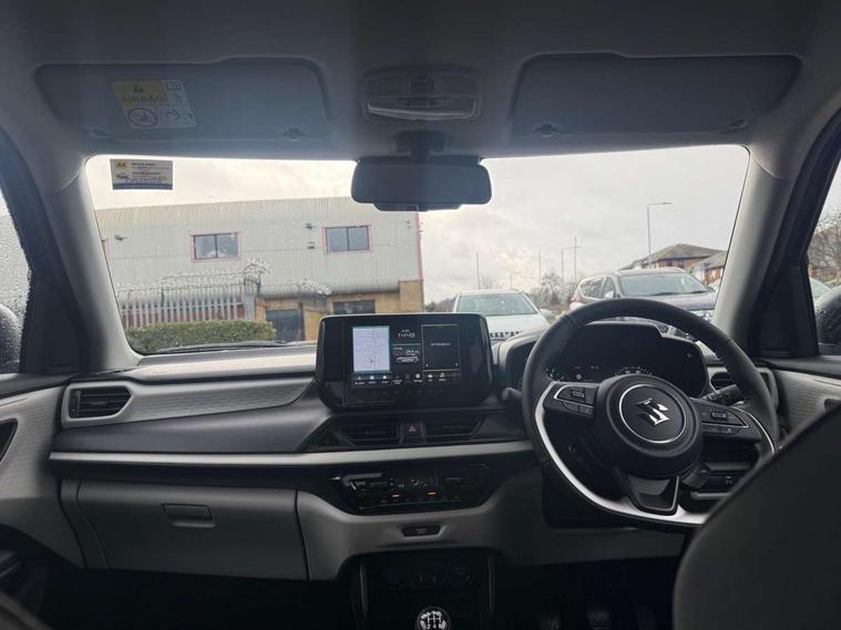 Adaptive cruise control, Automatic start/stop system, Blind spot monitoring, Colour LCD information display, Digital clock, Driver monitoring system, eCall, Fuel consumption display (average/instantaneous) and range display, Intelligent speed control support, Lane departure prevention, Lane departure warning system, Lane keeping assist (LKA), Low fuel level warning light, Navigation system, Outside temperature display, PAS, Rear cross traffic alert, Rear parking camera, Rear parking sensors, Remote fuel cap release, Smartphone integration with Apple CarPlay and Android auto, Suzuki connect, Tailgate, Traffic sign recognition, Weaving alert, 4 speakers + 2 tweeters, 9-inch infotainment display, Auxiliary input socket, Bluetooth audio streaming, DAB Digital radio, Steering wheel audio controls, USB Type A and C, 'Guide me home' headlamps, 1 speed with intermittent rear wiper + washer, 2 speeds front wiper with intermittent + washer, Automatic headlights, Black coloured A & B pillars, Black Upper and lower front grille, Body colour door mirrors and handles, C pillar trim moulding, Electric door mirrors, Electric front windows, Electric rear windows, Green tinted glass, Heated door mirrors, High beam assist, LED daytime running lights, LED High mounted stop light, LED position lamps, LED projector headlamps, LED rear combination lamp, Manual headlamp level control, Rain sensor, Rear fog lights, Rear privacy glass, Rear side wing doors, Rear spoiler, Side spoiler, 1 cup holder in rear, 12V Accessory socket in front console, 2 cup holders in front, 2 Isofix seat anchors, 3 bench rear seats in 2nd row, 3 rear head restraints, 3 spoke leather covered steering wheel, 60/40 split rear seats, Accessory socket, Centre console storage, Centre lower box, Child seat tether anchorages x 2, Chrome handbrake release button, Chrome interior door handles, Cloth upholstery, Door pockets with bottle holder, Driver/passenger sunvisors with ticket holders + vanity mirrors, Front cabin lights, Front headrests, Front map light, Front passenger side assist grip, Glovebox, Heated front seats, Heater, Height adjustable driver's seat, Luggage area lamp, Manual air conditioning with digital control panel, Material door trim ornament, Parcel shelf, Passenger seat back pocket, Pollen filter, Single front passenger seat, Tilt adjustable steering wheel, Tilt/telescopic adjustable steering wheel, 3 point ELR seatbelts for centre seat, 3 point ELR seatbelts front and rear, ABS+EBD+Brake assist, Curtain airbags, Driver airbag, Dual sensor brake support, ESP + traction control, Front and rear seatbelt reminder, Front passenger airbag, Front passenger airbag deactivation, Front seatbelt pretensioners with force limiters, Hill hold control, Rear child proof door locks, Rear seatbelts with pre-tensioners and load limiters, Side airbags with incorporated into front seats, Tyre pressure indicator, Deadlocks, Freewheeling key cylinders, Immobiliser, Keyless entry and start, Light - on and Key in reminder, Locking wheel nuts, Remote central locking, Painted instrument panel ornament, 16" Painted alloy wheels, Emergency flat tyre repair kit,