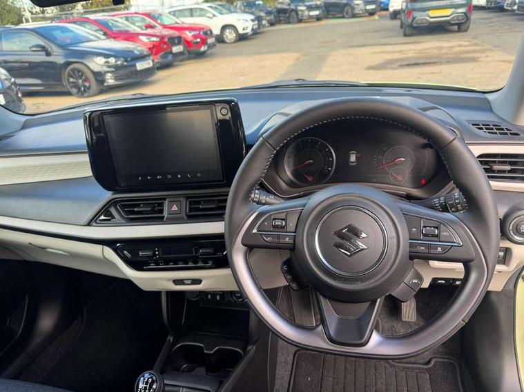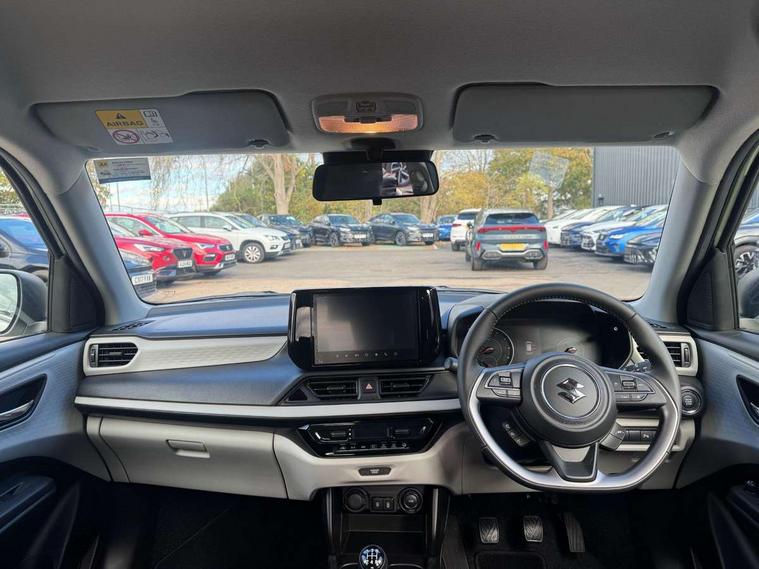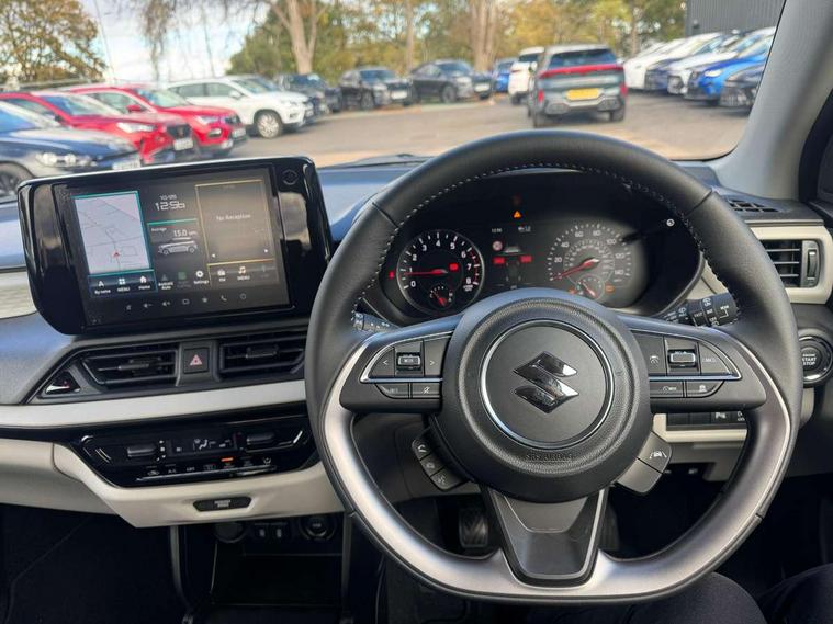 Adaptive cruise control, Automatic start/stop system, Blind spot monitoring, Colour LCD information display, Digital clock, Driver monitoring system, eCall, Fuel consumption display (average/instantaneous) and range display, Intelligent speed control support, Lane departure prevention, Lane departure warning system, Lane keeping assist (LKA), Low fuel level warning light, Navigation system, Outside temperature display, PAS, Rear cross traffic alert, Rear parking camera, Rear parking sensors, Remote fuel cap release, Smartphone integration with Apple CarPlay and Android auto, Suzuki connect, Tailgate, Traffic sign recognition, Weaving alert, 4 speakers + 2 tweeters, 9-inch infotainment display, Auxiliary input socket, Bluetooth audio streaming, DAB Digital radio, Steering wheel audio controls, USB Type A and C, 'Guide me home' headlamps, 1 speed with intermittent rear wiper + washer, 2 speeds front wiper with intermittent + washer, Automatic headlights, Black coloured A & B pillars, Black Upper and lower front grille, Body colour door mirrors and handles, C pillar trim moulding, Electric door mirrors, Electric front windows, Electric rear windows, Green tinted glass, Heated door mirrors, High beam assist, LED daytime running lights, LED High mounted stop light, LED position lamps, LED projector headlamps, LED rear combination lamp, Manual headlamp level control, Rain sensor, Rear fog lights, Rear privacy glass, Rear side wing doors, Rear spoiler, Side spoiler, 1 cup holder in rear, 12V Accessory socket in front console, 2 cup holders in front, 2 Isofix seat anchors, 3 bench rear seats in 2nd row, 3 rear head restraints, 3 spoke leather covered steering wheel, 60/40 split rear seats, Accessory socket, Centre console storage, Centre lower box, Child seat tether anchorages x 2, Chrome handbrake release button, Chrome interior door handles, Cloth upholstery, Door pockets with bottle holder, Driver/passenger sunvisors with ticket holders + vanity mirrors, Front cabin lights, Front headrests, Front map light, Front passenger side assist grip, Glovebox, Heated front seats, Heater, Height adjustable driver's seat, Luggage area lamp, Manual air conditioning with digital control panel, Material door trim ornament, Parcel shelf, Passenger seat back pocket, Pollen filter, Single front passenger seat, Tilt adjustable steering wheel, Tilt/telescopic adjustable steering wheel, 3 point ELR seatbelts for centre seat, 3 point ELR seatbelts front and rear, ABS+EBD+Brake assist, Curtain airbags, Driver airbag, Dual sensor brake support, ESP + traction control, Front and rear seatbelt reminder, Front passenger airbag, Front passenger airbag deactivation, Front seatbelt pretensioners with force limiters, Hill hold control, Rear child proof door locks, Rear seatbelts with pre-tensioners and load limiters, Side airbags with incorporated into front seats, Tyre pressure indicator, Deadlocks, Freewheeling key cylinders, Immobiliser, Keyless entry and start, Light - on and Key in reminder, Locking wheel nuts, Remote central locking, Painted instrument panel ornament, 16" Painted alloy wheels, Emergency flat tyre repair kit,