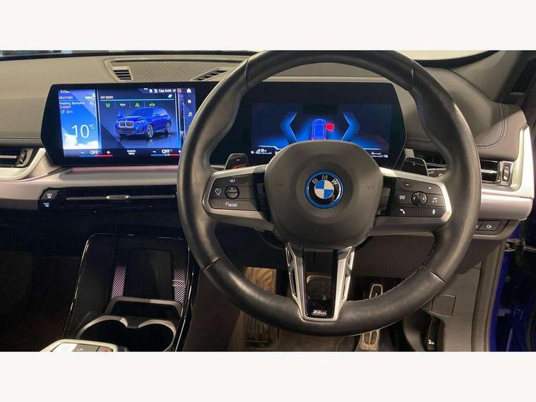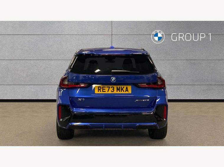 Attentiveness assist, Automatic start/stop function, BMW Live Cockpit Plus with 10.25" instrument cluster and 10.7" display, BMW Operating system 9 with BMW Maps, real-time traffic information, in-car experiences, remote services and smartphone integration, BMW Teleservices, Brake pad wear indicator, Condition based service, Connected eDrive Services, Drive off assistant, Electrically opening/closing tailgate with opening/closing with remote control and contactless opening and closing, iDrive controller, Language version English, My Modes, Parking Assistant with Reversing Assistant, active PDC, Lateral Parking Aid, Rear View Camera and Park Distance Control, Personal Profile - automatic lock when driving away selectable, Servotronic PAS, Tyre puncture warning system, Widescreen display, 45 Litre fuel tank, eDrive exterior sound, EU6 emissions management, Fast charging cable professional mode 3 for public charging, M Adaptive suspension, Performance Control, Petrol Particulate Filter, Steptronic transmission with double clutch and gear shift paddles, xDrive intelligent four wheel drive system, DAB Digital radio, Badge on engine compartment lid and tailgate, Dynamic brake lights, Electric adjustable heated door mirrors, Electric windows - front and rear, with open/close fingertip control, anti-trap facility and comfort closing, Folding door handles integrated flush with surface, Follow me home headlights, Front and rear bumper panel with M specific design, in body colour with inserts in black high gloss, Front door exit lights, Front entry sills aluminium inserts with M inscription, Heated rear window, High gloss shadow line incl A/B/C-pillar panel/window frame/recess finish strip/window rail front door/mirror frame/cover panel in high gloss black, Invisible exhaust tailpipe, Key with M identification, LED 3rd brake light integrated in rear spoiler, LED daytime running lights, LED number plate light, M identification on the sides, M roof rails high gloss shadow line, M specific radiator grille in satinated aluminium, Matt black roof strips, Rain sensor including auto headlights activation, Rear side wing doors, Rear wiper, Side sill covers with M specific design in body colour, Trailer stabilisation logic, Windscreen washer nozzle for rear view camera, Windscreen wipers front with heated washer nozzles, 12V - Power sockets with front centre console and luggage compartment, 2 bag hooks in luggage compartment, 2 cup holders in front, 2 x USB Type C ports for charging and data transmission (front centre console) and 2 x USB Type C ports for charging (rear centre console), 3 rear headrests, 3 seat bench in 2nd row, 3 upper retaining strap clips integrated into rear panels of seat backrests, 40:20:40 split folding rear seats, Ambient interior lighting, Anthracite headlining, Anthracite Velour front and rear floormats, Bottle trays in all doors, Child seat ISOFIX attachment for two outer rear seats and front passenger seat with anchorage points, Clothes hook rear, Driver and front passenger heated seats, Dual zone automatic air conditioning, Front and rear door pockets, Front centre console storage compartment, Front/rear adjustable head restraints, Glove compartment, Light on right in luggage compartment, M sport leather steering wheel, Manual steering column height and depth adjustment, Map pockets, Middle centre console storage compartment, One piece parcel shelf opens together with tailgate and removable, Rear armrest in door trim panel, Single front passenger seat, Sport leather multifunction steering wheel with thumbrests and operation of instrument display, audio, telephone and driver assistance, Storage compartment net in left side trim panel, Storage compartment with folding cover under centre console armrest cushion, Storage tray in right side trim panel, Tilt adjustment incl. cargo function of 2nd row of seats, ABS/EBD, Automatic hold function, Automatic Stability Control (ASC), BMW emergency call, Braking readiness, Cornering brake control (CBC), Crash Sensor - activates hazard/interior lighting + unlocks doors, Driver/Front Passenger airbags, Driver/front passenger side airbags, Dry braking, Dynamic brake control, Dynamic stability control + (DSC+), Electromechanical parking brake, Energy recovery system, First aid kit, Front and rear brake discs, Front and rear head airbags, Front passenger airbag deactivation, Integrated brake system, PC iBrake PostCrash approach control warning with light braking function, Rear door child safety locks, Three point seat belts in all seats, Tyre pressure monitor, Warning triangle, Alarm system with tilt sensor, monitoring doors, bonnet interior and tailgate, Closing system with central locking, Locking wheel bolts, Luxury instrument panel, Tyre repair kit (including Tyre sealant and 12V Compressor),