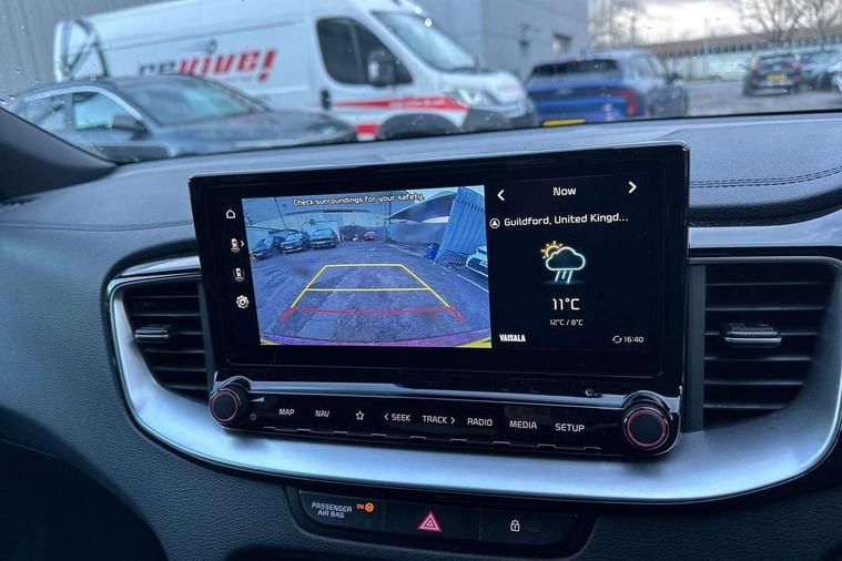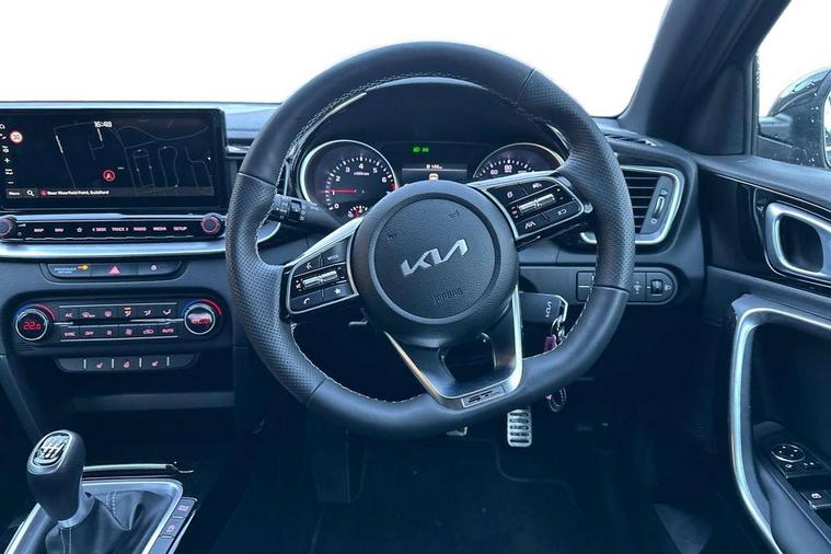 10.25" touchscreen satellite navigation, 4.2" supervision colour cluster display, Apple CarPlay and Android Auto, Bluetooth with Voice Recognition & Music Streaming, Cruise control, Drive mode select (Eco, Normal, Sport), Driver attention warning, Emergency call service, Forward Collision-Avoidance Assist (FCA) 1.0 - City/Pedestrian/Cyclist, Intelligent speed limit assist, Kia connected services, Lane Follow Assist 1.0, Lane keep assist, Motor driven power steering, Rear parking sensor, Reversing camera with dynamic guide lines, Speed limiter, Tailgate, Trip computer, 7 speakers, Front USB port for media connection, Auto dimming rear view mirror, Automatic defog system, Automatic headlights, Black side sill mouldings with body coloured inserts, Black wheel arch trim, Body colour bumpers, Body colour rear roof spoiler, Chrome window surround, Electric front/rear windows with one touch, Electrically folding, adjustable and heated door mirrors with integrated LED indicator lights, Front and rear chrome skid plates, Gloss black door mirrors, GT-Line exterior styling, Heated rear window, High gloss black roof rails, High glossy black and dark chrome radiator grille, LED daytime running lights, LED front fog lights, LED Headlights, LED High-mounted Brake Light, LED rear lights (Honeycomb design with sequential indicators), Privacy glass - Rear windows and tailgate, Rain sensing front wipers, Rear fog lights, Rear side wing doors, Rear wiper, 3 seat bench in 2nd row, 60/40 split folding rear seat, All-round height adjustable headrests, Alloy pedals, Automatic air conditioning, Centre console with storage box, Cloth / Artificial leather upholstery, Driver + front passenger electric lumbar support, Driver's seat height adjuster, Front and luggage area 12V power sockets, Front and rear door storage, Front cabin light with sunglasses case, Front passenger 1 x USB-C charging port, Front Passenger Seat Height Adjuster, GT-Line Interior Styling, Heated front seats, Heated steering wheel, Illuminated driver and front passenger sunvisors with vanity mirror, ISOFIX Child seat top tethers and anchor fixings outer rear seats, Leather steering wheel, Luggage area parcel shelf, Luggage hooks, Manual steering wheel adjustment, Rear and Luggage compartment light, Rear centre armrest with cupholders, Rear passenger 1 x USB-C charging port, Single front passenger seat, All round 3-point seatbelts, Anti-Lock braking system with emergency stop signalling, Electronic parking brake with auto hold function, Electronic stability control (ESC) and vehicle stability management (VSM), Front passenger airbag cut off switch, Front, side and curtain airbags, Height adjustable front seatbelts, Hill start assist control (HAC), Rear door child safety locks, Seatbelt reminder warning, Customisable automatic door locking, Customisable automatic door unlocking, Locking wheel nuts, Smart key with motion sensor, Thatcham category 2 security alarm and immobiliser, Visible vehicle identification number, 18" GT-Line alloy wheels, Tyre mobility kit,