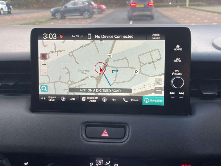 7" TFT instrument cluster, Adaptive cruise control, Adjustable speed limiter, Agile handling assist, Bluetooth hands free telephone connection, Drive modes select (Eco, normal and sport), eCall emergency system, Electric power steering, Emergency stop signalling system, Forward collision warning, Front parking sensors, Honda CONNECT with navigation, 9" touchscreen, AM/FM/DAB/Apple Carplay and android auto, Idle stop, Intelligent speed limiter, Lane departure warning, Lane keep assist, Low speed following, Multi info display, Power meter, Rear parking sensors and rear view camera, Road departure mitigation, Tachometer, Tailgate, Traffic sign recognition, WiFi connectivity, Vehicle stability assist, 'Shark fin' mobile antenna, 2x USB Front socket (1 data & 1 charge), 4 speakers, Steering wheel mounted remote controls, Auto folding door mirrors, Auto high beam, Automatic coming home lighting, Automatic headlights, Automatic rain sensing wipers, Body colour bumpers, Body colour tailgate spoiler, Body coloured door handles, Body coloured door mirrors, Body coloured front grille, Electric front and rear windows, Electrically adjustable and heated door mirrors, Exclusive styling in lower bumper non painting black, Fog garnish non paint gloss black, lower door garnish bumper skid garnish non paint silver, Front sequential turn, Headlight washers, Heated front windscreen, Heated rear window, High level third brake light, LED daytime running lights, LED headlamps, Low gloss window garnish, Manual headlight levelling, Rear side wing doors, Rear wiper, Red and clean lens LED rear lights, Variable front intermittent wipers, Windscreen shadeband, 3 rear headrests, 3 seat bench in 2nd row, 60/40 split folding rear seat, Ambient interior lighting, Automatic air conditioning, Cargo net hooks, Courtesy lights, Driver's seat height adjustment, Driver/passenger sunvisors with illuminated vanity mirrors, Front and rear map reading lights, Front head restraints, Front seat armrests, Heated front seats, Isofix points, Luggage area under floor storage box, Magic seat flexibility system, Manual height/reach adjust steering wheel, Meter illumination light, Paddle shift controls, Passenger seat back pocket, Rear centre armrest, Rear ventilation, Silver interior door handles, Single front passenger seat, Tonneau cover, Trunk light, 3x3 point rear seatbelts, ABS+EBD+Brake assist, Anti-whiplash front headrests, Auto hold function, Collision mitigation braking system, Collision mitigation throttle control, Deflation detection system, Dual front SRS airbags, Electric child locks, Electronic parking brake, Front and rear curtain airbags, Front and rear safety belts with Emergency Locking Retractor, Front side airbags, Hill descent control, Hill start assist, Low speed safety system, Paddle deceleration control, Passenger SRS airbag cut-off device, Regenerative braking system, Door deadlocks, Honda super locks, Immobiliser, Keyless smart entry with push button start, Remote central locking with 2 remote folding keys, Security alarm, Windows key fob operation, 18" Black cut alloy wheels, Tyre repair kit,