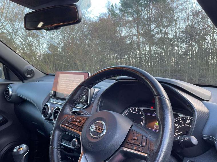 7" full colour TFT screen combimeter, 8" infotainment colour display with touch screen, Apple CarPlay and Google Android auto, Drive modes select (Eco, normal and sport), Emergency and breakdown call, Front parking sensor, Idle start/stop system, Intelligent lane intervention, Lane departure warning system, Nissan connect nav with TomTom traffic, Nissan connect services and Wifi connection, Outside temperature sensor, Power Steering, Rear parking sensor, Traffic sign recognition, Trip computer, Gasoline particulate filter, 6 speakers, Bluetooth system, USB, Aux-in and 12V socket, DAB Digital radio, Rear console USB port, Auto dimming interior rear view mirror, Automatic hazard signal with emergency stop signal, Body colour bumpers, Body colour door handles, Electrically adjustable door mirrors with integrated indicators, Follow me home headlights, Front and rear electric window with one touch driver window, Heated and auto folding door mirrors, High beam assist, LED daytime running lights, LED headlamps, LED rear fog lamp, LED rear lamps, Rain sensor windscreen wipers, Rear privacy glass, Rear wiper, Three blink turn signal, 3 height adjustable rear headrests, 60/40 split folding rear seat, Automatic climate control, Card holder on driver sunvisor, Cloth upholstery, Driver and passenger sliding and reclining seats, Driver side rear coat hanger, Driver/passenger sunvisors and vanity mirrors, Front and rear cabin lights, Front armrest, Front door pockets with bottle holders, Front head restraints, Front/rear passenger grab handles, Grey synthetic leather kneepad, Height adjustable driver's seat, Internal chrome door handles, Leather gearshift knob, Leather steering wheel, Luggage board, Luggage space lighting, Monoform sporty seats, Multifunction steering wheel, Rear door bottle holders, Telescopic steering wheel adjustment, Two cupholders in front centre console, Two rear isofix child seat anchorage points with top tether, Voice recognition switch on steering wheel, Welcome light and console tray ambient lighting, ABS with EBD and brake assist, Active ride control, Active Trace Control, Driver and passenger airbags, Driver and passenger side airbags, Electric handbrake with auto hold function, Electronic Stability Programme (ESP), Front and rear curtain airbags, Height adjustable seatbelts, Hill start assist, Intelligent emergency braking with pedestrian and cyclist recognition, Seatbelt reminder for driver/front passenger and rear seats, Single tone horn, Three 3 point rear seatbelts, Traction control, Tyre pressure monitoring system, VDC Dynamic Vehicle Control, Ventilated rear brake discs, Alarm, Immobiliser, Intelligent Key with push button starter, Remote central locking,