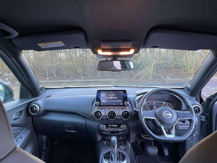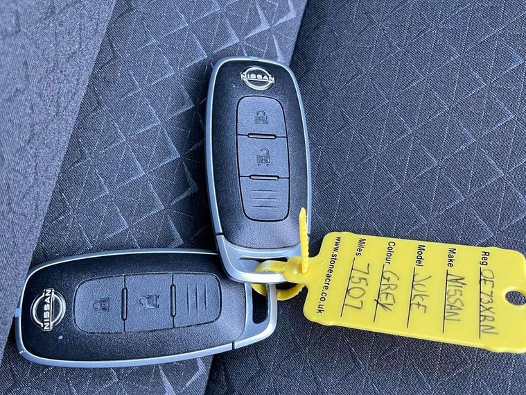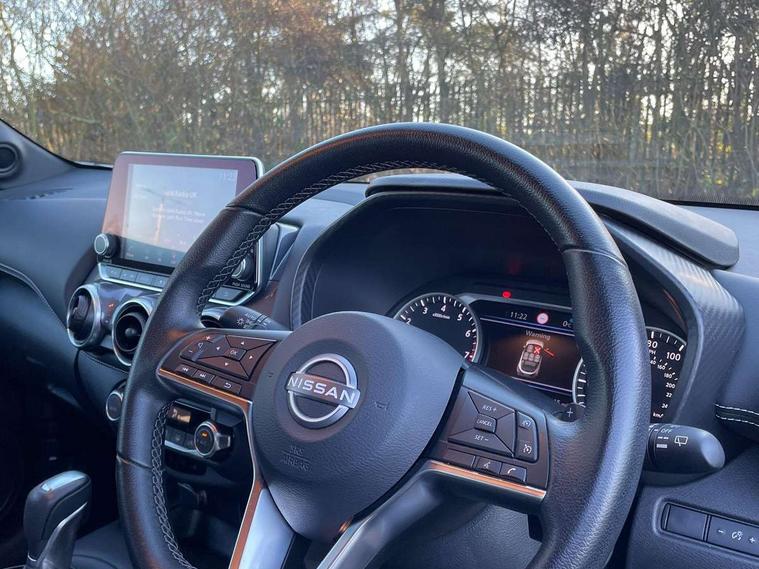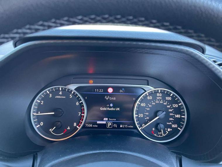 7" full colour TFT screen combimeter, Apple CarPlay and Google Android auto, Drive modes select (Eco, normal and sport), Emergency and breakdown call, Front parking sensor, Idle start/stop system, Intelligent lane intervention, Lane departure warning system, Nissan connect 8" touch screen entertainment system, Nissan connect nav with TomTom traffic, Nissan connect services and Wifi connection, Outside temperature sensor, Power Steering, Rear parking sensor, Traffic sign recognition, Trip computer, Voice recognition, Gasoline particulate filter, 6 speakers, Bluetooth system, USB, Aux-in and 12V socket, DAB Digital radio, Rear console USB port, Auto dimming interior rear view mirror, Auto headlights, Automatic hazard signal with emergency stop signal, Body colour bumpers, Body colour door handles, Electrically adjustable door mirrors with integrated indicators, Follow me home headlights, Front and rear electric window with one touch driver window, Heated and auto folding door mirrors, High beam assist, LED 3rd brake light, LED daytime running lights, LED headlamps, LED rear fog lamp, LED rear lamps, Rain sensor windscreen wipers, Rear privacy glass, Rear side wing doors, Rear wiper, Roof spoiler, Shark fin roof antenna in Pearl Black, Three blink turn signal, 3 height adjustable rear headrests, 3 seat bench in 2nd row, 60/40 split folding rear seat, Automatic climate control, Card holder on driver sunvisor, Cloth upholstery with black and metallic grey syntech leather inserts, Driver and passenger sliding and reclining seats, Driver side rear coat hanger, Driver/passenger sunvisors and vanity mirrors, Front and rear cabin lights, Front armrest, Front door pockets with bottle holders, Front head restraints, Front/rear passenger grab handles, Grey synthetic leather kneepad, Height adjustable driver's seat, Internal chrome door handles, Leather gearshift knob, Leather steering wheel, Luggage board, Luggage space lighting, Monoform sporty seats, Multifunction steering wheel, Rear door bottle holders, Single front passenger seat, Steering wheel mounted gearshift paddles, Telescopic steering wheel adjustment, Two cupholders in front centre console, Two rear isofix child seat anchorage points with top tether, Welcome light and console tray ambient lighting, ABS with EBD and brake assist, Active ride control, Active Trace Control, Driver and passenger airbags, Driver and passenger side airbags, Electric handbrake with auto hold function, Electronic Stability Programme (ESP), Front and rear curtain airbags, Height adjustable seatbelts, Hill start assist, Intelligent emergency braking with pedestrian and cyclist recognition, Rear door child safety locks, Seatbelt reminder for driver/front passenger and rear seats, Single tone horn, Three 3 point rear seatbelts, Traction control, Tyre pressure monitoring system, VDC Dynamic Vehicle Control, Ventilated rear brake discs, Alarm, Immobiliser, Intelligent key and start push button with walk away lock and approach unlock functions, Remote central locking,