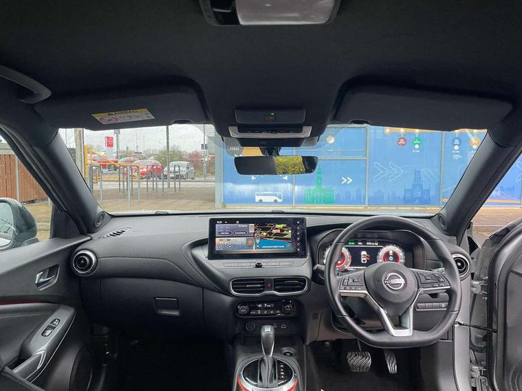 12.3" full colour TFT screen combimeter, Drive modes select (Eco, normal and sport), Emergency and breakdown call, Front parking sensor, Idle start/stop system, Intelligent driver alert system, Intelligent lane intervention, Lane departure warning system, Nissan connect 12.3" touch screen entertainment system, Nissan connect nav with TomTom traffic, Nissan connect services and Wifi connection, Outside temperature sensor, Power Steering, Rear parking sensor, Stop/start button, Traffic sign recognition, Trip computer, Voice recognition, Wireless Apple CarPlay and Google Android auto, Wireless Smartphone charger, 2 X Rear console USB port, 6 speakers, Bluetooth system, USB, Aux-in and 12V socket, DAB Digital radio, Auto dimming frameless rear view mirror, Automatic hazard signal with emergency stop signal, Body colour door handles, Electrically adjustable door mirrors with integrated indicators, Follow me home headlights, Front and rear electric window with one touch driver window, Heated and auto folding door mirrors, High beam assist, LED 3rd brake light, LED daytime running lights, LED headlamps, LED rear fog lamp, LED rear lamps, One touch passenger window, Rain sensor windscreen wipers, Rear privacy glass, Rear side wing doors, Rear wiper, Roof spoiler, Shark fin roof antenna in solid Black, Three blink turn signal, 3 height adjustable rear headrests, 3 seat bench in 2nd row, 60/40 split folding rear seat, Automatic climate control, Card holder on driver sunvisor, Cloth/Synthetic leather with melange fabric inserts, Driver side rear coat hanger, Driver/passenger sunvisors and vanity mirrors, Front and rear cabin lights, Front armrest, Front door pockets with bottle holders, Front head restraints, Front/rear passenger grab handles, Height adjustable driver's seat, Internal chrome door handles, Leather gearshift knob, Leather steering wheel, Luggage board, Luggage space lighting, Monoform sporty seats, Multifunction steering wheel, Rear door bottle holders, Single front passenger seat, Steering wheel mounted gearshift paddles, Synthetic leather kneepad, Telescopic steering wheel adjustment, Two cupholders in front centre console, Two rear isofix child seat anchorage points with top tether, Welcome light and console tray ambient lighting, ABS with EBD and brake assist, Active ride control, Active Trace Control, Driver and passenger airbags, Driver and passenger side airbags, Electric handbrake with auto hold function, Electronic Stability Programme (ESP), Front and rear curtain airbags, Height adjustable seatbelts, Hill start assist, Intelligent emergency braking with pedestrian and cyclist recognition, Rear door child safety locks, Seatbelt reminder for driver/front passenger and rear seats, Three 3 point rear seatbelts, Traction control, Tyre pressure monitoring system, VDC Dynamic Vehicle Control, Alarm, Immobiliser, Intelligent key and start push button with walk away lock and approach unlock functions, Remote central locking, 17" Alloy wheels,