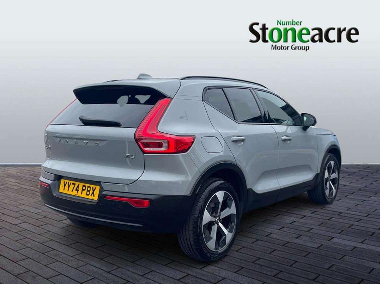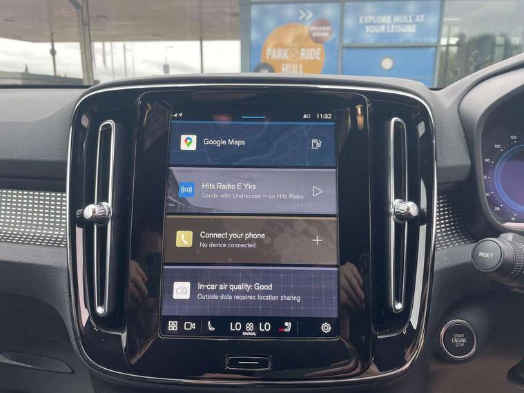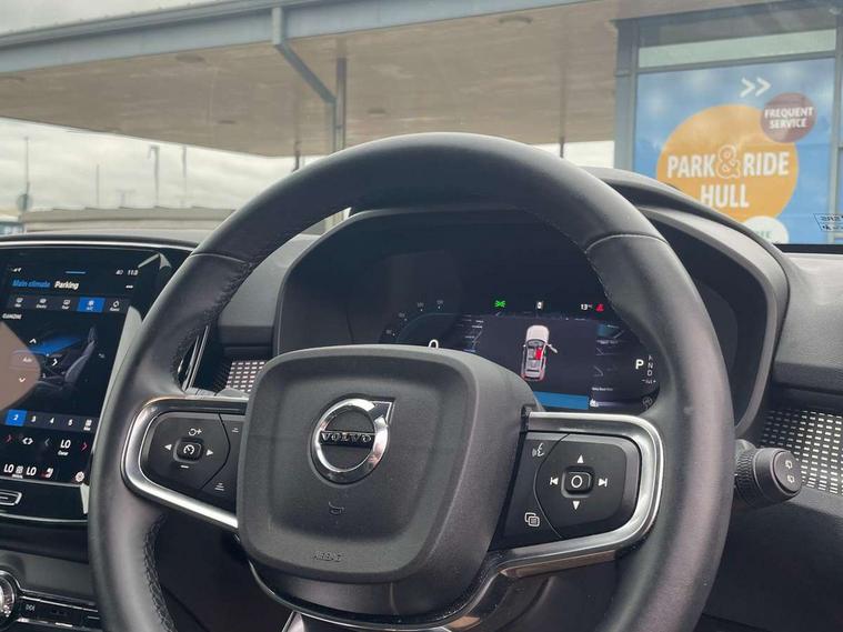 12.3" Progressive Driver Display, 9" centre console portrait touch screen, Adjustable steering wheel force, Apple carplay (wired), Bluetooth handsfree system, Cruise control, Driver alert control, E-call, Front park assist, Google automotive services - Enabled entertainment apps, navigation with google maps, voice recognition with google assistant, Hands free power tailgate, Intelligent speed assistance, Lane keeping aid, Oncoming Lane Mitigation, Rear park assist, Rear park assist camera, Speed sensitive steering, Volvo cars services with app - Driving journal, emergency and breakdown call, engine remote start, remote door locking/unlocking and vehicle dashboard, Wireless/Inductive Mobile Phone Charging, Automatic transmission with start/stop and manual change functions, Dynamic chassis, DAB Digital radio, Steering wheel mounted remote controls, Adaptive brake lights with high level LED brake lights, Auto dimming interior mirror, Automatic headlamp levelling, Automatic LED Headlights + Active high beam incorporating daytime running lights, Front aluminium tread plates, Front and rear electric windows, High gloss black front and rear skid plate, High gloss black front bumper deco, High gloss black mesh front grille with high gloss black surround, High gloss black window trim, Home safe and approach lighting, Integrated roof rails in high gloss black, LED front fog lights, Puddle lights, Rain sensor with automatic windscreen wiper activation, Rear side wing doors, Rear wiper, Roof antenna, Roof spoiler, Visible VIN plate, 12V socket in front tunnel console and luggage compartment, 2-Zone electronic climate control with CleanZone air quality system and pollen filter, 3 seat bench in 2nd row, 3 Spoke tailored steering wheel with chrome trim, 60/40 versatile split folding rear seat, Centre console cupholders and storage, Flexible load floor and grocery bag holder, Floor mats, Front cabin courtesy lights, Front door pocket, front cupholder, ambient front door, rear reading, rear courtesy, instrument panel and tailgate lighting, Front footwell illumination, Front headrests, Front reading lights, Front seat cushion extensions, Front side step illumination (under door), Glovebox bag hook, Heated front seats, Height adjustable passenger seat, Height/reach adjustable steering column, High gloss centre tunnel deco, Illuminated glovebox, Illuminated luggage compartment, Illuminated vanity mirrors + ticket holder, Integrated waste bin, Isofix attachments on outer rear seats, Load cover, Load protection net, Multi directional lumbar support for driver and passenger seat, Power driver seat with memory + exterior mirrors memory, Rear armrest with cupholders, Rear headrests, Single front passenger seat, Underfloor cargo storage, Climate pack without heated front seats - XC40, 3x3 point rear seatbelts, City safety with steering support with Pedestrian + cyclist + front collision warning with full auto brake and rear auto brake, Driver and passenger airbags, Drivers knee airbag, Electronic parking brake with auto hold, First aid kit, Front and outer rear seatbelt reminder and pretensioners, Front seats SIPS airbags, Hill descent control, Hill start assist, Inflatable curtain, Passenger airbag cut-off device, Power child locks on rear doors, Road sign information display, Run off Road Protection, SIPS (Side Impact Protection System), Slippery road and hazard light alert, Stability and Traction Control with Spin control, Engine Drag Control and Corner Traction Control, Tyre pressure monitoring system, Vehicle deceleration control with Anti-lock Brake System, Electronic Brake Distribution and Emergency Brake Assist, Warning triangle, WHIPS whiplash protection system - front, 2 x Key integrated remote control central locking including with deadlocking system and auto open/close windows, Anti-theft alarm including immobiliser/volume sensor + level sensor, Keyless drive includes keyless entry and keyless start, Locking wheel nuts,