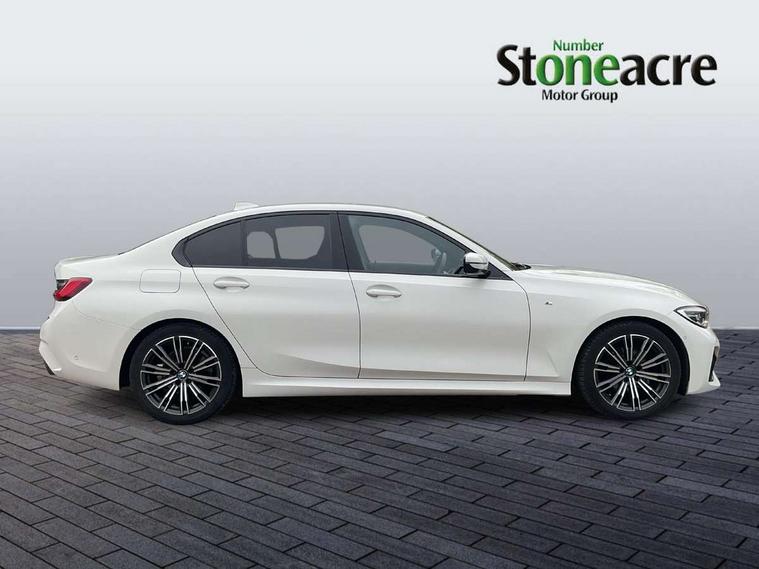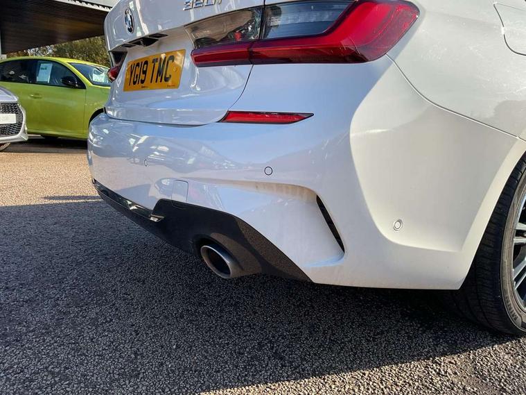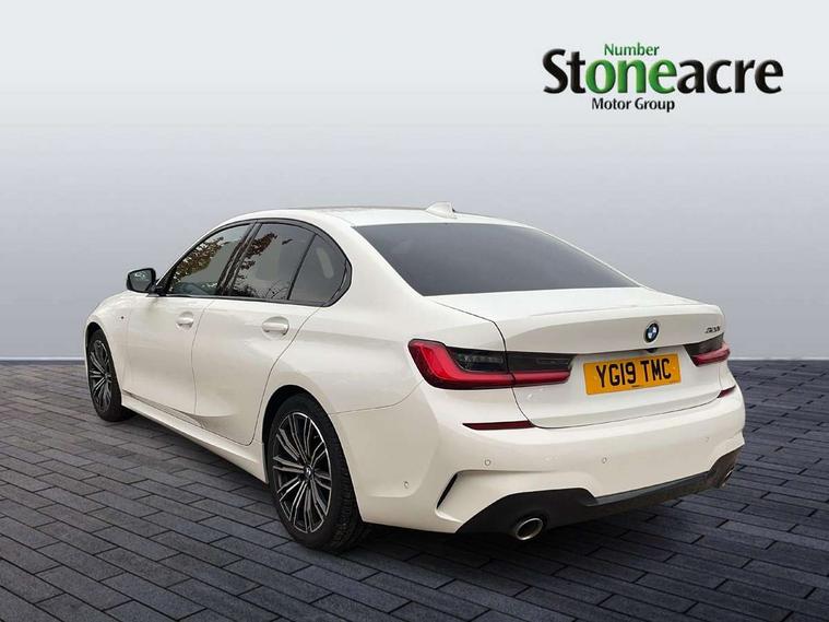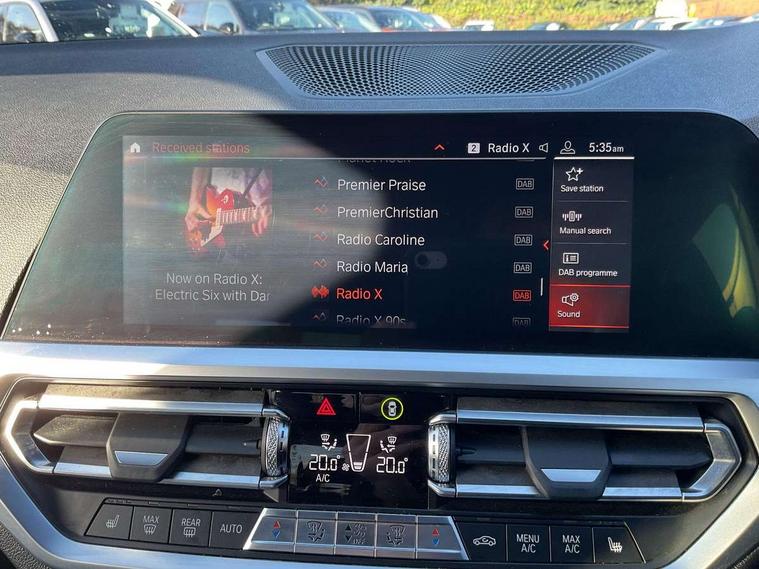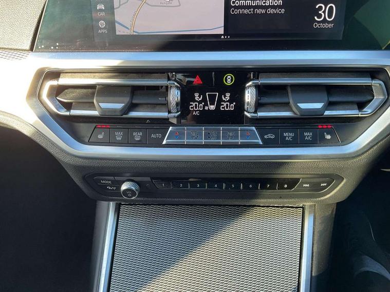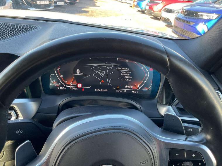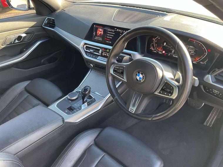 Active guard plus, Attentiveness assist, Auto start-stop, BMW Live Cockpit Professional sat nav system including 10.25" high resolution display and Intelligent Voice Assistant, BMW Online services, BMW Teleservices, Brake pad wear indicator in front and rear, Check Control warning system for monitoring of lights and door/luggage compartment open warning, Condition based service, Front/rear park distance control, iDrive controller on centre console, Instrument cluster with speedometer with mph readout, tachometer, fuel gauge and oil temperature gauge, Oil sensor for level and grade, On board computer - average speed+fuel consumption, service interval, clock/date, odometer/trip meter, outside temperature display and ice warning, Optimum shift indicator, Pesonal profile, Variable sport steering, Battery cut-out switch, Drive performance control with ECO PRO comfort + sport mode, Electronic differential lock, Larger capacity fuel tank, Sport automatic transmission with steering-wheel mounted gearshift paddles and launch control, DAB tuner, Acoustic glazing, Active airstream chrome frame kidney grille with 8 high gloss black vertical slats, Automatic headlight beam throw control with load dependent regulating reaction, dynamic compensation of braking dive and acceleration squat, Black roof mouldings, Body colour - fuel filler flap, front and rear bumpers, door handles and mirror caps with integrated turn indicator + bottom segment in matt black, Dynamic brake lights, Extended LED headlights, Exterior mirrors - electrically folding with anti-dazzle, Front and rear bumper system with replaceable deformation elements, Front and rear electric windows with open and close fingertip control, anti trap facility and comfort closing, Front black door sill finishers with BMW designation, Green tinted heat protection glazing, Interior rear view electrochromatic mirror with automatic anti dazzle function, LED front fog lights, Left and right split exhaust tailpipes, Lightweight engineering, M aerodynamic body styling, M designation on left and right front side panels, M designation side badges, Matt black exterior B pillar, Model designation on right side of tailgate, Rain sensor with automatic headlight activation, Shark fin antenna, Two part LED tailights in L-shape with components in smoked glass, brake light, LED turn indicator and rear fog light, Visible VIN plate, Welcome lights in interior and door handle area, Windscreen wipers with integrated washing jets, 12V power socket in front storage compartment, 2 front cupholder in centre console with clamping elements and matt black inlay, 3 rear seats with non folding headrests with 3 point seat belts, 3 spoke M leather steering wheel, 4 pieces lashing eyelets in luggage compartment, 40:20:40 split folding rear bench seat, Ambient lighting, Anthracite headlining, Armrest integrated in front and rear door trim + front centre console armrest, Centred top Luggage compartment lights, Four grab handles integrated in roof lining, Front and rear door pockets, Front and rear velour floor mats, Front sport seats, Heated driver and front passenger seats, Height adjustable mechanically and infinitely variable steering column, Illuminated glove compartment with separate small compartment, Interior lighting - front centre over interior mirror with soft light, rear centre and front and rear footwell lighting, Rear centre armrest with 2 cupholders, Rear centre console with storage compartment and ventilation grille, Steering column length adjustment lever, Sunvisors with vanity mirrors and ticket pocket, Three zone automatic air conditioning, Through loading system with 40/20/40 split folding rear seat, Toolkit located in luggage compartment, Vernasca leather upholstery, Connected pack professional - 3 Series Saloon/Touring, M Aerodynamics pack - 3 Series Saloon/Touring, 2 tone horn, ABS, Automatic Stability Control (ASC), BMW emergency call, Brake assist function, Brake drying, Brake energy regeneration, Braking pre-tensioning, Child proof locking system in rear door, Child seat ISOFIX attachment rear outer seats, Cornering brake control (CBC), Crash sensor activating central locking release, hazard warning lights, fuel cut off, interior lighting + activation of safety battery terminal clamp, Driver and front passenger front and side airbags with passenger deactivation and ITS front and rear head airbags, Dynamic brake control, Dynamic Traction Control - DTC, Electromechanical parking brake with automatic drive away release and auto hold function, Hill start assist, Seat belt security check for driver and front passenger, Side impact protection, Three 3 point seat belts on all seats including front belt stopper, pyrotechnic belt tensioners and belt force limiters, Tyre pressure monitoring with three level warning strategy, Variable torque distribution, Ventilated front and rear disc brakes, Warning triangle and first aid kit, Alarm system (Thatcham 1) with remote control and electronic engine immobiliser, Central locking switch for all doors, fuel filler cap and luggage compartment, Remote control with integrated key one button open/close vehicle and windows, sole opening of the luggage compartment lid and panic mode, Selectable automatic lock when driving away, Start/stop button with Comfort Go keyless engine start and auto Start/stop deactivation button, Vehicle key with M specific designation, Reduced rolling resistance tyres,