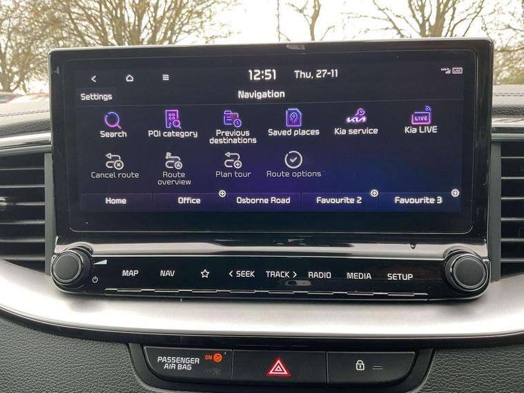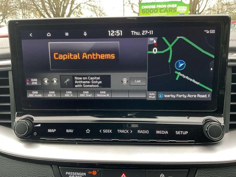 10.25" touchscreen satellite navigation with telematics, 4.2" supervision colour cluster display, Android auto with voice control, Apple car play with voice control, Bluetooth with Voice Recognition & Music Streaming, Cruise control + speed limiter, Driver attention warning, Emergency call service, Forward Collision-Avoidance Assist (FCA) - City/Pedestrian/Cyclist, Lane Following Assist (LFA), Lane keep assist, Motor driven power steering, Rear parking sensor, Reversing camera with dynamic guide lines, Trip computer, Intelligent Stop and Go, 1x Rear USB-C, 2x Front USB (1x USB-C, 1x USB-A), 7 speakers, DAB Radio with MP3, Rear console USB C-type charge port, Steering wheel mounted controls, All-round Electric Windows with Auto Up & Down Function, Auto dimming rear view mirror, Automatic defog system, Automatic headlights, Black wheel arch extensions, Body colour bumpers, Body colour exterior door handles, Body colour roof spoiler, Body colour side sill mouldings, Body coloured door mirrors with matt black lower housing, Body coloured shark fin antenna, Electrically folding, adjustable and heated door mirrors with integrated LED indicator lights, Heated rear window with timer, High beam assist, LED Bi-Function projection headlights, LED daytime running lights, LED High-mounted Brake Light, LED rear fog light, LED rear lights, Matt black and satin chrome radiator grille, Privacy glass - Rear windows and tailgate, Projection front fog lights, Rain sensing front wipers, Rear side wing doors, Rear wiper, Satin chrome window surround, Silver roof rails, Smaller XCeed badge on rear left hand tailgate, Tinted glass, Wide view drivers door mirror, Windscreen Washer Level Warning, 3 seat bench in 2nd row, 60/40 split folding rear seat, All-round height adjustable headrests, Centre Console with Storage Box and Sliding Armrest, Chrome interior door handles, Cloth/faux leather upholstery, Cupholders in centre console, Driver + front passenger electric lumbar support, Driver and passenger front seat pockets, Driver's seat height adjuster, Dual zone automatic air conditioning, Faux leather door trim, Front and luggage area 12V power sockets, Front and rear door storage, Front cabin map light with sunglasses case, Front Passenger Seat Height Adjuster, Heated front seats, Heated steering wheel, Illuminated driver and front passenger sunvisors with vanity mirror, ISOFIX Child seat top tethers and anchor fixings, Leather steering wheel and faux leather gearshift, Luggage area light, Luggage area parcel shelf, Luggage hooks, Rear cabin light, Rear centre armrest with cupholders, Single front passenger seat, Tilt/telescopic adjustable steering wheel, ABS with Electronic Brakeforce Distribution (EBD) and Brake Assist System (BAS), All round 3-point seatbelts, Dual horn, Electronic parking brake, Electronic stability control (ESC) and vehicle stability management (VSM), Front passenger airbag cut off switch, Height adjustable front seatbelts, Hill start assist control (HAC), Impact sensing auto door unlocking, Rear door child safety locks, Seatbelt reminder warning, Traction control, Twin curtain airbags, Twin front airbags, Twin front side airbags, Tyre pressure monitoring system, Alarm system, Engine Immobiliser & Deadlocks, Locking wheel nuts, Smart key with engine start/stop button, 18" Alloy wheels, Tyre mobility kit,