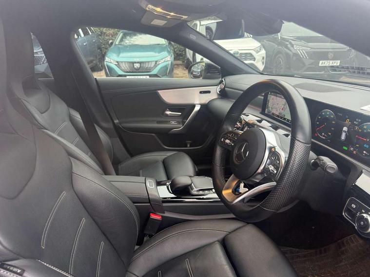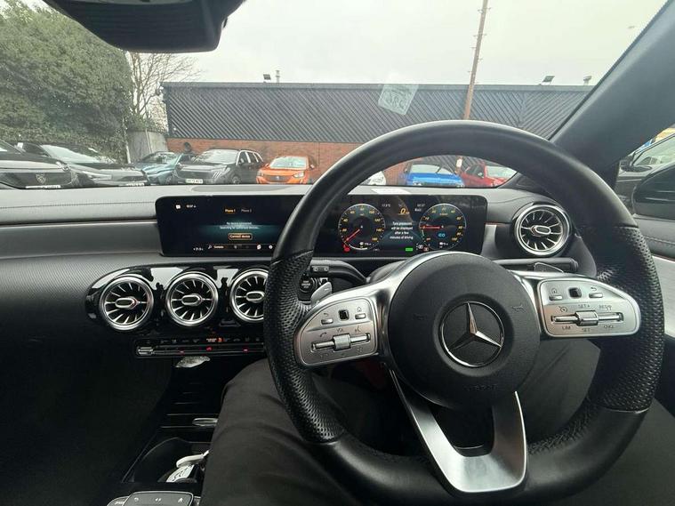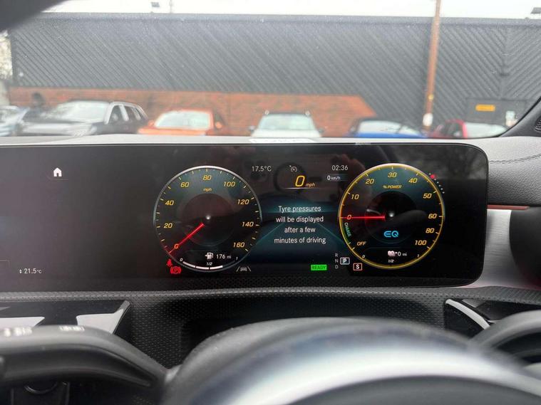10.25 inch Instrument display with digital cockpit, 10.25 inch touchscreen central media display, Acoustic ambient protection, Active lane keeping assist, Attention assist - Monitors steering behaviour and long journey fatigue, Bluetooth connection, Car wash mode, Cruise control with limiter, Direct steer system with speed sensitive power steering, DYNAMIC SELECT with a choice of driving modes (ECO, Comfort, Sport and Individual), Easy-pack tailgate, ECO start/stop function, Fluid level warning indicator for fuel, oil, coolant and washer fluid, Hard-disk navigation, Hey Mercedes Voice activation, Lamp failure indicator, MBUX augmented reality for navigation, Mercedes me connect including emergency call system, accident recovery, breakdown management and maintenance, Outside temperature gauge, Owners manual and service booklet in English, Pre-installation for remote and navigation services, Pre-installation for Vehicle Monitoring, Pre-installation for Vehicle Setup, Pre-installation of private car share, Preinstallation for Mercedes Benz link, Radio aerial integrated into front and rear windshields, Service indicator (ASSYST), Smartphone integration with Apple CarPlay and Android auto, Speed limit assist, Trip computer in multifunction display with current consumption indicator, Wireless charging, 3 Pin charging cable, 4m charging cable for wall box/charging stations, 7.4 kW onboard charger, Comfort suspension, Rear axle multi-link, DAB digital radio tuner, MBUX multimedia system with DAB digital radio and touchpad including satellite navigation, Mercedes Benz advanced sound system (225 W) with 10 speakers, 1 central speaker, speakers on doors, a tweeter on door, one sub woofer + boost amplifier, USB (type C) ports (2) in stowage compartment and 1 in front of centre console, Adaptive brake lights, AMG body styling with AMG front apron and rear apron and visible exhaust tailpipe in chrome trim elements, AMG bodystyling side skirts, Body colour bumpers, Body colour door handles, Chrome beltline strips, Chrome weather strip, Diamond radiator grille pins in chrome with silver painted louvres and chrome insert, Electric windows, Electrically adjustable and heated door mirrors with integrated LED indicators, EQ badging, Exhaust system with 2 Visible tailpipe trim elements and rear apron with trim in chrome, Headlamp assist automatic headlamp activation, Heated glass rear windscreen + timer control, High level LED third brake light, Interior mirror with black reading lamps and frameless, LED high performance headlamps with integrated LED daytime running lights, LED tail lamp, Privacy glass with dark tinting on rear side windows and rear window, Rain sensing windscreen wipers with two sensitivity settings, Rear fog lamp, Window line trim strip in chrome, 3 spoke flattened bottom nappa leather multifunction steering wheel with perforated leather in grip area, 40:20:40 split folding rear seats with backrest, Air conditioning - Two zone thermotronic luxury automatic climate control with display, Air vents with surround in silver chrome, Automatic child seat recognition sensor, Black roof lining, Brushed stainless steel sports pedals with rubber studs, Charging socket, Floor mats with stitched AMG lettering, Front centre armrest with stowage, Galvanished gear shift paddles on steering wheel, Heated front seats, Illuminated glove compartment stowage, Illuminated Mercedes benz door sills with Mercedes Benz lettering, Interior lighting - 64 colour Ambient lighting, Luggage net on driver/front passenger seat backrest, Manually adjustable front seats, Manually height and reach adjustable steering column, Pre-entry climate control, Rear armrest with two integral cup holders for drinks, Rear head restraints, Sport seats with fixed head restraints, Stowage compartment in centre console with retractable cover, Sunvisors with illuminated vanity mirrors, Touchpad on center console, Twin front cupholders, Two outer rear seat isofix and top tether child seat fixing points, Keyless go pack - CLA, Light and sight pack - CLA, Mirror pack - CLA, Parking package - CLA, Seat comfort pack - CLA, Active bonnet pedestrain safety measure which detects an impact and raises bonnet by 65mm, Active brake assist includes forward collision warning system with autonomous braking, Adaptive brake assist with hold function and hill start assist, Anti-lock braking system (ABS), Black seat belts, Bonnet with power domes, Brake pad wear warning indicator, Childproof locks manually operated for rear doors and electrically operated for rear power windows, Crash responsive emergency lighting, Driver and front passenger head and sidebags, Driver and front passenger windowbags, Drivers knee airbag, Dual stage driver and front passenger airbags, Electric parking brake, Electronic stability programme with acceleration skid control, ESP curve dynamic assist, Front and rear seatbelt reminder, Front passenger seat occupancy sensor, Perforated front brake discs, Radar-based recuperation, Three point rear seat belts, Tyre pressure monitoring system, Warning triangle and first aid kit, Remote central locking and crash sensor with emergency opening function, Urban guard vehicle protection system with immobiliser and interior protection, Light aluminium with longitudinal grain interior trim, 18" 5 twin spoke design alloy wheels painted in titanium grey with high sheen finish, Summer tyres, Tirefit tyre sealant kit,