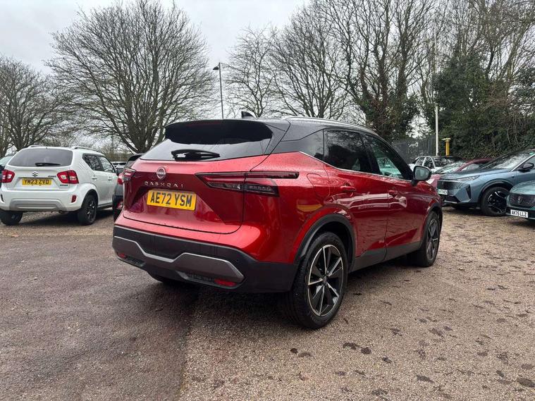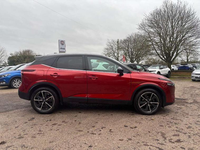 Advanced windscreen head up display, Android auto/Apple CarPlay (Wired), Blind spot warning, Drive modes (sport, normal, eco), Electric speed sensitive power steering, Emergency and breakdown call, Front and rear parking sensors, Full Digital 12.3" TFT Digital Combimeter, Google maps services - search, weather, 3D maps and Google street view, Hands free power tailgate, Idle stop/start system, Intelligent around view monitor, Intelligent Cruise control (ICC), Intelligent driver alert system, Intelligent forward collision warning, Intelligent lane intervention, Lane departure prevention, Lane departure warning system, Lane keep assist, Moving object detection, Nissan connect 12.3 inch touchscreen infotainment system, Nissan connect navigation, ProPilot, Push button starter, Rear cross traffic alert, Rear view camera, Remote control services - door locks, lights, horn and car locator, Telematics - notifications and connectivity services, TomTom live traffic services, Traffic jam pilot, Traffic sign recognition with legal speed adjustment, Trip computer, Virtual personal assistant and firmware over the air capability, Wireless apple carplay, Wireless charging pad, 6 speakers, AM/FM audio system with DAB, Bluetooth audio streaming, Front USB connections (Type-A and Type-C), Rear USB charging only ports (Type-A and Type-C), Auto dimming rear view mirror, Auto rear wiper when reversing, Automatic hazard signal with emergency stop signal, Body colour mirror caps, Body coloured door handles, Bodyside mouldings, Chrome side window finisher, Door handle with button, Electric auto folding door mirrors, Electrically adjustable and heated door mirrors with LED turn indicator, Follow me home headlights, Front and rear LED turning signals, Headlights auto levelling system, Intelligent auto headlights, LED daytime running lights, LED headlights with adaptive driving beam, LED rear lights, One touch front and rear electric windows with remote opening and closing, Partially body coloured bumpers, Privacy glass, Rear bumper with graphite insert, Rear reversing light (bulb lighting), Rear roof spoiler, Rear side wing doors, Rear styling plate, Shark fin antenna, Splash free rain sensing wipers, Super UV and infrared cut glass, Thermaclear heated windscreen, Three blink turn signal, 12v power socket in dashboard and luggage, 2x Rear coat hooks, 3 bench rear seats in 2nd row, 3 rear headrests, 4 folding assist grip, 6 Luggage hooks - 4 on floor, 2 on side, 60/40 split folding rear seat bench, Ambient lighting around centre console, Ambient lighting in front doors, Centre console storage tray, Chrome interior door handles, Cloth/syntech leather monoform upholstery, Dark black/blueish PVC wrapping, Dark headlining, Driver and front passenger sunvisors with illuminated vanity mirrors, Driver seat back pocket, Dual zone automatic climate control with pollen filter, Electrically adjustable driver seat, Electrically adjustable lumbar support for driver, Front and rear door storage, Front centre console and armrest, Front cupholders x 2, Front door with bottle holders, Glovebox with light, Hard trunk cover, Heated front seats, Heated steering wheel, Height adjustable driver's seat, Height adjustable front headrests, Height adjustable passenger seat, Leather steering wheel, Luggage board system, Luggage space lighting, Manual lumbar support on passenger seat, Manually adjustable passenger (slide recline + lifter), Multifunction steering wheel, Passenger seat back pocket, Rear armrest with 2 cupholders, Rear door bottle holders, Single front passenger seat, Soft PVC kneepad, Steering wheel gearshift paddles, Steering wheel switches, Tilt/telescopic adjustable steering wheel, Two rear isofix child seat anchorage points with top tether, Welcome light and doors with console tray ambient lighting, Glass roof pack with roof rails - Qashqai, 3x3 point rear seatbelt pretensioners + load limiters, ABS with EBD and brake assist, Active brake limited slip, Auto hold function, Child locks on rear doors, Curtain and front side, far side airbags, Driver and passenger airbags, Driver, passenger and 2nd row rear seat belt reminder, Electronic parking brake, Front seatbelt pretensioners + load limiters, Height adjustable front seatbelts, Hill start assist, Intelligent blind spot intervention, Intelligent front emergency braking with pedestrian, cyclist recognition and junction assist, Intelligent rear automatic braking, Tyre pressure monitoring system, Vehicle dynamic control, Capless fuel filler, Engine immobiliser, Intelligent Key, Remote central door locking with deadlocking, Thatcham Cat.1 alarm, Interior instrumental panel C finisher, 19" Alloy wheels, Tyre puncture repair kit,