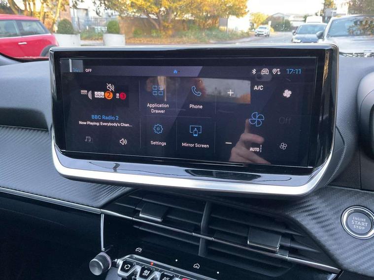 Bluetooth telephone facility, Driver attention warning, E-call, Exterior temperature indicator with ice warning, Front and rear parking sensors, Multi function trip computer, PEUGEOT i-Cockpit with 10" high definition capacitive touchscreen, PEUGEOT i-Cockpit with compact steering wheel, PEUGEOT i-Cockpit with configurable headup instrument panel, PEUGEOT SOS and assistance, Speed limit recognition and recommendation, Wireless mirror screen with mirror link, apple carplay and android auto, Petrol Particulate Filter, 1x USB-C socket in rear and 1x USB-A socket in rear, 2 USB-C ports in the front, 6 speakers radio with mp3 compatible, DAB Radio (Digital Audio Broadcasting), 2 X Rear number plate lights, Automatic hazard light activation upon heavy brake application, Black front wing trim with gloss black detail, Body coloured exterior door handles, Colour coded rear roof spoiler, Colour coded roof, Dark tinted rear side and tailgate windows, Diamond black mirror shells, Eco LED headlights, Electric, heated, and power folding door mirrors, Electrochrome rear view mirror, Front bumper - Daytime running light (DRL) finishers in grained black finish, Front bumper - Meteor grey lower trim, Gloss black finish on B pillar, Gloss black rear cluster connecting strip, Gloss black roof bars, Headlights left on audible warning, LED side indicator lights integrated into door mirrors, LED third brake light, Model designation badges front and rear, One touch electric front/rear windows with pinch protection, Radiator grille - Body coloured top edge trim, Radiator grille - body coloured vertical chequered grille, Rear bumper with gloss black finish, Rear full LED 3D peugeot signature lights with daylight function, Rear reversing lights, Rear side wing doors, Rear windscreen wiper triggered automatically in reverse gear, Reinforcement of the front bumper, Tailgate with heated rear windscreen and wiper blade, Twin chromed exhaust pipes, Wheel arch extensions, 1/3 to 2/3 split folding rear seats, 12V socket, 3 seat bench in 2nd row, Automatic air conditioning with pollen and active carbon filter, Central front armrest with storage compartment, Driver and front passenger comfort seats, Driver seat manual adjustment - height, longitudinal and back rest angle, Electric power steering with reach and rake adjustable steering column, Front LED interior light with 2 reading spotlights and rear interior light with timer, Front passenger seat manual adjustment - height, longitudinal and back rest angle, High centre console with 2 cup holders, Leather steering wheel, Low centre console, Map pockets on front seat backs, Multifunction steering wheel, Piano keys: Gloss black and chrome toggle switches to access main functions of the vehicle and touchscreen functions, Roof lining - Mistral black, Seatbelt unfastened on the move audible and visual alert for front and rear seats, Single front passenger seat, Tri material cloth/leather effect upholstery, Visibility pack - 2008, 2x 2nd row ISOFIX child seat mountings, ABS (Anti-lock Braking System) with EBD (Electronic Brakeforce Distribution) and EBA (Emergency Braking Assistance), Active safety brake with night function/cyclists/pedestrians, Adaptive driver and front passenger airbags with passenger airbag deactivation function, Advanced emergency braking system (AEB) with enhanced camera with the high beam and radar, Child locking functionality on rear doors, Driver/front passenger side airbags, Electric parking brake, ESP (Electronic Stability Program) + Hill Start Assist, Front and rear curtain airbags, Front and rear disc brakes, Front and rear three-point retractable seatbelts, with force limiters, Front optimised safety headrests and rear retractable headrests (x3), height adjustable, Tyre pressure sensor, Automatic door locking when moving off, Deadlocks, Electronic code immobiliser, Thatcham category 1 alarm, Carbon effect Dashboard, front and rear door panel finish, 17" Karakoy diamond cut alloy wheels,
