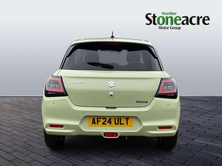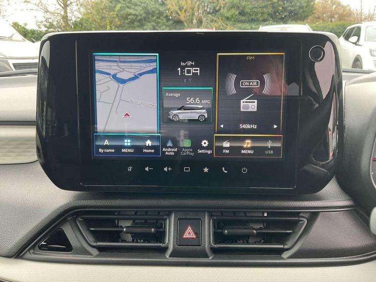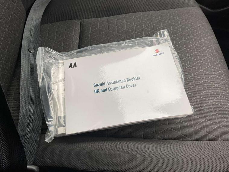 Adaptive cruise control, Automatic start/stop system, Blind spot monitoring, Colour LCD information display, Digital clock, Driver monitoring system, eCall, Fuel consumption display (average/instantaneous) and range display, Intelligent speed control support, Lane departure prevention, Lane departure warning system, Lane keeping assist (LKA), Low fuel level warning light, Navigation system, Outside temperature display, PAS, Rear cross traffic alert, Rear parking camera, Rear parking sensors, Remote fuel cap release, Smartphone integration with Apple CarPlay and Android auto, Suzuki connect, Tailgate, Traffic sign recognition, Weaving alert, 4 speakers + 2 tweeters, 9-inch infotainment display, Auxiliary input socket, Bluetooth audio streaming, DAB Digital radio, Steering wheel audio controls, USB Type A and C, 'Guide me home' headlamps, 1 speed with intermittent rear wiper + washer, 2 speeds front wiper with intermittent + washer, Automatic headlights, Black coloured A & B pillars, Black Upper and lower front grille, Body colour door mirrors and handles, C pillar trim moulding, Electric door mirrors, Electric front windows, Electric rear windows, Green tinted glass, Heated door mirrors, High beam assist, LED daytime running lights, LED High mounted stop light, LED position lamps, LED projector headlamps, LED rear combination lamp, Manual headlamp level control, Rain sensor, Rear fog lights, Rear privacy glass, Rear side wing doors, Rear spoiler, Side spoiler, 1 cup holder in rear, 12V Accessory socket in front console, 2 cup holders in front, 2 Isofix seat anchors, 3 bench rear seats in 2nd row, 3 rear head restraints, 3 spoke leather covered steering wheel, 60/40 split rear seats, Accessory socket, Centre console storage, Centre lower box, Child seat tether anchorages x 2, Chrome handbrake release button, Chrome interior door handles, Cloth upholstery, Door pockets with bottle holder, Driver/passenger sunvisors with ticket holders + vanity mirrors, Front cabin lights, Front headrests, Front map light, Front passenger side assist grip, Glovebox, Heated front seats, Heater, Height adjustable driver's seat, Luggage area lamp, Manual air conditioning with digital control panel, Material door trim ornament, Parcel shelf, Passenger seat back pocket, Pollen filter, Single front passenger seat, Tilt adjustable steering wheel, Tilt/telescopic adjustable steering wheel, 3 point ELR seatbelts for centre seat, 3 point ELR seatbelts front and rear, ABS+EBD+Brake assist, Curtain airbags, Driver airbag, Dual sensor brake support, ESP + traction control, Front and rear seatbelt reminder, Front passenger airbag, Front passenger airbag deactivation, Front seatbelt pretensioners with force limiters, Hill hold control, Rear child proof door locks, Rear seatbelts with pre-tensioners and load limiters, Side airbags with incorporated into front seats, Tyre pressure indicator, Deadlocks, Freewheeling key cylinders, Immobiliser, Keyless entry and start, Light - on and Key in reminder, Locking wheel nuts, Remote central locking, Painted instrument panel ornament, 16" Painted alloy wheels, Emergency flat tyre repair kit,