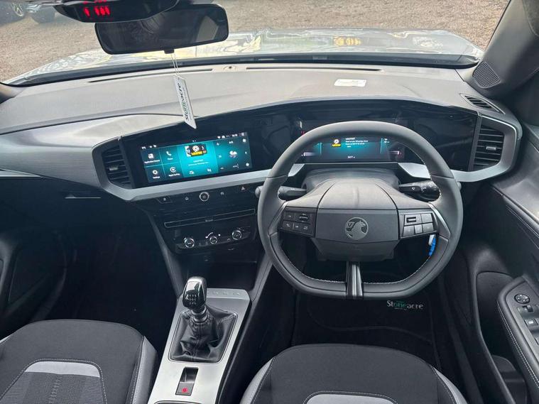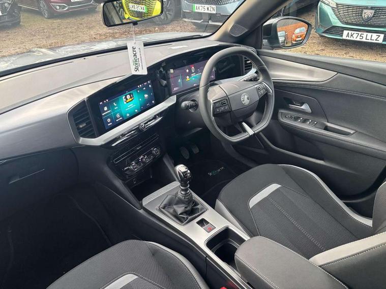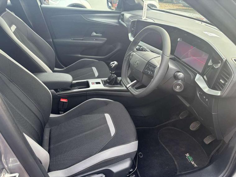 10" digital instrument cluster, Cruise control with intelligent speed limiter, Digital instrumentation with digital speedometer, rev counter, fuel and water temperature gauge, Driver attention alert, Driver drowsiness alert system, Driver information display with multi function trip computer, audio info, digital clock and outside air temperature with ice warning function, Lane keep assist system (LAS) with Lane departure warning system (LDWS), Lights on audible warning, Panoramic rear view camera, Power assisted speed sensitive steering, RDS with traffic programme, Rear parking distance sensors, Speech recognition, Speed sign recognition, Start/stop system, Vauxhall connect with e-Call, WiFi connectivity, Wireless phone projection with Apple CarPlay and Android Auto, Sports chassis, 2 rear USB connection, 6 speakers, AM/FM stereo radio with 36 station presets, DAB Digital radio, Front USB connection, Mobile phone portal - bluetooth connect, vehicle microphone, handsfree calls, SMS read out and reply, phone book access, Multimedia pure panel system with 10" colour touchscreen, Steering wheel mounted controls, Adaptive brake lights, Automatic high beam assist, Automatic lighting control with tunnel detection, Black DLO, Black door mirror housings, Black grained plastic door and wheel arch claddings, Black grained plastic front and rear bumper inserts, Black Griffin logo and vizor frame, Black lettering and emblems, Black upper window moulding, Body colour door handles, Body colour front and rear bumpers, Body colour skid plates, Dark tinted rear side windows, Electrically adjustable and heated door mirrors, Electrically operated front and rear windows with safety auto reverse and one touch up/down facility, Hazard warning lights, Heated rear window+rear wash/wipe, Integrated black tailgate spoiler, Intelli LED headlights, LED 3rd brake light, LED daytime running lights, LED side repeat indicators, LED tail lights, Manual headlamp level control, Rain sensitive windscreen wipers, Rear side wing doors, Reversing light, Shark fin antenna, Solar heat absorbing windscreen and windows, Windscreen and side window demist vents, 12V Accessory socket, 3 seat bench in 2nd row, 4 speed fan with illuminated controls, 6 way adjustable front passenger seat including height adjustment, 60/40 split folding rear seat, Air recirculation system, Ambient lighting, Black headliner, Cabin particulate filter - removes dust, airborne particles and pollen, Centre armrest console, Chrome effect interior door handles, Door pockets with two litre capacity, Driver and passenger sun visors with vanity mirror, Electronic climate control (ECC), Focus cloth/leather upholstery, Four adjustable facia vents, Four load restraint lashing eyes, Front centre armrest with storage, Front driver and co-driver side articulated grab handles, Front head restraints, Front map reading lights, Front seat back storage pockets, Fully carpeted load area, Interior courtesy light, Interior tailgate handle, Luggage compartment cover, Luggage compartment lighting, Reach + rake adjustable steering column, Rear Reading Lamps, Single front passenger seat, Three height adjustable rear seat head restraints, Twin gas assisted tailgate struts, Vegan leather steering wheel, 2x Isofix child seat fitting on outer rear seats, 3x3 point rear seat belts, Anti-lock braking system (ABS), Child proof locks on rear doors, Cornering brake control, Deactivation switch for front passenger front and side impact airbags, Drag torque control, Driver and front passenger airbags, front seat side impact airbags, full size curtain airbags, Electronic brake force distribution, Electronic Stability Programme (ESP), Emergency brake assist, Enhanced automatic emergency braking with pedestrian detection, Forward collision alert at low speed, Hill start assist, Inertia reel lap and diagonal seatbelts for all seats, Manual parking brake, Seatbelt unfastened audible warning and warning light, Straight line stability control, Traction control, Tyre pressure monitoring system, Electronically protected audio equipment, Engine deadlock immobiliser, Freewheeling door locks, Key left in ignition audible warning, Locking wheel nuts, Remote control central locking, Remote control ultrasonic security alarm system, Visible vehicle identification number, Light grey trim inserts on front doors, Vegan door inserts, 18" Black diamond cut alloy wheels,