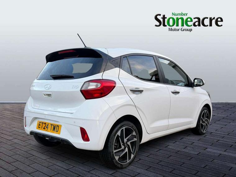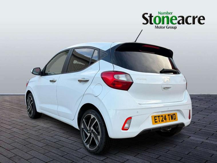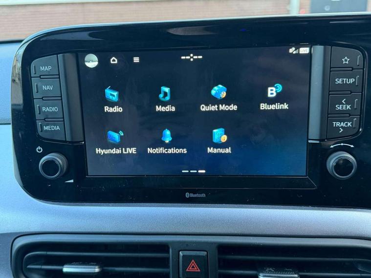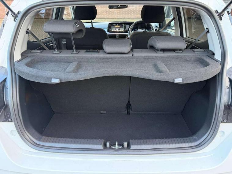 Apple car play/Android Auto, Bluelink mobile remote connectivity, Bluetooth connectivity with voice recognition, Cruise control, Driver attention alert system, eCall emergency call system, Forward Collision-Avoidance Assist (FCA) - Pedestrian/Cyclist, Front USB-C charging and USB-A data, Full-width 4.2" LCD instrument cluster, Intelligent speed limit assist, Lane departure warning system with lane keep assist - LKAS, Lane follow assist, PAS, Rear parking sensors, Rear view camera with guidelines, Roadside assistance, Start/Stop function, Tailgate, Trip computer, Wireless charging pad, 2 front/2 rear speakers, Rear USB-C device charger, Steering wheel audio, phone and cruise controls, 1 speed non intermittent rear windscreen wiper, Black finish on B pillars, Body colour door handles, Body coloured bumpers, Body coloured door mirrors, Electric folding door mirrors, Electric front windows, Electric rear windows, Electrically adjustable and heated door mirrors, Flat metal emblem, Front fog lights, Front grille in glossy black, Front intermittent wipers, Halogen bi-function headlights, Headlights inner with Black Blade design, Heated rear window, High beam assist, Indicator light on door mirrors, LED DRLs diamond mesh design, Privacy glass - Rear windows and tailgate, Rear roof spoiler with integrated LED brake light, Rear side wing doors, 12v power outlet - front, 3 seat bench in 2nd row, 60/40 split folding flat to floor rear seats, Air conditioning, Auto light control, Bottle holders in front/rear doors + front centre console, Cabin and luggage compartment interior lighting, Cloth upholstery, Driver + passenger vanity mirrors, Driver's seat height adjustment, Driver/passenger sunvisors with ticket holders, Floor mats, Front door pockets, Front Head Restraints - Vertical and Horizontal Adjustment, Front LED blue mood lighting, Glove compartment, Heated front seats, Heated steering wheel, Height adjustable steering column, Isofix child seat preparation, Leather multifunction steering wheel, Rear door pockets, Single front passenger seat, Vertical adjustment rear head restraints, 3x3 point rear seatbelts, Airbags - front, front side and curtain airbags, Anti-lock brake system (ABS), Autonomous emergency braking (AEB) with forward collision warning system, Brake assist function, Childproof rear door locks, Electronic stability control, Front and rear seatbelt reminder, Front seatbelt pretensioners, Hill start assist control (HAC), Passenger airbag deactivate switch, Traction control, Tyre pressure monitoring system, Immobiliser, Perimeter alarm, Rear occupant alert, Remote central locking, Second remote key, Smart key with motion sensor, Speed sensitive auto door locking, 16" alloy wheels, Tyre repair kit,