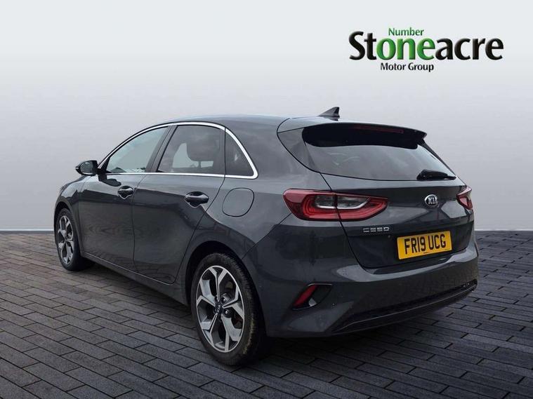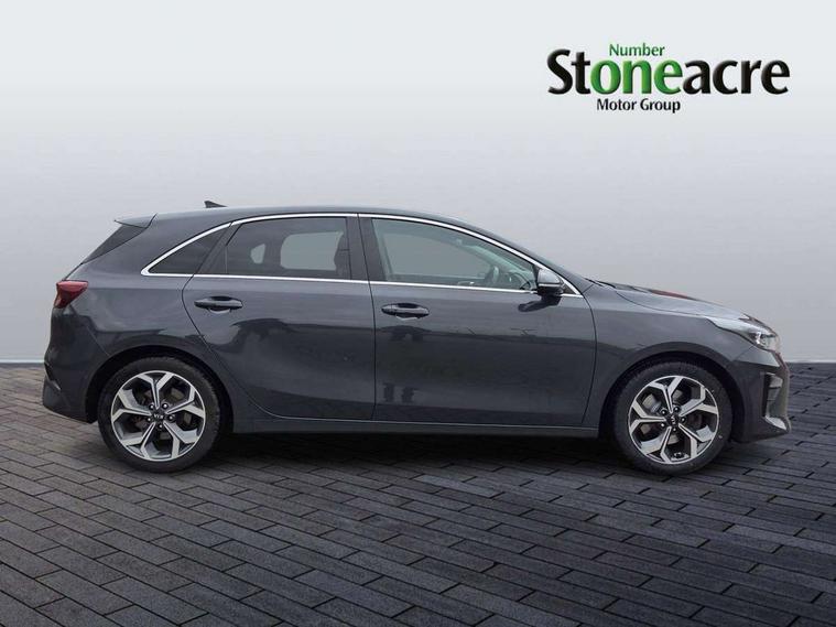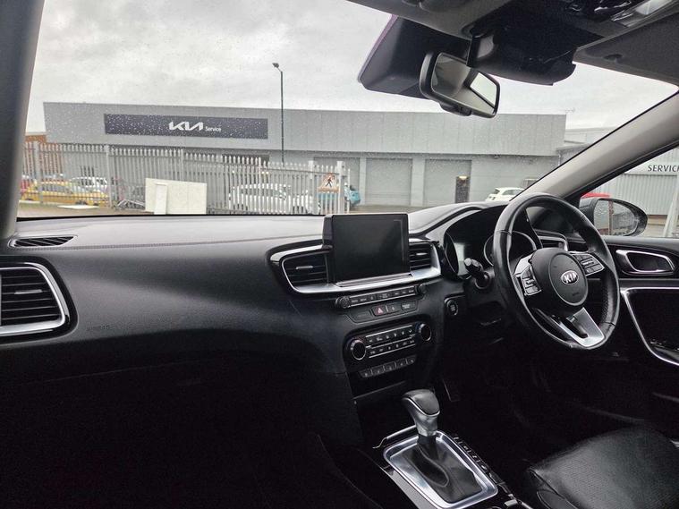 4.2" supervision colour cluster display, 8" touchscreen satellite navigation with European mapping and traffic messaging channel, Apple car play/Android Auto, Blind spot collision warning, Bluetooth with Voice Recognition & Music Streaming, Drive mode selector, Driver attention warning, Emergency stop signalling system, Kia connected services featuring TomTom live, Lane Following Assist (LFA), Lane keep assist, Motor driven power steering, Outside temperature gauge, Reversing camera with dynamic guide lines, Service interval indicator, Smart cruise control with stop and go functionality, Smart park assist system (SPAS) with parallel/perpendicular/reverse with front/rear parking sensors, Speed limit information function (SLIF), Trip computer, Wireless Mobile Phone Charger, Intelligent Stop and Go, DAB Radio with MP3, Illuminated USB & aux ports, JBL Premium sound system with 8 speakers, Steering wheel mounted controls, USB & AUX Ports for Connection of a Media Device, USB Fast Charger in Front Centre Console, All-round Electric Windows with Auto Up & Down Function, Auto dimming rear view mirror, Automatic defog system, Automatic headlights, Body colour bumpers, Body colour door mirrors, Body colour exterior door handles, Chrome window surround, Electric adjustable/heated/folding door mirrors with LED Indicators and Kerbside Lights, Front fog lights, Front wiper de-icer, Heated rear window with timer, High beam assist, High gloss black radiator grille, Illuminated front door handles, LED Bi-Function Headlights with Cornering Lights, LED daytime running lights, LED High-mounted Brake Light, LED rear lights, Metallic paint, Privacy glass (rear side windows and rear screen), Rain sensing front wipers, Rear spoiler, Rear wash/wipe, Tinted glass, Wide panoramic sunroof with tilt/slide function and automatic electric roll blinds, Wide view drivers door mirror, Windscreen Washer Level Warning, 10 way power adjustable drivers seat with memory function, 12V socket in luggage compartment, 3 x passenger assist grips, 60/40 split folding rear seat, All-round height adjustable headrests, Centre Console with Storage Box and Sliding Armrest, Cupholders in rear armrest, Dash illumination dimmer switch, Driver & Front Passenger Sunvisors with Vanity Mirror Illumination & Ticket Holder, Driver + front passenger electric lumbar support, Driver's seat height adjuster, Dual Height Luggage Area Floor, Dual zone automatic air conditioning, Faux leather door trim, Footwell ambient lighting, Front and rear door storage, Front cabin LED map light with sunglasses case, Front Passenger Seat Height Adjuster, Front seat and rear pockets, Headlining in Light grey, Heated front seats, Heated outer rear seats, Heated steering wheel, Interior door lock/unlock function, ISOFIX Child seat top tethers and anchor fixings, Leather handbrake, Leather steering wheel and gearshift, Leather upholstery, Luggage area light, Luggage area parcel shelf, Luggage hooks, Premium centre console with sliding cupholder cover, Rear Air Ventilation, Rear centre armrest, Rear coat hooks, Satin chrome interior door handles, Stainless steel pedals, Tilt/telescopic adjustable steering wheel, Ventilated front seats, Advanced Driver Assistance Pack - Ceed DCT, ABS with Electronic Brakeforce Distribution (EBD) and Brake Assist System (BAS), All round 3-point seatbelts, Dual front side airbags, Dual horn, Electronic stability control (ESC) and vehicle stability management (VSM), Front passenger airbag deactivation, Height adjustable front seatbelts, Hill start assist control (HAC), Impact sensing auto door unlocking, Rear door child safety locks, Seatbelt reminder warning, Traction control, Twin curtain airbags, Twin front airbags, Tyre pressure monitoring system, Alarm system, Engine Immobiliser & Deadlocks, Engine Start/Stop Button with Smart Entry System, Locking wheel nuts, Speed sensitive auto door locking, Black high gloss front console tray garnish & door trim, Satin Chrome Fascia Trim, 17" Alloy wheels, Temporary spare wheel,