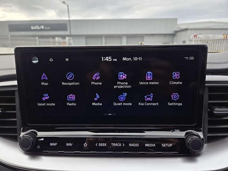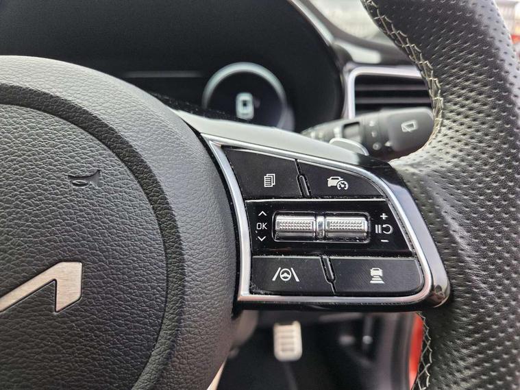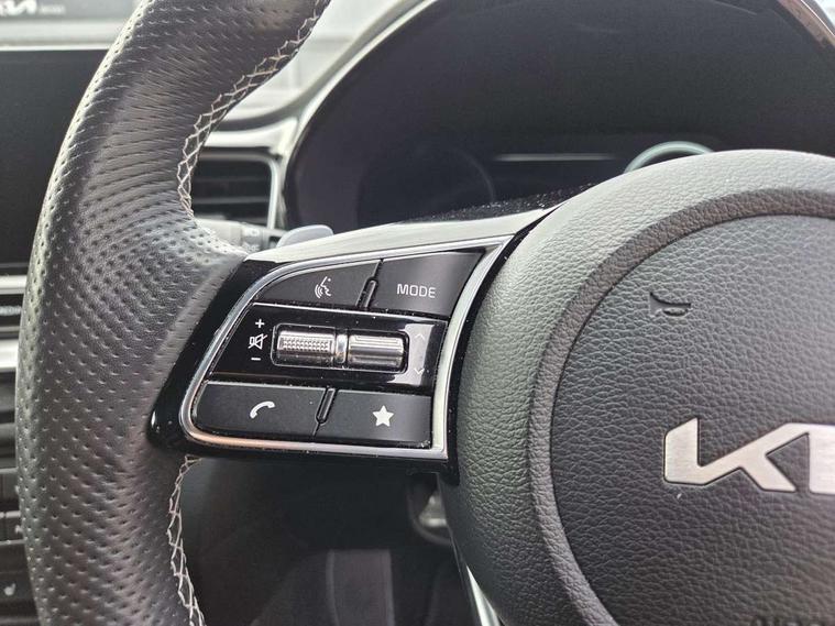 10.25" touchscreen satellite navigation, 12.3" TFT supervision cluster display, Apple car play/Android Auto with voice control, Blind spot Collision Warning (BCW), Bluetooth with Voice Recognition & Music Streaming, Drive mode select (Normal and Sport), Driver Attention Warning (DAW), Driver memory function, Emergency call service, Emergency stop signalling system, Forward Collision-Avoidance Assist (FCA) - City/Pedestrian/Cyclist, Intelligent speed limit warning, Kia connect UVO, Lane Following Assist (LFA), Lane keep assist, Manual speed limit assist, Motor driven power steering, Rear cross-collision assist, Reversing camera system with dynamic guidelines (Integrated into centre fascia screen), Smart cruise control, Smart park assist system (SPAS) with parallel/perpendicular with front/rear parking sensor, Trip computer, Wireless Mobile Phone Charger, Intelligent Stop and Go, DAB Radio with MP3, Illuminated USB ports, JBL Premium sound system with 8 speakers, Steering wheel mounted controls, USB Fast Charger in Front Centre Console, USB port for connection of a media device, All-round Electric Windows with Front Auto Up & Down Function, Auto dimming rear view mirror, Automatic defog system, Automatic headlights control, Body colour bumpers, Body colour exterior door handles, Body coloured and dark chrome rear skid plate, Body coloured side sill mouldings, Dark chrome window surround, Electric adjustable/heated/folding door mirrors with LED Indicators, Heated rear window with timer, High beam assist, High gloss black and dark chrome radiator grille, High gloss black door mirrors, High Gloss Black rear spoiler, LED daytime running lights, LED front fog lights, LED Headlights, LED High-mounted Brake Light, LED honeycomb rear light, LED rear combination lights, Panoramic sunroof with tilt/slide function and automatic electric roll blinds, Privacy glass (rear side windows and tailgate), Rain sensing front wipers, Rear side wing doors, Rear wash/wipe, Satin chrome dual exhaust trim, Tinted glass, Wide view drivers door mirror, Windscreen Washer Level Warning, 1 x Front 12V socket, 12V power socket in luggage compartment, 3 seat bench in 2nd row, 3 x passenger assist grips, 60/40 split folding rear seat, All-round height adjustable headrests, Aluminium pedals, Centre console storage box/armrest, Cupholders in centre console, Cupholders in rear armrest, Dash illumination dimmer switch, Door courtesy lamps, Driver & Front Passenger Sunvisors with Vanity Mirror Illumination & Ticket Holder, Driver + front passenger electric lumbar support, Driver's power seat height adjuster, Dual Height Luggage Area Floor, Dual zone automatic air conditioning, Faux leather door centre trim, Front and rear door storage, Front cabin map light with sunglasses case, Front Passenger Seat Height Adjuster, Front seat back pockets, Heated front seats, Heated rear seats, Heated steering wheel, Interior door lock/unlock function, ISOFIX Child seat top tethers and anchor fixings, Leather D-Cut steering wheel, Leather handbrake, Leather/suede upholstery, Luggage area light, Luggage area parcel shelf, Luggage hooks, Rear centre armrest, Rear coat hooks, Satin chrome interior door handles, Single front passenger seat, Tilt/telescopic adjustable steering wheel, All round 3-point seatbelts, Anti-lock braking system (ABS), Brake assist system, Dual front side airbags, Dual horn, EBD - Electronic brakeforce distribution, Electronic parking brake, Electronic stability control (ESC) and vehicle stability management (VSM), Front passenger airbag cut-off switch, Height adjustable front seatbelts, Hill start assist control (HAC), Impact sensing auto door unlocking, Rear door child safety locks, Seatbelt reminder warning, Twin curtain airbags, Twin front airbags, Tyre pressure monitoring system, Alarm system, Engine Immobiliser & Deadlocks, Engine Start/Stop Button with Smart Entry System, Locking wheel nuts, Speed sensitive auto door locking, Black high gloss front console garnish & door trim, Satin Chrome Fascia Trim, 18" GT-Line S alloy wheels, Tyre mobility kit,