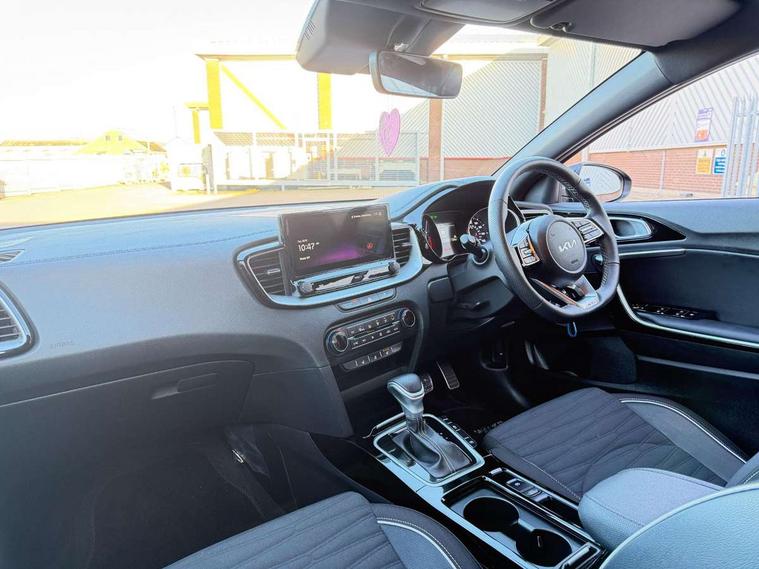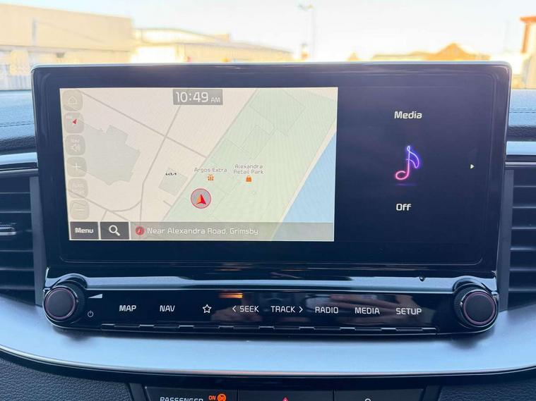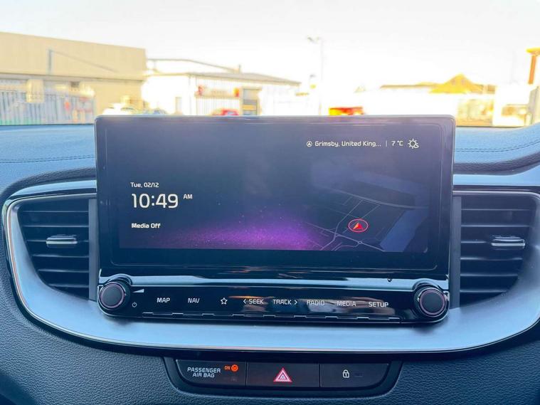 10.25" touchscreen satellite navigation, 4.2" supervision colour cluster display, Apple car play/Android Auto with voice control, Bluetooth with Voice Recognition & Music Streaming, Drive mode select (Normal and Sport), Driver attention warning + (DAW) with leading vehicle departure warning, Emergency call service, Emergency stop signalling system, Forward Collision-Avoidance Assist (FCA) - City/Pedestrian/Cyclist, Kia connect UVO, Lane Following Assist (LFA), Lane keep assist, Manual speed limit assist, Motor driven power steering, Rear parking sensor, Reversing camera system with dynamic guidelines (Integrated into centre fascia screen), Smart cruise control with stop/go functionality, Trip computer, Intelligent Stop and Go, 6 speaker audio system, DAB Radio with MP3, Illuminated USB ports, Steering wheel mounted controls, USB Fast Charger in Front Centre Console, USB type A port, All-round Electric Windows with Front Auto Up & Down Function, Auto dimming rear view mirror, Automatic defog system, Automatic headlights control, Body colour bumpers, Body colour exterior door handles, Body coloured and dark chrome rear skid plate, Body coloured side sill mouldings, Dark chrome window surround, Electric adjustable/heated/folding door mirrors with LED Indicators, Heated rear window with timer, High beam assist, High gloss black and dark chrome radiator grille, High gloss black door mirrors, High Gloss Black rear spoiler - roof, LED daytime running lights, LED front fog lights, LED Headlights, LED High-mounted Brake Light, LED honeycomb rear light, LED rear combination lights, LED rear fog light, Privacy glass (rear side windows and tailgate), Rain sensing front wipers, Rear side wing doors, Rear wash/wipe, Satin chrome dual exhaust trim, Tinted glass, Wide view drivers door mirror, Windscreen Washer Level Warning, 1 x Front 12V socket, 12V power socket in luggage compartment, 3 seat bench in 2nd row, 3 x passenger assist grips, 60/40 split folding rear seat, All-round height adjustable headrests, Aluminium pedals, Black headlining, Centre console storage box/armrest, Cloth/faux leather upholstery, Cupholders in centre console, Cupholders in rear armrest, Dash illumination dimmer switch, Door courtesy lamps, Driver & Front Passenger Sunvisors with Vanity Mirror Illumination & Ticket Holder, Driver + front passenger electric lumbar support, Driver's seat height adjuster, Dual Height Luggage Area Floor, Dual zone automatic air conditioning, Faux leather door centre trim, Front and rear door storage, Front cabin map light with sunglasses case, Front Passenger Seat Height Adjuster, Front seat back pockets, Heated front seats, Heated steering wheel, Interior door lock/unlock function, ISOFIX Child seat top tethers and anchor fixings, Leather D-Cut steering wheel, Leather handbrake, Luggage area light, Luggage area parcel shelf, Luggage hooks, Rear centre armrest, Rear coat hooks, Single front passenger seat, Tilt/telescopic adjustable steering wheel, All round 3-point seatbelts, Anti-lock braking system (ABS), Brake assist system, Dual front side airbags, Dual horn, EBD - Electronic brakeforce distribution, Electronic parking brake, Electronic stability control (ESC) and vehicle stability management (VSM), Front passenger airbag cut-off switch, Height adjustable front seatbelts, Hill start assist control (HAC), Impact sensing auto door unlocking, Rear door child safety locks, Seatbelt reminder warning, Twin curtain airbags, Twin front airbags, Tyre pressure monitoring system, Alarm system, Engine Immobiliser & Deadlocks, Locking wheel nuts, Remote central door locking with fold away key, Speed sensitive auto door locking, Satin Chrome Fascia Trim, 17" GT-Line alloy wheels, Tyre mobility kit,