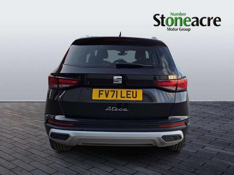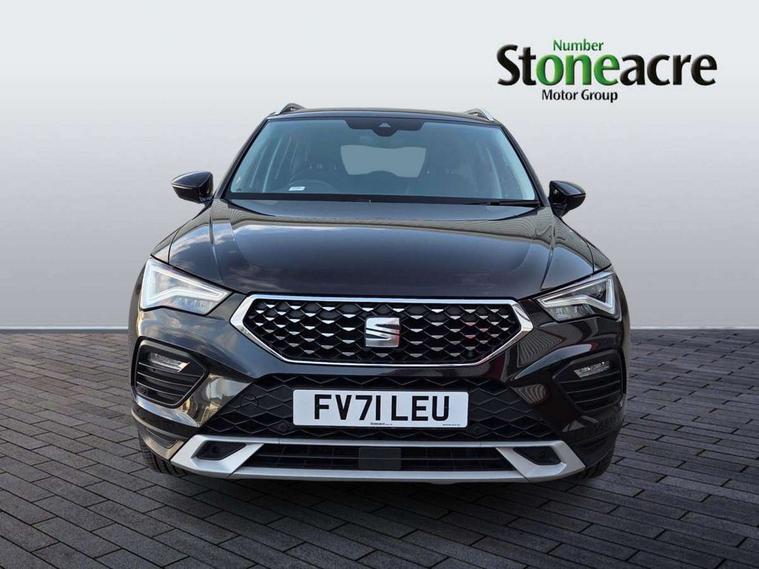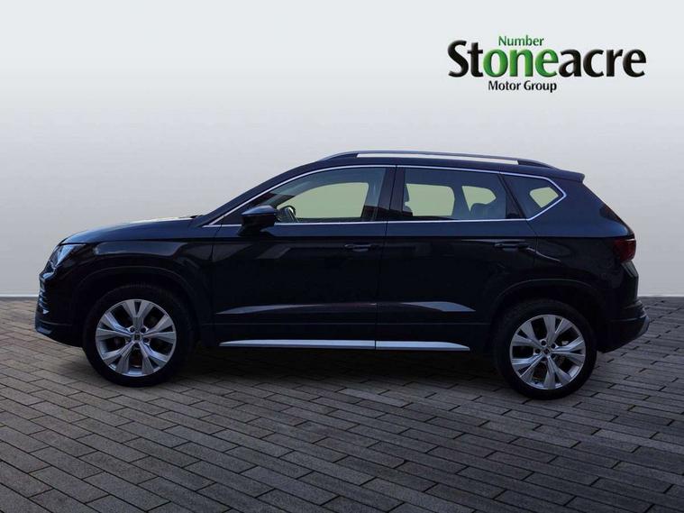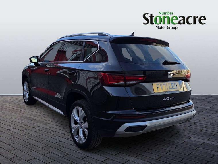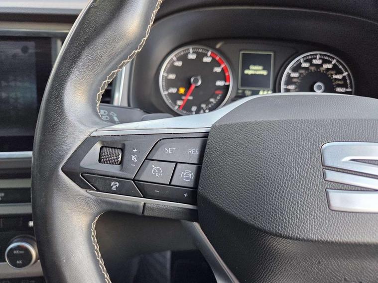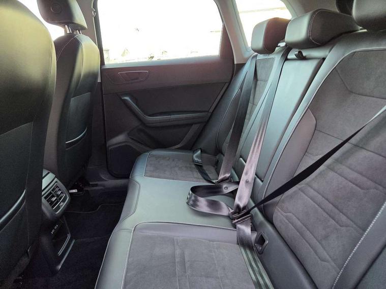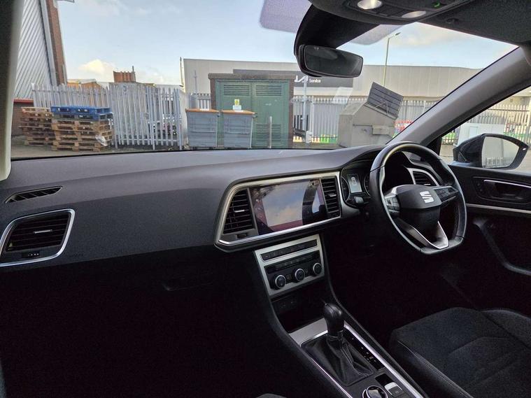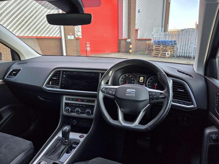 E-call, Outside temperature gauge, Progressive power assisted steering, Rear view camera, SEAT drive profile with driving experience button - Normal, Sport, Eco and Individual mode, gearshift, steering and throttle response, Self parking functionality (includes front and rear parking sensors), Trip computer, Wireless full link smartphone integration, Wireless phone charger, Steering wheel mounted audio/phone controls, Black simulated exhaust pipes, Body colour bumpers, Body coloured wheel arch surrounds, Chrome front grille frame, Chrome roof rails, Chrome side window trim, Dark tinted rear windows, Daytime running lights, Door mirrors with welcome light silhouette, Dynamic headlight range control with self adjusting whilst driving, Electric adjustable/heated/folding door mirrors, Front and rear electric windows, Front grille hot stamping, Full LED headlamps with lens and LED front fog lamps with cornering function, Heated windscreen, Illuminated aluminium front door sill, LED rear tail lights with dynamic indicators, Rear fog lights, Rear side wing doors, Rear wash/wipe, Reflex silver side mouldings, Third brake light, 12v socket in front, 3 seat bench in 2nd row, 60/40 split folding rear seat, Dual zone climate control, Front and rear head restraints, Front centre armrest, Front seat back storage pockets, Height adjustable driver and passenger seat with lumbar adjustment, ISOFIX points in outer rear seats with top tether anchorage points, Leather steering wheel and gear knob, Microsuede upholstery with front comfort seats, Rear armrest and easy back seat release mechanism from boot, Single front passenger seat, Steering wheel mounted gearshift paddles, Storage compartment under driver's seat, Convenience pack - Ateca, Interior lighting pack - Ateca, Navigation system pack with DAB - Ateca, Safe and driving pack - Ateca, 3x3 point rear seatbelts, ABS, Traction control system (TCS), Electronic stability control (ESC) and Electronic differential lock system (XDS), Airbags - Driver and front passenger airbag with deactivation, front side, two curtain and driver's knee airbags, Electric parking brake with auto hold function, Front and rear seatbelt reminder, Hill hold control, Manual rear child locks, Tiredness recognition system, Traction control, Tyre pressure monitoring system, Alarm, Keyless entry, Locking wheel bolts, Chrome interior detailing, 18" Brillaint silver alloy wheels,