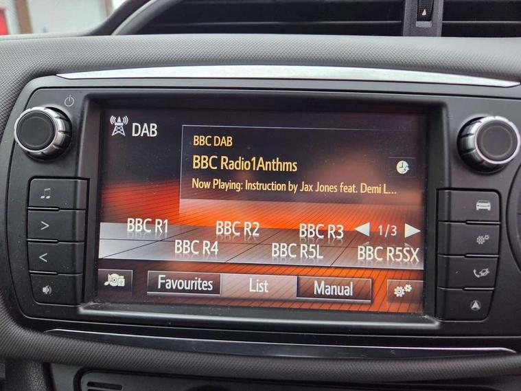 Bluetooth system, Cruise control, Electric boot release, External temperature gauge, Fuel indicator with low level warning, Lights on warning, Rear view camera, Remote fuel flap release, Speed sensitive power steering, Tachometer, Trip computer, 6 speakers, Auxiliary input socket, DAB Digital radio, MP3 player, Radio, Steering wheel mounted audio controls, Touch screen audio system, USB connection, 2 speed front wipers + intermittent wipe, Body colour heated door mirrors, Chrome fog light surround, Chrome grille surround, Colour keyed bumpers, Colour keyed door handles, Drivers window one touch up/down, Electric front windows, Electrically adjustable door mirrors, Follow me home headlights, Front fog lights, Green tinted glass, Headlamp levelling, Heated rear windscreen, LED daytime running lights, LED rear lights, Privacy glass, Projector headlamps, Rear spoiler, Rear wiper, 12V Accessory socket, 60/40 split folding rear seat, Boot light, Clean air filter, Driver seat height adjust, Driver's glovebox with lid, Driver/passenger vanity mirrors with covers, Front cupholders x 2, Front map reading lights, Front seats with lumbar support, Gioco cloth upholstery, Height adjustable front head restraints, Height adjustable rear seat head restraints (x3), Interior silver door handles, Isofix system on outer rear seats, Leather gear knob, Leather steering wheel, Rear cupholder, Removable rear parcel shelf, Tilt/telescopic steering column, 3 point seatbelts on all rear seats, ABS+EBD+Brake assist, Collapsible pedal support, Curtain airbags, Door open warning, Driver and passenger airbags, Drivers knee airbag, Front side airbags, Height adjustable front seatbelts with pre-tensioners and load limiters, Passenger airbag deactivate switch, Rear child proof door locks, Seatbelt warning lamp and buzzer, Tyre pressure monitoring system, Vehicle stability control VSC + traction control, Ventilated front disc brakes, Engine immobiliser, Remote central locking, Instrument panel in grey, 16" Machined alloy wheels, Space saver spare wheel,