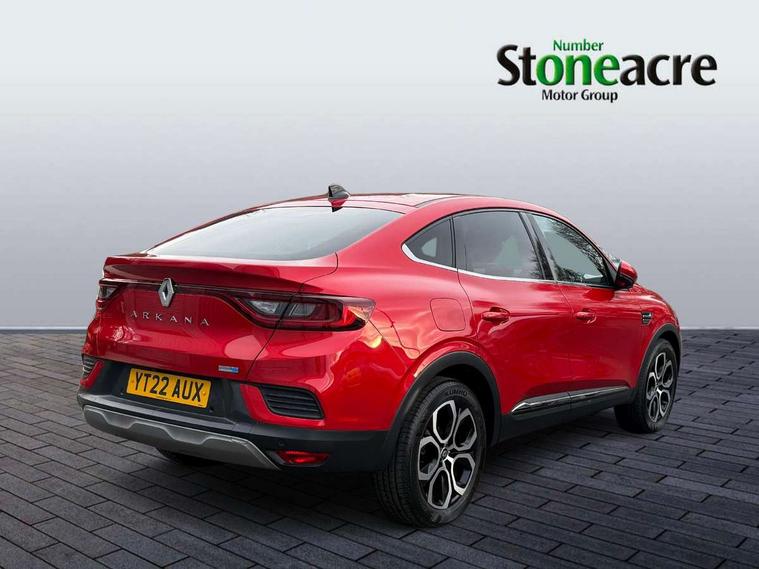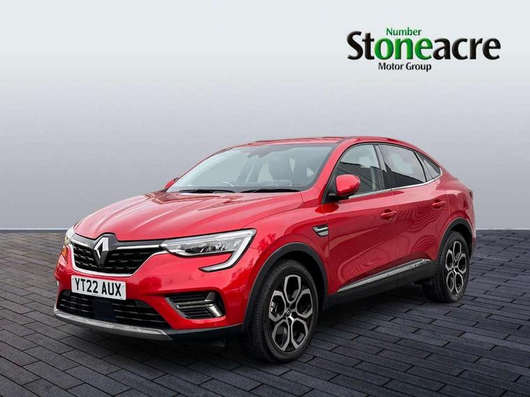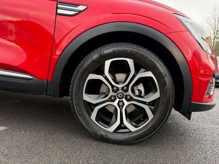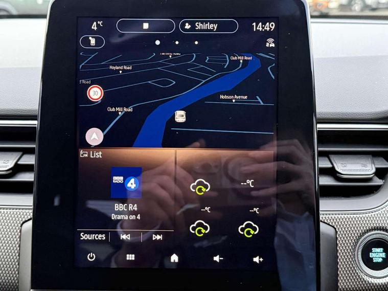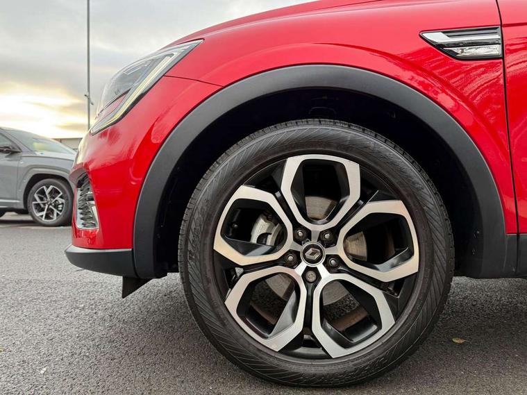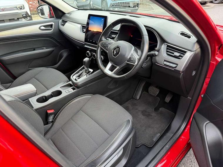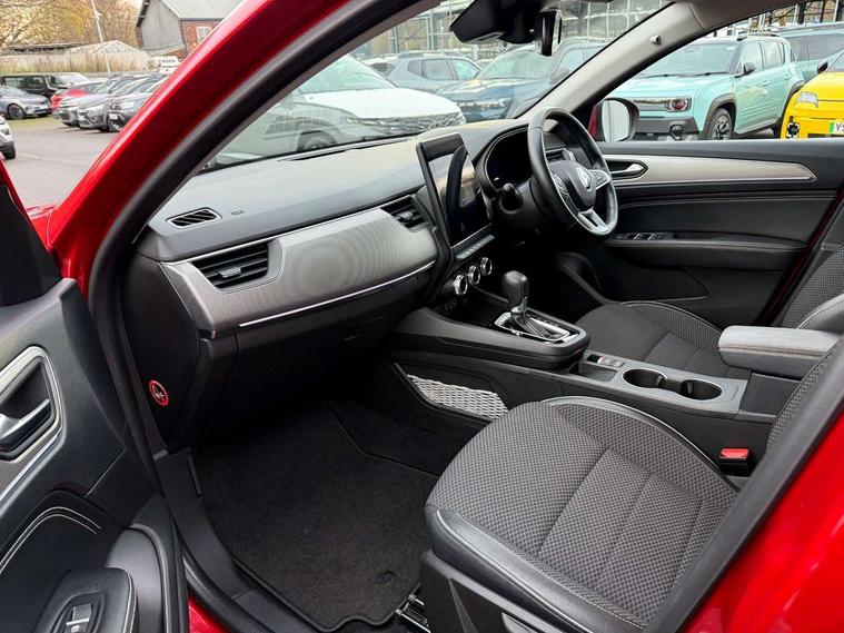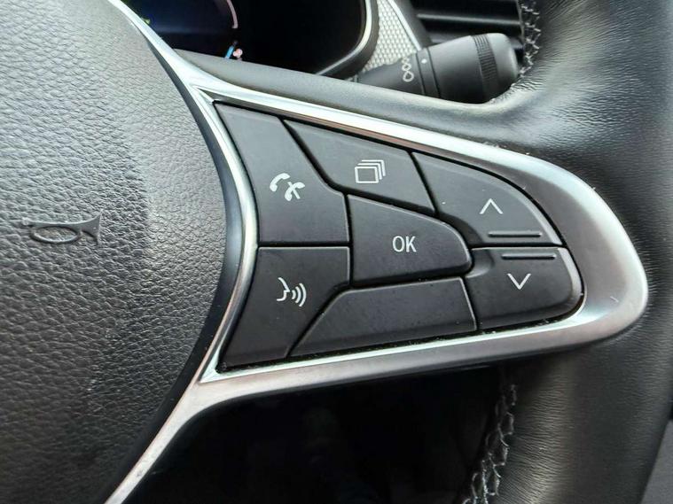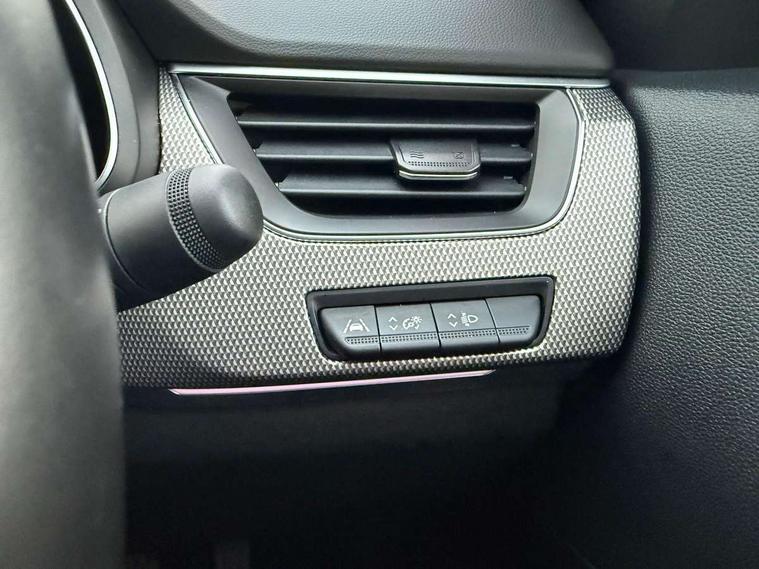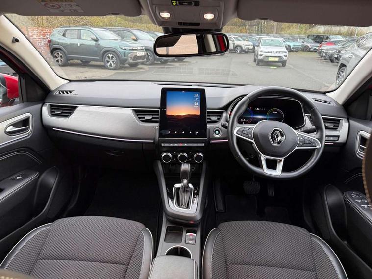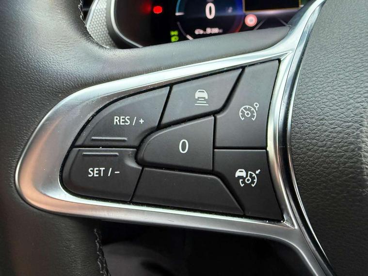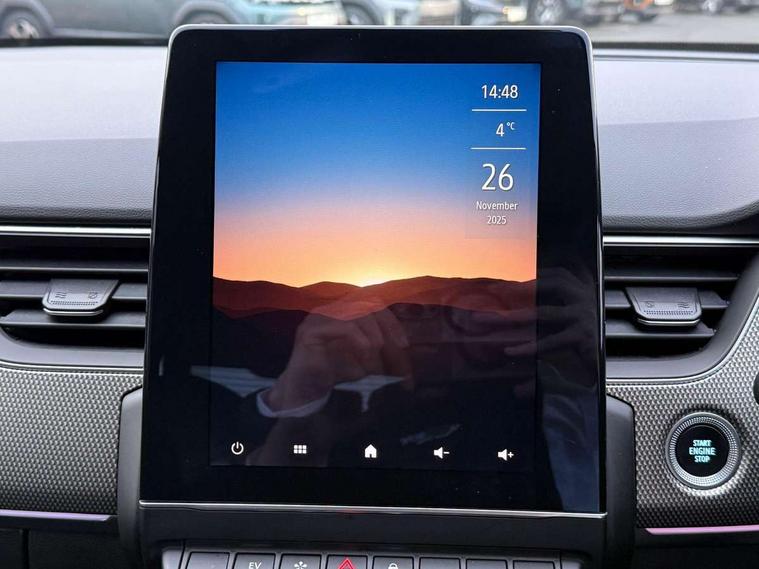 7" TFT Driver information display, Blind spot warning, Bluetooth system, EASY LINK 9.3" portrait touchscreen with navigation, Google search and traffic information, eCall emergency call system, Eco mode, EV button to activate pure mode, Front and rear parking sensors, Gear change indicator, Lane departure warning, Lane keep assist, Multi-sense - 3 driving modes and 8 ambient lighting, Rear cross traffic alert, Rear view camera, Renault automatic emergency assist, Smartphone integration compatible with Apple CarPlay and Android Auto, Traffic sign recognition with over speed prevention, Trip computer, Variable assistance electric power steering, Arkamys classic sound system with 6 speakers, DAB radio, USB port, 3rd brake light, Auto dimming rear view mirror, Automatic headlights, Automatic high / low beam, Automatic windscreen wipers with rain sensor, Black side door protection with chrome insert, Body coloured bumpers, C-shaped LED front signature lighting, Chrome decopart on wing (fender molding), Chrome window lower lining, Extra tinted rear windows and tailgate, Front and rear electric windows, Front driver window with one touch facility and anti-pinch function, Front grille with chrome on upper part, Full LED headlights, Grey front and rear skid plates, Heated rear window, Rain sensor, Rear windscreen wiper, Shiny black shark fin antenna, Side mirrors adjustable electrically, electrically foldable, with defrosting and temperature sensor, automatically foldable at vehicle closure, 3 seat bench in 2nd row, 60:40 split and fixed base rear seats, Automatic climate control with combined filter, humidity sensor and AQS, Central console with storage, Front and rear head restraints, Height and reach adjustable steering wheel, ISOFIX child seat fixing points on rear outermost seats, Leather steering wheel, LED front and rear roof lights, Rear air vents, Single front passenger seat, 3x3 point rear seat belts, ABS+EBA, Active emergency braking system, B Brake Mode - One pedal driving with increased regenerative braking, Distance warning alert, Driver airbag, Driver and passenger front and side airbag deactivation, Driver and passenger side airbags, Driver height adjustable seat belt, Electronic parking brake with auto hold, ESC (Electronic Stability Control), Front and rear no seatbelt warning sound, Front curtain airbags, Front head airbags, Hill start assist, Passenger airbag, Tyre pressure warning light, Anti drill door locks and locking fuel cap, Central door locking, Deadlocking system, Hands free keycard with Keyless access and start, RAID (Renault Anti-Intruder Device) automatic door locking, Rear side wing door and window child locking function (front driver door control panel), Superlocking, Thatcham alarm, 18" Pasadena diamond cut alloy wheels with grey inserts,