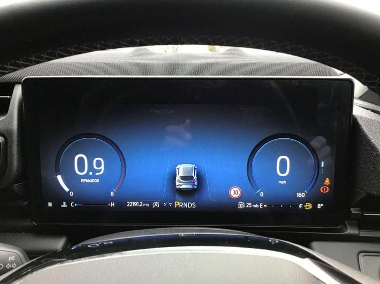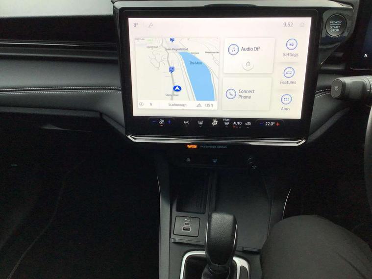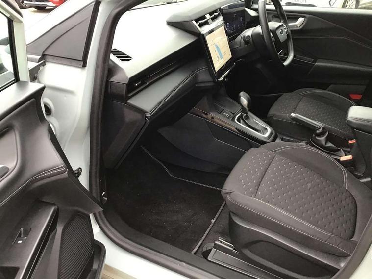 Driver impairment monitor, Emergency call service, Ford easy fuel, Full digital 12.8" instrument cluster, Lane keeping aid with lane departure warning, Power assist steering, Selectable drive modes(Normal, Eco, Sport, Slippery and Trail), Speed sign recognition, Standard suspension, 12" landscape touchscreen display with wireless apple car play and android auto 6 speaker audio system, Ford pass connect and emergency assistance, Ford SYNC4 with connected navigation, Automatic headlights with rain sensing wipers and auto high beam, Front fog lamps, LED daytime running lights, LED rear lamps, LED third brake light, Quickclear heated windscreen, Rear privacy glass, Rear side wing doors, Rear wiper, 3 seat bench in 2nd row, Centre console with armrest and stowage, Electronic automatic temperature control (EATC), Ford megabox extended bootspace, Front and rear head restraints, Front floor mats, Manual 4 way driver seat adjust with lumbar adjustment, Single front passenger seat, Titanium cloth upholstery, 3 rear seatbelts, Child safety lock, Electronic stability control (ESC) and hill start assist, Pre-collision assist with autonomous emergency braking, pedestrian/cyclist detection & post-collision braking, Tyre pressure monitoring system (TPMS), Thatcham alarm, 17" Absolute black machined finish alloy wheel,