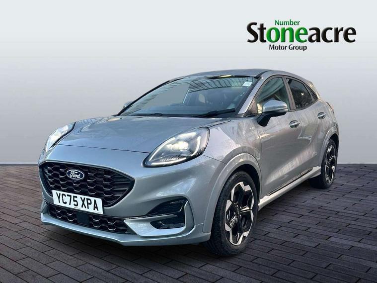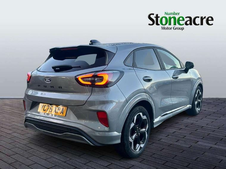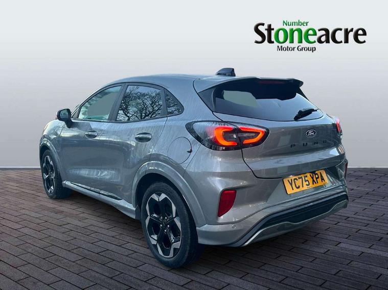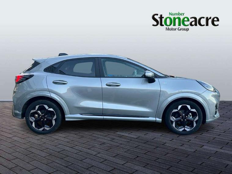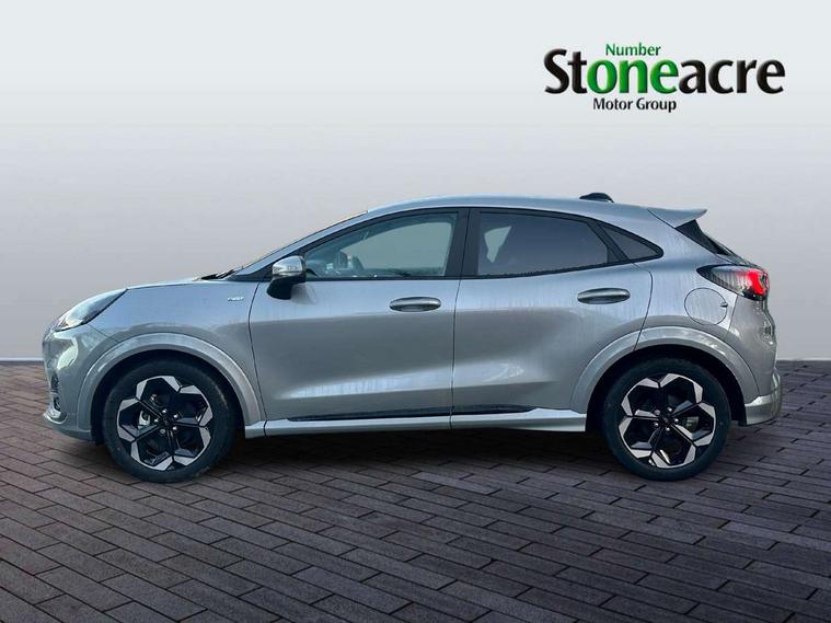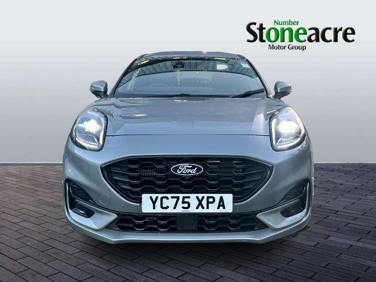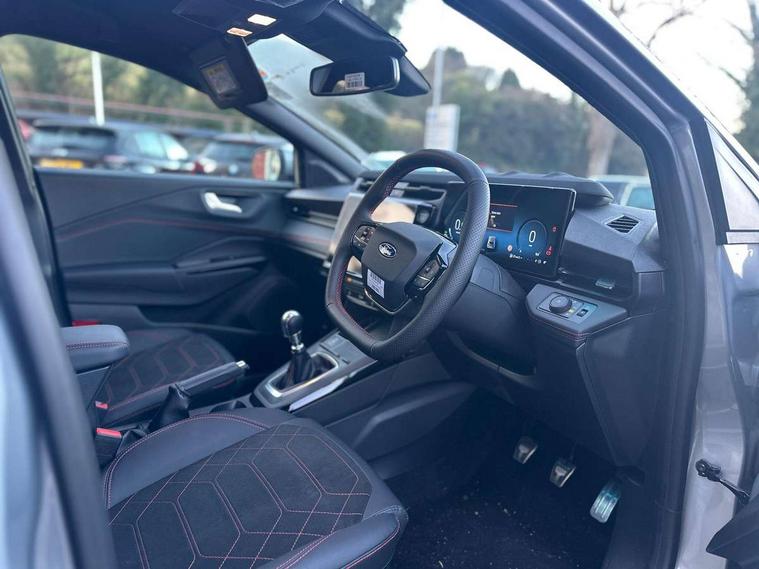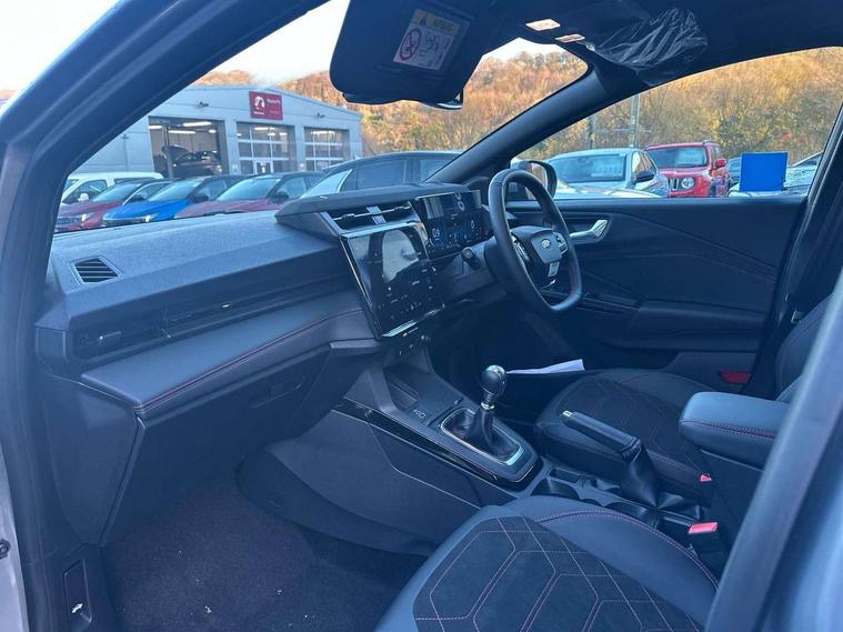 Driver impairment monitor, Emergency call service, Ford easy fuel, Full digital 12.8" instrument cluster, Lane keeping aid with lane departure warning, Power assist steering, Selectable drive modes(Normal, Eco, Sport, Slippery and Trail), Speed sign recognition, Sport suspension, 12" landscape touchscreen display with wireless apple car play and android auto premium B&O audio system with 10 speakers, Ford pass connect and emergency assistance, Ford SYNC4 with connected navigation, Automatic headlights with rain sensing wipers and auto high beam, Front fog lamps, LED daytime running lights, LED rear lamps, LED third brake light, Power foldable heated door mirrors with puddle lamps and puma logo protection, Quickclear heated windscreen, Rear privacy glass, Rear side wing doors, Rear wiper, ST-Line X body styling kit, 3 seat bench in 2nd row, 4 way lumbar support for passenger seat, Centre console with armrest and stowage, Electronic automatic temperature control (EATC), Ford megabox extended bootspace, Front and rear head restraints, Front floor mats, Manual 4 way driver seat adjust with lumbar adjustment, Single front passenger seat, ST-Line X Premium synthetic leather upholstery, Comfort pack with power lift tailgate - Puma, 3 rear seatbelts, Child safety lock, Electronic stability control (ESC) and hill start assist, Pre-collision assist with autonomous emergency braking, pedestrian/cyclist detection & post-collision braking, Tyre pressure monitoring system (TPMS), Thatcham alarm,