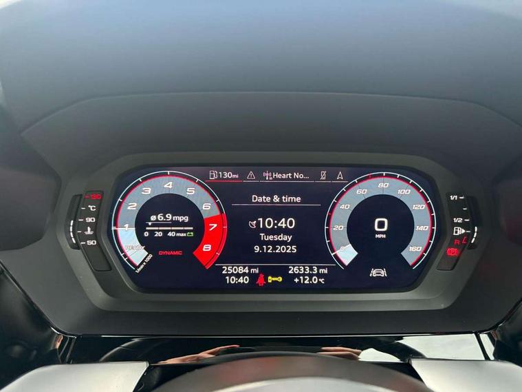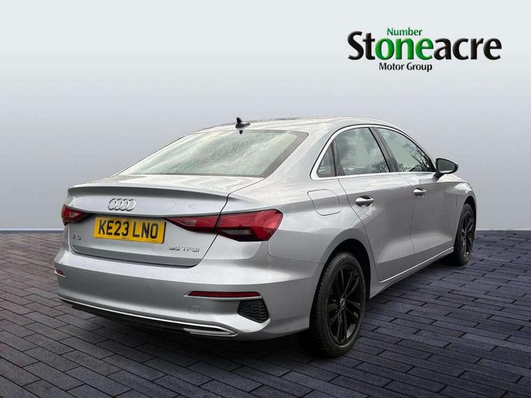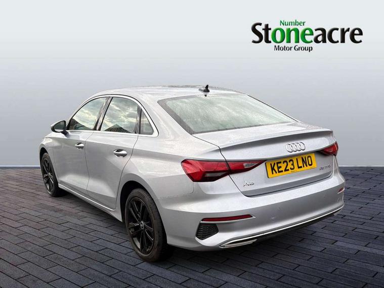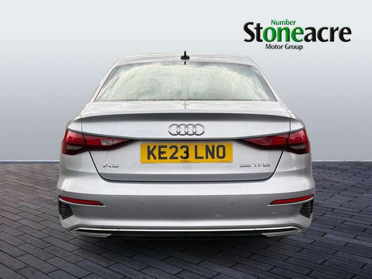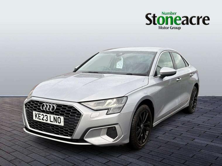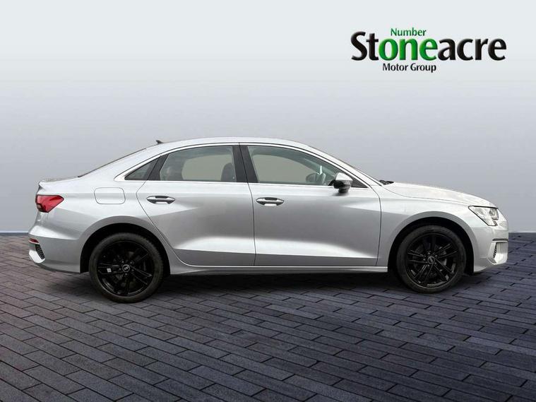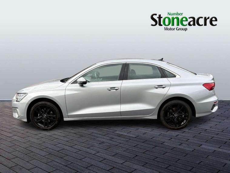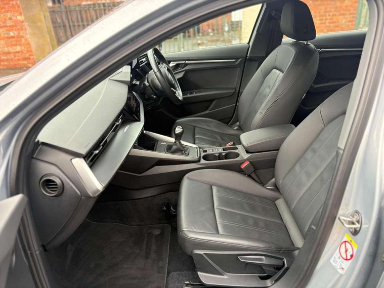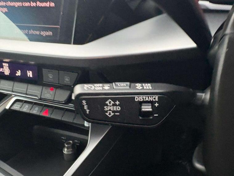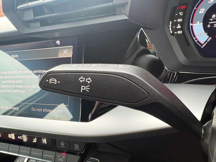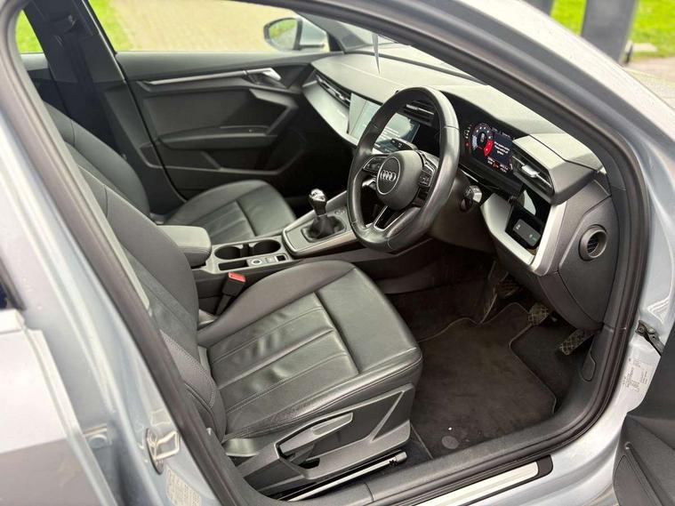Audi connect emergency call and service, Audi drive select (Auto, Comfort, Dynamic, Efficiency and Individual), Audi smartphone interface, Audi Virtual Cockpit - 10.25" digital and colour instrument cluster, Automatic start/stop system with recuperation, Bluetooth interface, Camera based traffic sign recognition, Collision avoidance assistant, Cruise control + speed limiter, Electromechanical power speed sensitive steering, Lane departure warning system, MMI Navigation Plus with high resolution 10.1" colour touch screen display, Rear parking sensors, Service indicator, Voice control system with natural language interaction, Standard suspension, 2x USB Type C ports (for charging and data transfer), 6 passive loudspeakers, CD player, DAB Digital radio, 3rd brake light, Acoustic glass windscreen, Aluminium window trim, Auto dimming frameless rear view mirror, Body colour exterior mirrors, Body colour roof spoiler, Electrically adjustable/heated/folding/auto dimming door mirrors with integrated LED indications + kerb view function for passenger side, Front electric windows, LED daytime running lights, LED headlights and halogen rear lights, Light and rain sensors, Model and engine designation badges at rear, Rear boot, Rear electric windows, Rear side wing doors, Rear window, rear door windows and rear side windows in clear glass, 12V socket and storage compartment in front centre console, 3 seat bench in 2nd row, 3 spoke leather multifunction steering wheel, 4 way electrically adjustable lumbar support for driver and front passenger, 60/40 split folding rear seat bench, Dual zone electronic climate control, Front and rear headrests, Front centre armrest, Front door sill trims with aluminium inlay, Front/rear floor mats, Height and reach adjustable steering wheel, Interior lighting - Front and rear roof module including reading lights, glove compartment light and right hand side, Interior lighting - glove compartment light and right hand side, Luggage compartment floor covering, Manual boot compartment lid, Manually adjustable front seats, Routine cloth upholstery with front sports seats, Seat side bolsters, Single front passenger seat, Steel grey cloth headlining, Aluminium interior elements pack - A3, LED interior lighting pack - A3 Saloon, Sport styling pack - A3 Saloon, 3x3 point rear seat belts, Driver and front passenger airbag with passenger airbag deactivation, Electronic Stabilisation Control (ESC) including ABS, ASR and EDL, First aid kit with warning triangle and 2 safety vests, Front side airbags with head airbags and interaction airbag, Pre-sense front with pedestrian and cyclist detection, Seatbelt monitoring, Tyre pressure loss indicator, Anti theft alarm, Anti-theft wheel bolts, Electronically operated child locks, Immobiliser, Remote control central locking, Aluminium air vent surrounds, Inlays with silk effect paint in platinum grey,