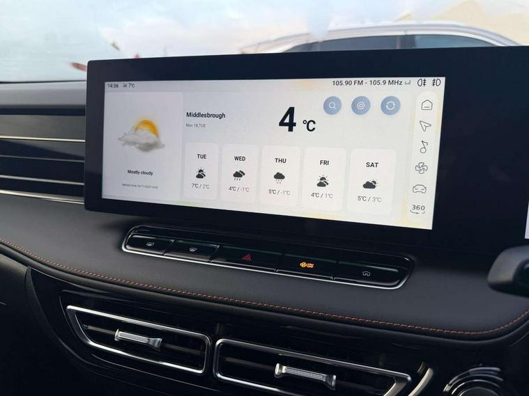 Driver attention alert, 12.3" colour touchscreen, 12.3" Virtual driver information display, 360 degree parking camera, Adaptive cruise control, Android Auto, Apple CarPlay, Blind spot detection, Bluetooth connectivity, Emergency call service, Forward collision warning, Front parking sensors, Intelligent speed limit assist, iSmart, Lane change assist, Lane keep assist system (LAS) with Lane departure warning system (LDWS), Live services, PAS, Power tailgate, Rear cross traffic alert, Rear parking sensors, Satellite navigation system, Traffic jam assist, Trip computer, Wireless charging, 4 USB ports 2 front and 2 rear, 8 Speaker audio system, DAB audio, Auto dimming rear view mirror, Automatic headlights, Electric adjustable/heated/folding door mirrors with memory, Follow me home headlights, Front and rear aero wiper, Front and rear electric windows with one-touch up/down, Front fog lights, Intelligent high beam, LED 3rd brake light, LED daytime running lights, LED Headlights, LED rear lights, Rain sensing wipers, Rear privacy glass, Rear side wing doors, Silver roof rails, Vehicle to Load, 12V power sockets, 2nd row 60/40 split fold seat, 3 rear headrests, 3 seat bench in 2nd row, 3 stage heated front seats, 4 way electric adjustable passenger seat, 6 way electric adjustable drivers seat with lumbar adjustment and memory function with easy access, Dual zone automatic air conditioning, Front and rear reading lights, Front centre sliding armrest with storage compartment, Front headrests, Height and reach adjustable steering wheel, ISOFIX restraints on outer rear seats x2, Multi function steering wheel, Single passenger seat, 3x3 point rear seatbelts, ABS/EBD, Active emergency braking with pedestrian/Bicycle detection, Anti rolling protection, Door open warning, Drivers seatbelt reminder, Dual front airbags, Electric parking brake with auto hold function, ESP, Front and rear passenger seat belt reminder, Front centre airbag, Front passenger airbag deactivation switch, Front seat belt height adjuster, Front seatbelts (3-point + pretensioner + load limiter), Front side airbags, Hill descent control, Hill launch assist, Manual rear child locks, Rear outer seatbelt pretensioner and load limiter, Side curtain airbags, Tyre pressure monitoring system, Alarm system and engine immobiliser, Keyless entry and push button start system, Remote central locking, Speed sensing door locks, 19" Blade diamond cut alloy wheels, Tyre repair kit,