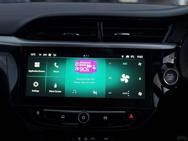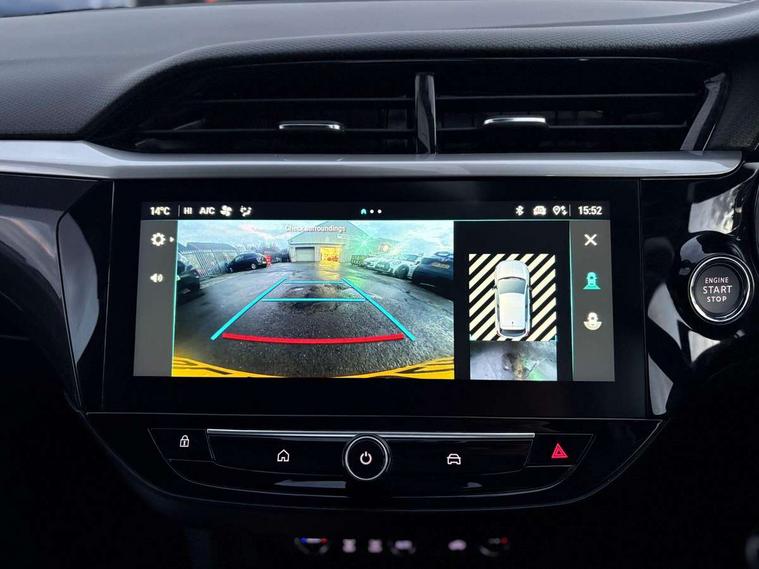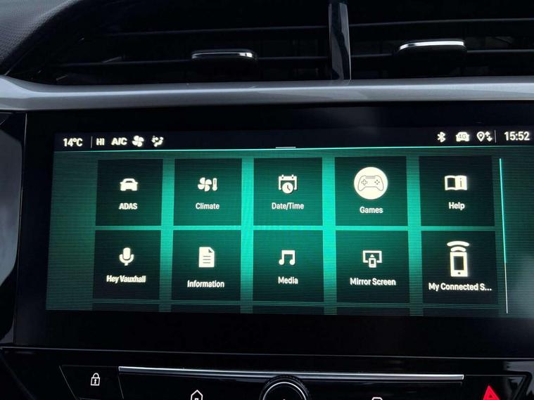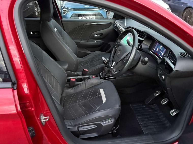180 degree panoramic rear view camera, 7 inch digital instrument cluster display, Auto tele unit 3S vehicle communication system, Bluetooth connectivity, Central facia display with digital clock, outside air temperature and audio information, Cruise control with intelligent speed limiter, Driver drowsiness alert system, E-call, Engine oil life indicator, Enhanced traffic sign recognition, Front and rear parking sensors, Front camera system, Infotainment remote controls right side of steering wheel, telephone buttons on left side, Instrumentation - Speedometer, rev counter, low fuel gauge warning light + water temperature gauge warning light, shift up/down indicate light, Lane departure warning with lane assist, Lights on audible warning, Multi function trip computer - Trip odometer, vehicle range, average speed and fuel economy, instantaneous fuel economy and driving time, Natural voice control, RDS with traffic programme, Satellite navigation system, Service indicator, Side blind spot alert, Speed sensitive power steering, Speed sign recognition, Sport drive mode selector, Sports switch, Start/stop system, Vauxhall connect box, Voice recognition, Wireless Apple CarPlay/Android Auto, Wireless charger, Electronic returnless fuel system, Petrol Particulate Filter, Under body shield for aero, AM/FM stereo radio, Bluetooth A2DP audio streaming, DAB Digital radio, Multimedia Navi with 10-inch touchscreen, Rear USB port, Six speakers, Steering wheel audio, phone and cruise controls, USB type C port, 3rd brake light, Automatic headlamp levelling, Automatic headlight control system, Black DLO, Black door mirror housings, Black Griffin logo and vizor frame, Black lower side window mouldings, Body colour door handles, Body colour front and rear bumpers, Bonnet/headlight/wiper structure, Corsa lettering in tailgate, Dark tinted rear side windows + tailgate window, Electrically adjustable and heated door mirrors, Electrically folding door mirrors, Electrically operated front and rear windows with safety auto reverse and one touch up/down facility, Electrochromic automatic anti-dazzle rear view mirror, Glazed tailgate and heated rear window with wash/wipe facility, Hazard warning lights, Headlamps for left side traffic, High beam assist, High gloss black finish B pillar, IntelliLux Matrix LED Headlights, LED daytime running lights, LED fog lights, LED tail lamp, Rain sensitive windscreen wipers, Rear fog lamp, Rear reversing lights, Rear side wing doors, Rear wiper, Shark fin aerial, Solar heat absorbing windscreen and windows, Sports front and rear body styling for upper and lower bumper design, Two speed windscreen wipers with variable intermittent wipe, Ultimate badge and sill plate, Windscreen and side window demist vents, 12V power sockets, 3 bench rear seats in 2nd row, 3 spoke flat bottomed leather effect steering wheel with satin chrome effect bezel, 4 speed fan with illuminated controls, 6 way manual adjustable co-driver seat height up/down, reach fore/aft, backrest upright/recline, 6 way manual adjustable driver seat with massage function height up/down, reach fore/aft, backrest upright/recline, 60/40 split folding rear seat, Alcantara seat trim, Alloy effect sport pedals, Black headliner, Cabin particulate filter - removes dust, airborne particles and pollen, Comfort front seats, Driver's seat lumbar support, Driver/passenger sunvisors with vanity mirrors + covers, Electronic climate control (ECC), Four adjustable facia vents, Front centre armrest with storage, Front cupholder, Front headrests, Front map reading lights, Front seatback storage pockets, Heated front seats + heated steering wheel, Height adjustable head restraints, Illuminated glovebox with lid, Illuminated load compartment trunk, Interior courtesy light, Internal chrome door handles, Jet black door panels on door trim, Jet black side bolsters and surrounds, LED ambient lighting, LED boot light, Luggage compartment lighting, Mistral fabric side bolsters and surrounds, Polyurethane gear knob/lever, Reach and rake adjustable steering column, Rear headrests, Right hand drive (RHD), Single dome lamp with dual front reading lamps, Single front passenger seat, Two litre open door pockets, 3 rear 3 point seatbelts, Anti-lock braking system (ABS), Cornering brake control, Deactivation switch for front passenger's airbag, Drag torque control, EBD - Electronic brakeforce distribution, Electrical child lock system in rear door latch, Electronic parking brake, Electronic Stability Programme (ESP), Emergency brake assist, Enhanced automatic emergency braking with pedestrian detection, Forward collision alert, Front seatbelt unfastened audible warning and warning light, Hill hold and start system, Inertia reel lap and diagonal seatbelts for all seats, ISOFIX child seat mountings incorporating top tether anchor points located on second row rear seats, Seatbelt pretensioners, Single tone horn, Six airbags - Driver's dual stage airbag/front passenger's dual stage airbag/front seat side impact airbags/full size curtain airbags, Straight line stability control, Traction control, Tyre deflation detection system, Tyre pressure monitoring system, 2 keys one folding with integral remote, Electronically protected audio equipment, Engine deadlock and immobiliser, Freewheeling door locks, Keyless entry and start, Locking wheel nuts, Remote control central locking, Remote control central locking activation switch on driver door, Remote control security alarm system, Remote locking fuel filler flap, Steering column lock, Visible vehicle identification number, Silent black facia with liquid palladium insert, 17" Diamond-cut hi-gloss black alloy wheels,