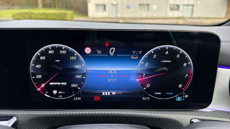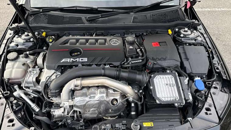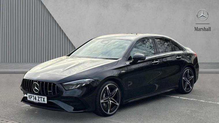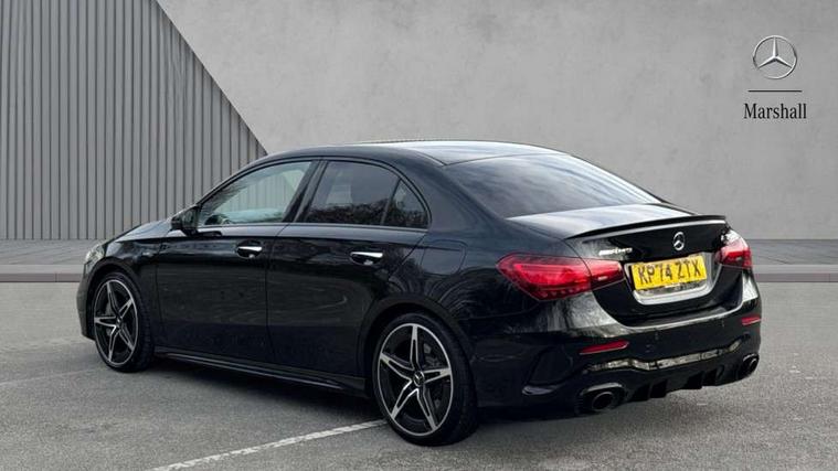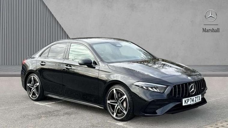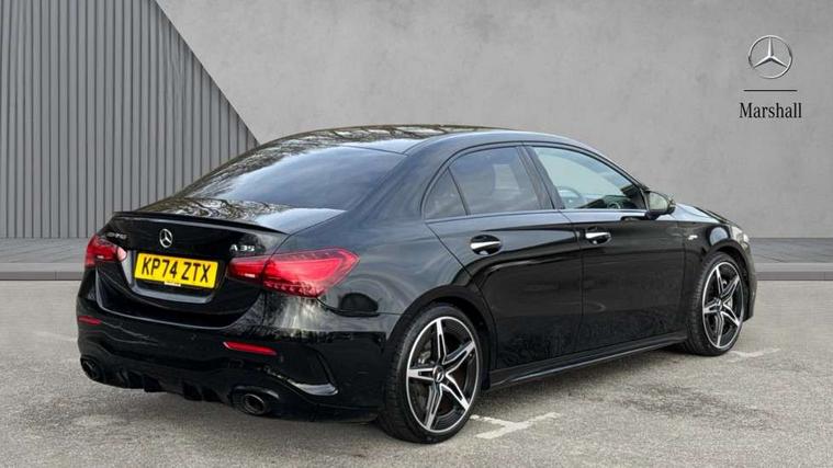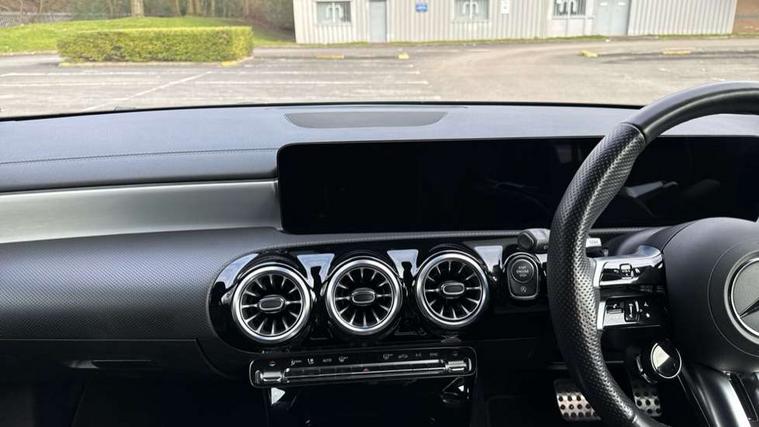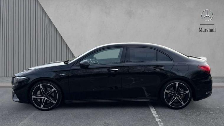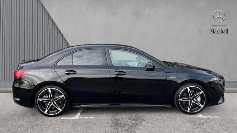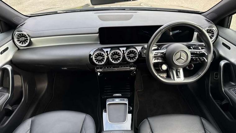10.25 inch touchscreen central media display, 10.25" Digital instrument cluster display screen, Attention assist, Blind spot assist, Brake pad wear indicator warning light, Car wash mode, Cruise control + speed limiter, Direct steering, Direction indicators with lane change function, Dual bluetooth interfaces, DYNAMIC SELECT with driving programs (Slippery, Comfort, Sport, Sport+ and Individual), ECO start/stop function, Engine start/stop button, Fingerprint scanner, Fluid level warning indicator for fuel, oil, coolant and washer fluid, Fluorescent jacket for driver, Hard-disk navigation, Hey Mercedes Voice activation, Lamp failure indicator, Lane keeping system, MBUX augmented reality for navigation, Mercedes me connect including emergency call system, accident recovery, breakdown and maintenance management, Mercedes me remote services, Outside temperature gauge, Owners manual in English, Pre-installation of private car share, Preinstallation for Mercedes Benz link, Remote boot closing, Service indicator (ASSYST), Smartphone integration with Apple CarPlay and Android auto, Speed limit assist, Speed sensitive power steering, Trip computer in multifunction display with current consumption indicator, Wireless charging, AMG suspension, DAB Digital radio, MBUX multimedia system, Mercedes Benz sound system (100 W) with 6 speakers, 4 Electric Front and Rear windows, Adaptive brake lights, AMG body styling - AMG front apron with front splitter and AMG rear apron and visible exhaust tailpipe trim elements, AMG Front apron with flics as air deflector elements on the outer air intakes, AMG radiator grille with twin blade lamella and AMG Lettering, AMG Rear apron with specific diffuser look with four vertical fins and two round chrome plated tailpipe trim elements with a diameter of 90 mm, AMG spoiler lip on roof, Beltline strips in High gloss Black, Body colour bumpers, Body colour door handles with chrome inserts, Body colour side skirt, Electric adjustable and heated door mirrors with integrated LED side indicators, Front splitter and trim elements on the louvres in the outer air inlets, Front wings wheel arches with TURBO 4MATIC lettering, Headlamp assist automatic headlamp activation, Heat insulating dark tinted rear and rear side windows, Heated glass rear windscreen + timer control, LED High Performance headlamps including integral LED daytime running lamps and adaptive highbeam assist, LED tail lamp, Privacy glass, Radio aerial, Rain sensing windscreen wipers with two sensitivity settings, Rear boot, Rear fog lights, Rear side wing doors, Third brake light featuring LED technology, Wider wheel arches for AMG wheels, Window line trim strip in black, 3 seat bench in 2nd row, 4 way lumbar support, 40:20:40 split folding rear seats, Air conditioning - Two zone thermotronic luxury automatic climate control with display, AMG floor mats, AMG Performance steering wheel in nappa leather, Automatic child seat recognition sensor, Black air vents with surround in silver chrome, Black roof lining, Brushed stainless steel sports pedals with rubber studs, Front centre armrest with stowage, Front door sills with AMG lettering, Front seat backs luggage nets, Front sports seats with adjustable head restraints, Heated front seats, Height/reach adjustable steering column, Interior lighting - 64 colour Ambient lighting, Interior mirror with reading lamps in black and frameless, Rear armrest with 2 cupholders, Seat occupancy sensor for front passenger seat, Silver coloured aluminium gear shift paddles on steering wheel, Single front passenger seat, Stowage compartment in centre console with retractable cover, Sunvisors with illuminated vanity mirrors, Twin front cupholders, AMG night pack - A Class, Keyless go comfort pack - A Class, Light and sight package - A Class, Mirror package - A Class, Parking pack with 180 degree view - A Class, Seat comfort pack - A Class, USB pack plus - A Class, 3 rear 3 point seatbelts, ABS with Brake Assist, Active bonnet, Active brake assist includes forward collision warning system with autonomous braking, Adaptive brake assist with hold function and hill start assist, Black seatbelts, Bonnet with power domes, Childproof locks manually operated for rear doors and electrically operated for rear power windows, Crash responsive emergency lighting, Driver and passenger head and side airbags, Drivers knee airbag, Dual stage driver/passenger airbags, Electronic parking brake, ESP curve dynamic assist, ESP with ASR, Front and rear seatbelt reminder, Front brake calipers with AMG lettering, ISOFIX and top tether child seat fixing points in two outer rear seats, Tyre pressure monitoring system, Warning triangle and first aid kit, Window airbags, Alarm system/interior protection/immobiliser, Guard 360 degree vehicle protection, Remote central locking and crash sensor with emergency opening function, Light longitudinal grain aluminium trim, 19" AMG 5 twin spoke light alloy wheels aerodynamically optimised painted in matt black with high sheen finish, Summer tyres, Tirefit sealant kit,