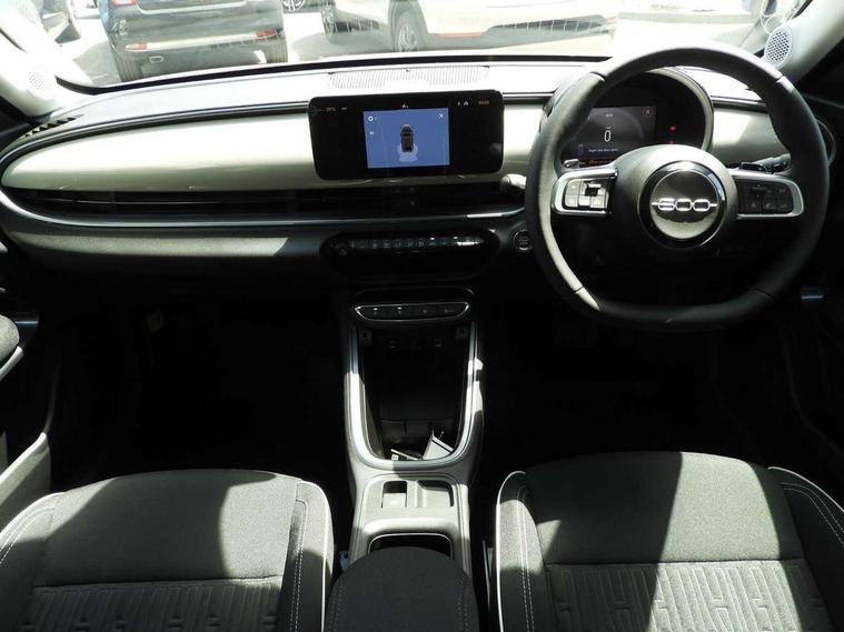 7" TFT digital cluster, Bluetooth connectivity, BSRF connectivity box, Connected services, Cruise control, Drowsy driver detection, Emergency E-call assist, Engine emission level default, GSR II step 1, Intelligent speed assist, Lane keeping assistant (LKA), Odometer, Power assist steering, Rain and dusk sensors, Rear parking sensors, Traffic sign recognition, Wireless apple car play/android Auto, Without drive mode selector, L2-AGM 12V battery, 1st Row USB type-A and USB type-C, 4 speaker audio system, Radio, Uconnect infotainment 10.25" touchscreen with DAB, All power windows express Up/Down, Auto dimming frameless rear view mirror, Automatic headlights, Body coloured door handles, Chrome day light openings, Electric adjustable door mirrors, Exterior chrome accents, Front and rear Chromed 600 logo, Gloss black finish B pillar, Gloss black shark fin antenna, Glossy black door mirrors, Heated windscreen wiper blade area, LED 3rd brake light, LED daytime running lights, LED Fog lamps with cornering function, LED front signature lighting, LED front turn indicators and position lights, LED rear lights, LED rear signature lighting, LED reflector headlamps, Matt black side skirts with 600 chromed logo, Rear bumper embossed 600 logo, Rear roof spoiler, Rear side wing doors, Rear wiper, 2 Spoke synthetic leather steering wheel with audio control, 3 rear headrests, 3 seat bench in 2nd row, 4 way manually adjustable passenger seat, 6 way manually adjustable drivers seat, Auxilliary 12V power socket, Body colour dashboard fascia, Chrome interior door handles, Dark metachrome dashboard ring, English handbook, Front centre armrest, Front headrests, Front passenger grab handle, Front seatback pockets, ISOFIX attachment on front passenger and rear passenger seats, Manual climate control, Metachrome central compartment bezel, Monogram fabric upholstery, Paddle shifts, Partial body cover for shipment, Predisposal for accessory upgrade to default tunnel pad cover (dedicated prnd bezel), Rear seat 40/60 split, Single front passenger seat, Smart 15L storage central tunnel with tunnel pad cover, Sunvisor label ciao Fiat, Sunvisors with vanity mirrors, 3x3 point rear seatbelts, 6 airbags, ABS, Autonomous Emergency Brake (AEB) & Vulnerable Road User (VRU) Protection, Child locks on rear doors, Electronic parking brake with auto hold, ESC (Electronic Stability Control), Front passenger airbag deactivation, Seatbelt reminder and pretensioners for all seats, Anti-theft volumetric alarm, Anti-theft wheel bolts, Keyless Go, 17" Diamond cut alloy wheels, Fix and go puncture repair kit,