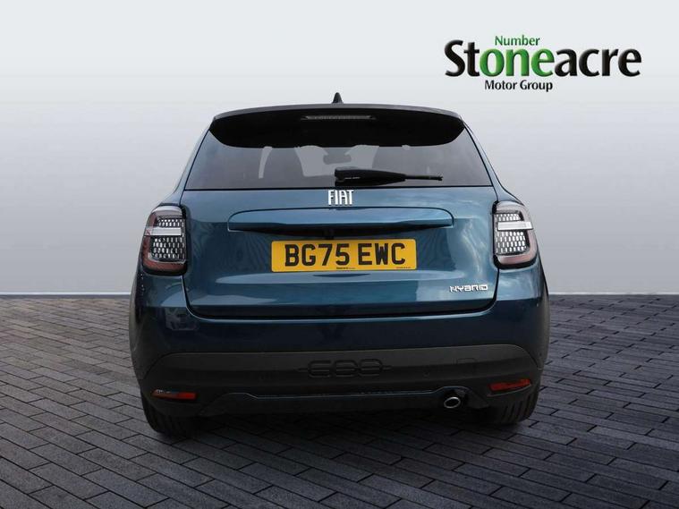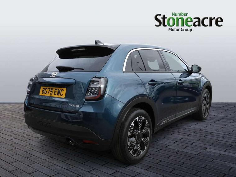 360 degree parking sensors with 180 degree rear view camera, 7" TFT digital cluster, Autonomous driving level 2: Adaptive cruise control with stop & go and lane centering, Blind spot detection, Bluetooth connectivity, BSRF connectivity box, Connected services, Drowsy driver detection, Emergency E-call assist, Engine emission level default, GSR II step 1, Hands free power liftgate, Intelligent speed assist, Lane keeping assistant (LKA), Odometer, Power assist steering, Rain and dusk sensors, Semi-automatic parking with Visiopark 1 system, Traffic sign recognition, Wireless apple car play/android Auto, Wireless charging pad for smartphones, Without drive mode selector, L2-AGM 12V battery, 1st Row USB type-A and USB type-C, 2nd Row USB type-C, 6 speaker audio system, Radio, Uconnect infotainment 10.25" touchscreen with integrated navigation system and DAB, All power windows express Up/Down, Auto dimming frameless rear view mirror, Automatic headlights, Automatic high/low beam, Body coloured door handles, Chrome day light openings, Chromed exhaust tip, Electric adjustable/heated/folding door mirrors, Exterior chrome accents, Front and rear Chromed 600 logo, Gloss black finish B pillar, Gloss black shark fin antenna, Glossy black door mirrors, Heated windscreen wiper blade area, LED 3rd brake light, LED daytime running lights, LED Fog lamps with cornering function, LED front signature lighting, LED front turn indicators and position lights, LED rear lights, LED rear signature lighting, LED reflector headlamps, Matt black side skirts with 600 chromed logo, Privacy glass, Puddle lights, Rear bumper embossed 600 logo, Rear roof spoiler, Rear side wing doors, Rear wiper, 2 Spoke synthetic leather steering wheel with audio control, 3 rear headrests, 3 seat bench in 2nd row, 6 way manually adjustable front passenger seat, 6 way power adjustable driver seat with lumbar support and massage function, Adjustable trunk floor, Automatic climate control, Auxilliary 12V power socket, Cargo flex fit, Chrome interior door handles, Dark metachrome dashboard ring, English handbook, Front centre armrest, Front headrests, Front passenger grab handle, Front seatback pockets, Heated front seats, ISOFIX attachment on front passenger and rear passenger seats, Matt Ivory painted dashboard fascia, Metachrome central compartment bezel, Monogram Synthetic leather upholstery, Paddle shifts, Partial body cover for shipment, Predisposal for accessory upgrade to default tunnel pad cover (dedicated prnd bezel), Rear seat 40/60 split, Single front passenger seat, Smart 15L storage central tunnel with La prima tunnel pad cover, Sunvisor label ciao Fiat, Sunvisors with vanity mirrors, Velour floor mats, 3x3 point rear seatbelts, 6 airbags, ABS, Autonomous Emergency Brake (AEB) & Vulnerable Road User (VRU) Protection, Child locks on rear doors, Electronic parking brake with auto hold, ESC (Electronic Stability Control), Front passenger airbag deactivation, Seatbelt reminder and pretensioners for all seats, Anti-theft volumetric alarm, Anti-theft wheel bolts, Passive entry and keyless go, 18" Diamond cut alloy wheels, Fix and go puncture repair kit,