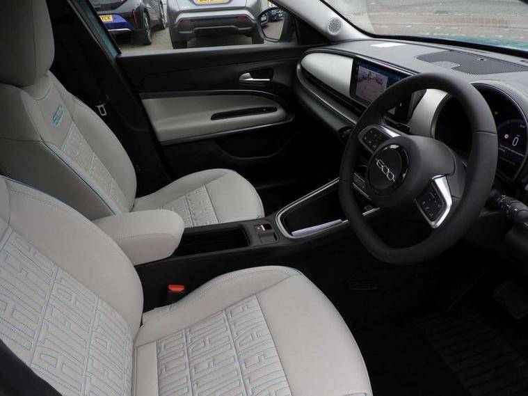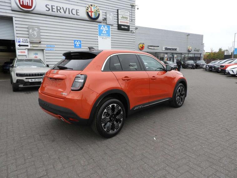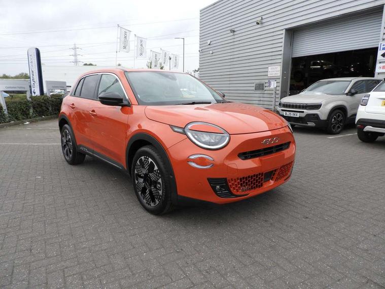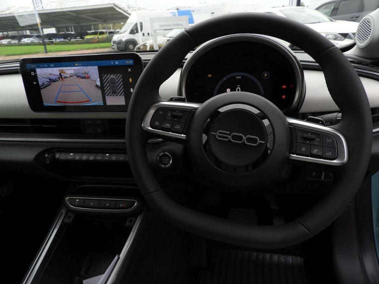 360 degree parking sensors with 180 degree rear view camera, 7" TFT digital cluster, Autonomous driving level 2: Adaptive cruise control with stop & go and lane centering, Blind spot detection, Bluetooth connectivity, BSRF connectivity box, Connected services, Drowsy driver detection, Emergency E-call assist, Engine emission level default, GSR II step 1, Hands free power liftgate, Intelligent speed assist, Lane keeping assistant (LKA), Odometer, Power assist steering, Rain and dusk sensors, Semi-automatic parking with Visiopark 1 system, Traffic sign recognition, Wireless apple car play/android Auto, Wireless charging pad for smartphones, Without drive mode selector, L2-AGM 12V battery, 1st Row USB type-A and USB type-C, 2nd Row USB type-C, 6 speaker audio system, Radio, Uconnect infotainment 10.25" touchscreen with integrated navigation system and DAB, All power windows express Up/Down, Auto dimming frameless rear view mirror, Automatic headlights, Automatic high/low beam, Body coloured door handles, Chrome day light openings, Chromed exhaust tip, Electric adjustable/heated/folding door mirrors, Exterior chrome accents, Front and rear Chromed 600 logo, Gloss black finish B pillar, Gloss black shark fin antenna, Glossy black door mirrors, Heated windscreen wiper blade area, LED 3rd brake light, LED daytime running lights, LED Fog lamps with cornering function, LED front signature lighting, LED front turn indicators and position lights, LED rear lights, LED rear signature lighting, LED reflector headlamps, Matt black side skirts with 600 chromed logo, Privacy glass, Puddle lights, Rear bumper embossed 600 logo, Rear roof spoiler, Rear side wing doors, Rear wiper, 2 Spoke synthetic leather steering wheel with audio control, 3 rear headrests, 3 seat bench in 2nd row, 6 way manually adjustable front passenger seat, 6 way power adjustable driver seat with lumbar support and massage function, Adjustable trunk floor, Automatic climate control, Auxilliary 12V power socket, Cargo flex fit, Chrome interior door handles, Dark metachrome dashboard ring, English handbook, Front centre armrest, Front headrests, Front passenger grab handle, Front seatback pockets, Heated front seats, ISOFIX attachment on front passenger and rear passenger seats, Matt Ivory painted dashboard fascia, Metachrome central compartment bezel, Monogram Synthetic leather upholstery, Paddle shifts, Partial body cover for shipment, Predisposal for accessory upgrade to default tunnel pad cover (dedicated prnd bezel), Rear seat 40/60 split, Single front passenger seat, Smart 15L storage central tunnel with La prima tunnel pad cover, Sunvisor label ciao Fiat, Sunvisors with vanity mirrors, Velour floor mats, 3x3 point rear seatbelts, 6 airbags, ABS, Autonomous Emergency Brake (AEB) & Vulnerable Road User (VRU) Protection, Child locks on rear doors, Electronic parking brake with auto hold, ESC (Electronic Stability Control), Front passenger airbag deactivation, Seatbelt reminder and pretensioners for all seats, Anti-theft volumetric alarm, Anti-theft wheel bolts, Passive entry and keyless go, 18" Diamond cut alloy wheels, Fix and go puncture repair kit,
