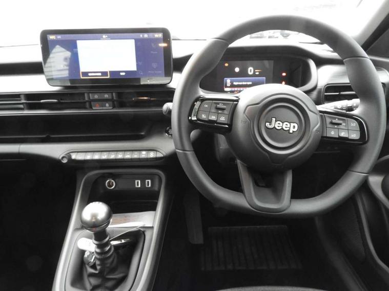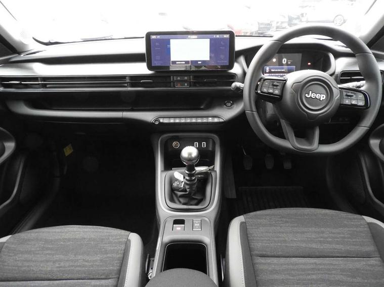 All-Terrain Mode Selector, Apple Carplay/Android Auto with wireless mirroring, BSRF connectivity box, Connectivity services, Driver attention alert system with camera, Drowsy driver detection system, eCall emergency call system, Keyless Start/Engine On Button, Lane keep assist, Odometer, PAS, Quick Guide English, Rear parking sensors, Telematic box and connected services, Traffic sign recognition, Warranty Booklet - UK, Battery default, High efficiency alternator, Audio system with 6 speakers, 3rd brake light, All power windows express Up/Down, Automatic headlights, Black mirror caps, Body colour exterior door handles, Day time running light, Grey skid plates, Halogen rear lights, Heated and electrically folding outside mirrors, LED reflector headlamps, Manual control rear view mirror, Rain sensor, Rear side wing doors, Rear wiper, Wiring preperation for towing group by Mopar, 3 rear headrests, 3 seat bench in 2nd row, 4 way manually adjustable passenger seat, 6 way manually adjustable drivers seat, Central console dividers x2, Cloth upholstery, Driver and front passenger sunvisor with vanity mirror, Foldable second row seats 40/60 - Fix and Fold, Front central armrest with storage, Front head restraints, Front passenger grab handle, Front passenger isofix child seat attachment, Front seat backrest pocket, Full black upper interior and headlining, I am Jeep label, Manual air conditioning, Partial body cover for shipment, Single front passenger seat, Anti-lock braking system (ABS), Child locks on rear doors, Electric parking brake, ESC - Electronic Stability Control + traction control, Hill descent control, Kit fix and go predisposition/housing only, Rear seat ISOFIX, Three 3 point rear seatbelts, Vulnerable road user recognition - Pedestrian/Cyclist incl. AEB, Volumetric anti theft alarm, 16" alloy wheels painted in medium glossy grey with summer chainable, Fix and go tyre repair kit,