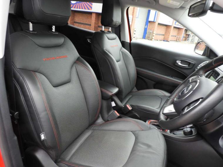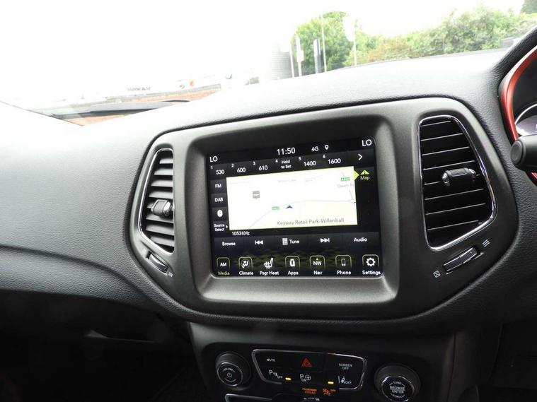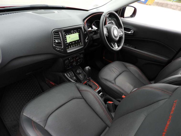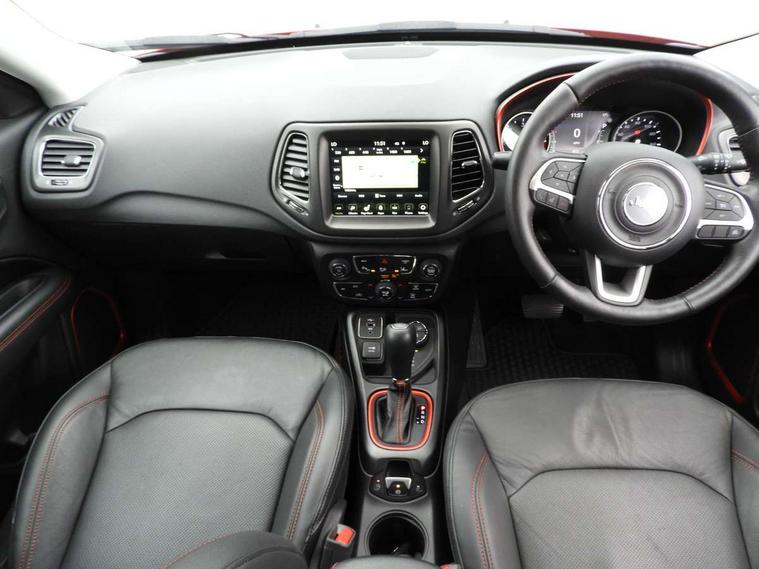 7.0" TFT Display premium cluster, Active speed limiting device, Android Auto, Apple car play/Android Auto, Blind spot and cross path detection, Connected services (e-call), Cruise control, Electric power steering, Forward collision warning plus with mitigation, Instrument panel, Integrated centre stack radio, Lane departure warning system, Media centre electronic storage, Rear view camera, Start/stop system, Temperature and compass gauge, U-Connect hands free phone, Vehicle information centre, Battery run - down protection, Electronic roll mitigation, Off road suspension, Selec Terrain system, 6 speakers, Remote USB port, Steering wheel mounted audio controls, Uconnect media centre with 8.4" touch screen, nav system, USB, DAB, 9 amplified speakers with subwoofer and integrated voice command with bluetooth, USB host flip, USB socket, Accent colour door mirrors, Accent colour roof rails, Adaptive brake lights, Aspheric door mirrors, Auto dimming rear view mirror, Automatic headlights, Black and accent colour grille, Body colour bumpers, Body colour door handles, Bonnet decal, Chrome exhaust tailpipes, Chrome side mouldings, Daytime running lamp system, Deep tint sunscreen glass, Diversity antenna, Door mirrors with indicators, Electric adjustable heated door mirrors, Electric folding door mirrors, Electric front windows, Electric rear windows, Exterior courtesy light, Front fog lights with cornering function, Front skid plate, Front tow eye, Halogen Projector Headlamps, Headlamp off time delay, Heated rear window, LED rear lights, Lower body cladding - black, Natural grey fog light surrounds, Neutral grey window surround, Rain sensitive windscreen wipers, Rear fog lamps, Rear skid plate, Rear window defroster, Rear window wash/wipe, Red rear tow hook, Removable short mast antenna, Trailer sway damping, Windscreen wiper de-icer, 12V power outlets, 12V power point in luggage area, 230V socket, 3 rear seat head restraints, 60/40 split folding rear seats with through load, 8 way electric adjustable front seats + driver memory, All weather floormats, Cargo area lights, Cargo compartment cover, Cargo compartment organiser, Cargo tie down loops, Centre console with sliding armrest, Centre rear 3 point seat belt, Child seat anchorage points, Coat hooks, Driver seat height adjust, Driver sunvisor with illuminated mirror, Driver's electric lumbar adjustment, Dual zone climate control, Electronic seatbelt pretensioners, Fold flat passenger seat, Front bucket seats, Front head restraints, Front map lights, Front map reading lights, Front passenger seatbelt alert, Front seats back map pockets, Front sliding armrest with storage compartment, Full length centre console, Gear shift indicator, Heated steering wheel, Height adjustable rear headrests, Humidity sensor, Illuminated door entry system, Illuminated front cupholders, Leather gear knob, Leather steering wheel, Leather upholstery, Lockable glovebox, Luggage cover, Overhead ambient surround lighting, Overhead console, Passenger assist handles, Rear air conditioning and heater vents, Storage under passenger seat cushion, Tilt/telescopic steering column, 3 rear 3 point seatbelts, 4 wheel disc brakes, ABS, Advanced brake assist, Child safety locks on rear door (inc. tailgate), Collision mitigation braking system, Driver / front passenger multi stage airbags, Drivers knee airbag, Dual note electric horns, Electronic parking brake, ESC - Electronic Stability Control + traction control, Front and rear curtain airbags, Front passenger airbag deactivation, Front side airbags, Height adjustable front seatbelts, Hill descent control, Hill start assist, Passive pedestrian protection, Traction control, Tyre pressure monitoring display, Capless fuel filler, Immobiliser, Keyless entry and keyless start, Occupant detection system, Premium security alarm, Remote locking fuel filler flap, Speed sensitive power door locks, Front and rear air vents, Radar red accent stitching, 17" Black diamont cut aluminium alloy wheels, Full size spare wheel,