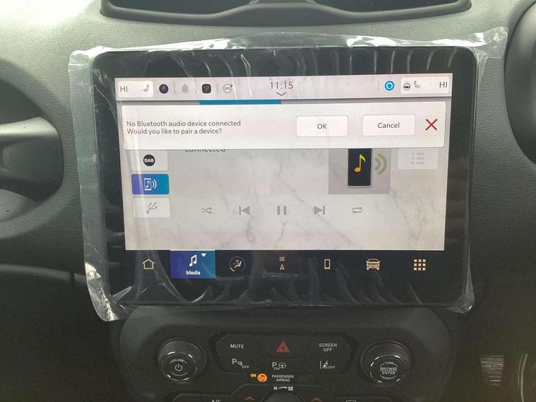 10.25'' Full digital TFT cluster, Blind spot detection with rear cross path, Dual tyre pressure (Lum changes), eCall emergency call system, Electric servo assisted steering, English language and manual handbook, Forward collision warning plus with mitigation, Gsr 2B Content Update, Integrated body computer, Lane departure warning plus, Parkview - Rear back up digital camera, Speed limiter push button on steering wheel, Tachometer, TBM connectivity EMEA, Telematic box module (TBM), Traffic sign recognition, Alternator default, Battery run down protection, Electronic roll mitigation, Smart alternator, 6 speakers, Android auto car play (Dedicated USB port), DAB digital audio broadcast, Media Hub (USB A-C type) in front row, Steering wheel control with bluetooth, USB (A type) in second row, Wireless CarPlay/Android Auto, 3rd brake light, Acoustic components 1, Active shutter grille, Aspheric door mirrors, Automatic headlight activation (Dusk/Dawn), Black external rearview mirrors, Body colour door handles, Coastdown and run-in optimization, Day light opening Moldings, Eco innovation, Front Towing eye, Front wide license plate bracket, Heated rear window, Label "I am Jeep", LED daytime running lights, LED fog lamps, LED license plate light, LED taillamps, Low/High beam LED headlights, Lower body side cladding, New front rails for getrag gearbox, Rain sensor, Rear side wing doors, Rear wash/wipe, Side repeater lamp in exterior mirrors, Solar glasses, Towing eye brackets, Trailer sway damping, 12v power point in centre console, 3 point rear seatbelts with load limiter, 3 rear height adjustable headrests, 3 seat bench in 2nd row, 4 way manually adjustable passenger seat, 6-way manually adjustable driver's seat, Cargo tie down loops, Cloth upholstery, Dual zone automatic air conditioning, Eco shift schedule, Front headrests, Front passenger fold forward seat with soft upholstered seatback, Interior grab handles, Interior LED lighting, Leather gear knob, Light off, Single front passenger seat, Soft front seat sliding armrest with interior bin, Tilt/telescopic steering column, Tonneau cover, Vinyl door trim, Altitude pack - Renegade, ABS, All speed traction control, Curtain airbags, Dual note electric horns, Electric parking brake, Electronic stability control with hill start assist, Emergency brake assist, Front and rear seats side airbags, Front seat mounted side airbags, Height adjustable front seatbelts, Isofix universal fixture for child safety seat fastening, Low drag brakes, Next generation front airbags, Panic brake assist, Passenger airbag disable feature, Rear door child safety locks, Tyre pressure monitoring display, Acoustic vehicle alert system (AVAS), Centralized electrical locking, Deadlock, Immobiliser, Passive Entry/Keyless Go (Key fob without panic button), Premium security alarm, Safe lock (super blocking), Tyre kit tag - B Group,