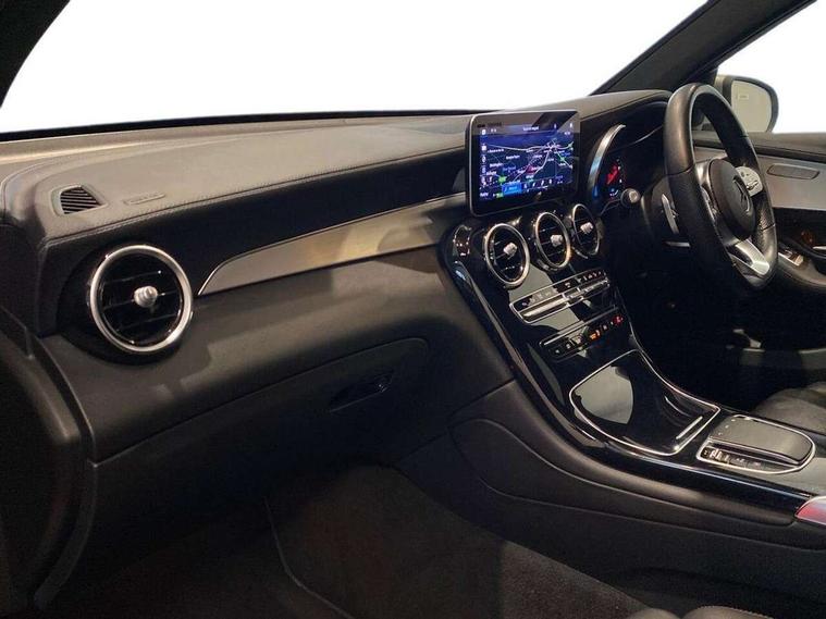 Active parking assist with parktronic system, Attention assist, Bluetooth interface for hands free telephone, Collision prevention assist plus, Cruise control with speedtronic variable speed limiter, Direct steer speed sensitive steering, DYNAMIC SELECT with a choice of driving modes (ECO, Comfort, Sport, Sport+ and Individual), Easy pack automatic powered tailgate, ECO start/stop function, Hard disk navigation, Hey Mercedes Voice activation, Instrument cluster with 5.5-inch TFT multi-function display, MBUX Interior assistant, Mercedes connect me with remote online services, Multi function trip computer, Outside temperature display, rear seatbelt status indicator, Remote and charging services plus, Remote boot release, Reversing camera, Service indicator (ASSYST), 1 x 3 pin domestic 8m straight charging cable, 1 x type 2 and 3 phase 4m straight wallbox cable, 4MATIC permanent four wheel drive, 50 litre fuel tank, 9G TRONIC plus automatic transmission with steering column gear selector, DIRECT SELECT steering wheel gearshift paddles, Diesel particulate filter, Sports suspension tuned for improved handling and driving dynamics, 5 speakers, Frontbass loudspeakers, MBUX multimedia system with DAB digital radio and touchpad, Media display 10.25-inch touchscreen display, Pre installation for Mercedes Benz Link, USB ports x 2 in centre console, Adaptive brake lights, Aluminium roof rails, AMG bodystyling - AMG front apron with sporty air intakes and chrome trim element, AMG diffuser-look rear apron with insert in black, Body colour door mirrors, Body coloured bumpers, Electric windows one touch open/close, Electrically adjustable and heated door mirrors, Front, side and rear exterior chrome trim, Headlamp assist automatic headlamp activation, LED high performance headlamps with integrated LED daytime running lights, LED tail lamp, Privacy glass with dark glass from B pillar backwards, Radiator diamond grille, Rain sensor windscreen wipers, Range adjustable headlights, Rear wiper, Tinted glass all round with single layer safety glass, Two chrome plated tailpipe trim elements, 2 way rear head restraints, 3-spoke multifunction sport AMG steering wheel in black nappa leather with flattened bottom section, chrome insert and perforated leather in grip area, 40:20:40 split folding rear seats, AMG floor mats with edging and embroidered AMG lettering, AMG sports seats, Artico man-made leather upper dashboard with contrast topstitching, Automatic child seat recognition sensor, Black roof lining, Dividing net - rear, Double cup holder in centre console, Easy-pack removable load compartment cover, Front armrest with storage box, Front door sills with Mercedes Benz lettering, Front head restraints, Front seats with electric adjust (backrest, height and seat cushion inclination) with 4 way electric lumbar support and manual cushion depth adjust, Heated front seats, Height/reach adjustable steering column, Illuminated and lockable glove compartment, Leather upholstery, Pre-entry climate control, Rear top tether child seat ISOFIX attachment, Sports pedals with stainless steel surfaces and rubber studs, Steering wheel with touch control buttons, THERMOTRONIC 3 zone automatic climate control, Interior lighting pack - GLC, Mirror pack - GLC, Storage pack - GLC, 3 rear 3 point seatbelts, Active bonnet, Adaptive brake system with HOLD function and brake drying in the wet, ASR, Black seat belts, Brake calipers with Mercedes-Benz lettering + perforated brake discs, Child proof door locks, Dual-stage airbags - driver and front passenger, driver knee bag and window bags for driver, front passenger and rear passengers, Electronic parking brake, Electronic stability programme (ESP) with curve dynamic assist and cross wind assist, Front and rear seatbelt reminder, Front passenger seat occupancy sensor, Hill hold function, Radar-based recuperation, Tyre pressure monitoring system, Warning triangle and first aid kit, Alarm system/interior protection/immobiliser, Automatic door locking, KEYLESS-GO starting function, Remote central locking, High gloss black with grained aluminium trim, 19" AMG 5 twin spoke alloy wheels painted tremolite grey with high sheen finish, Summer tyres, Tirefit tyre sealant kit,